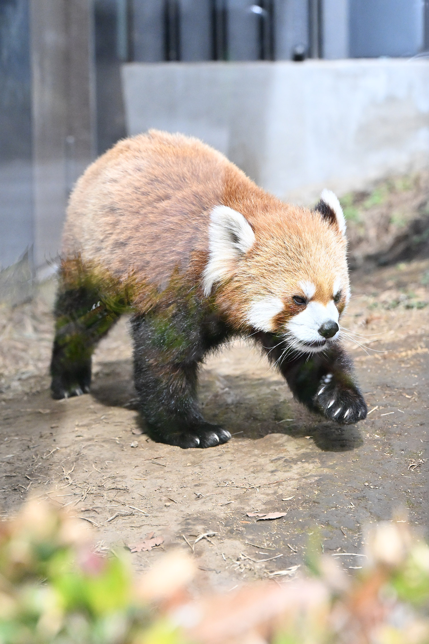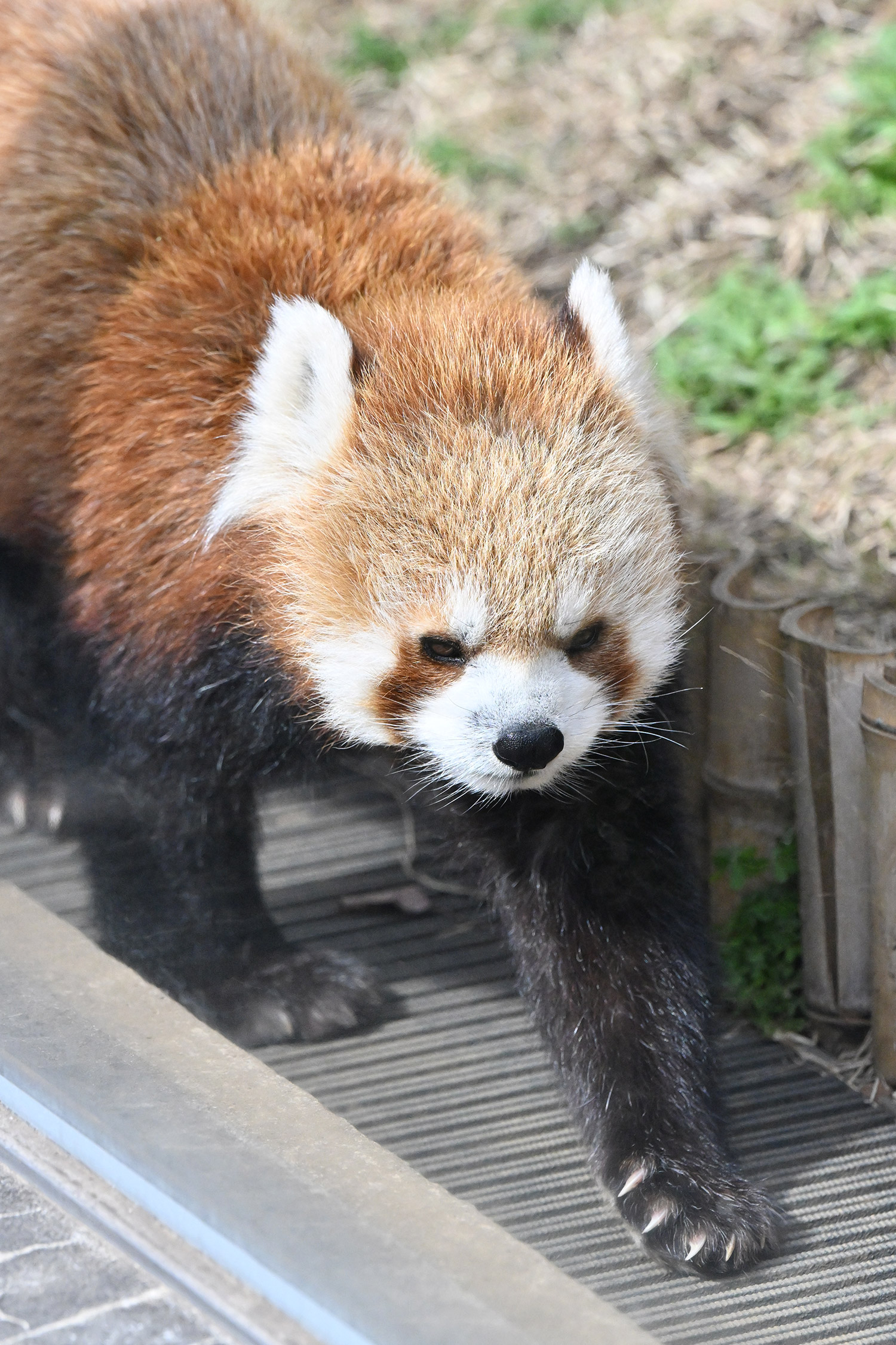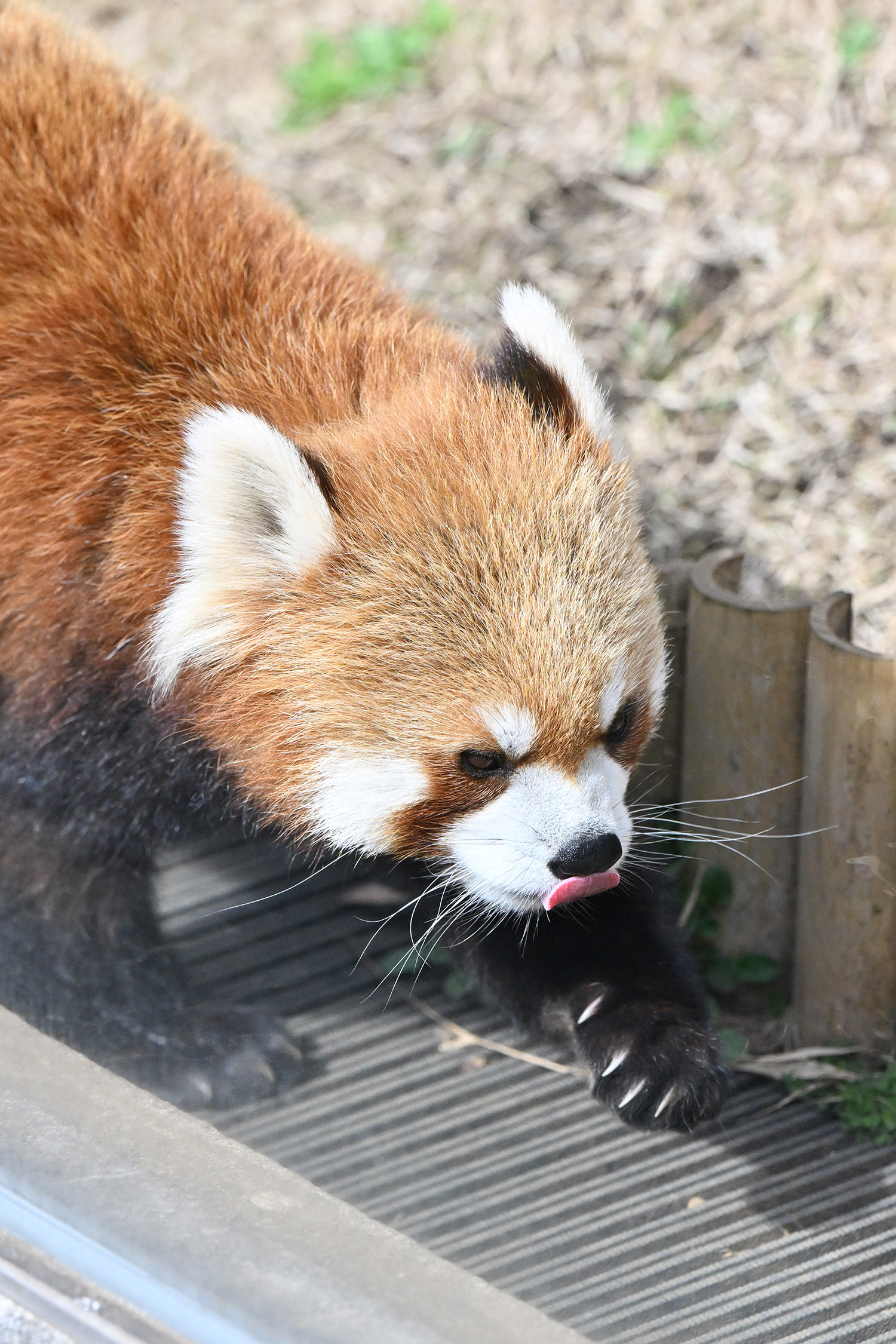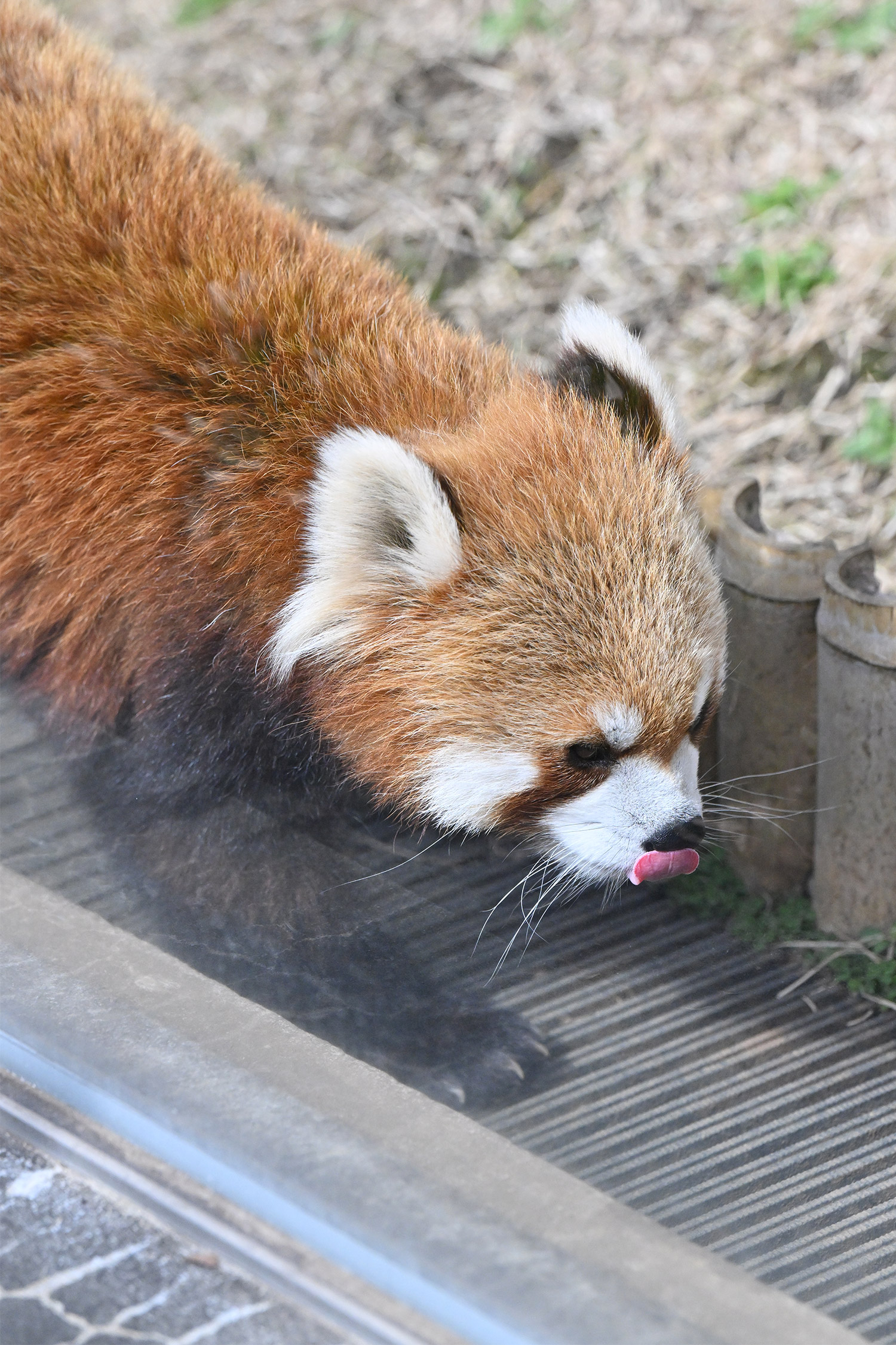 中国の四川の基地や大連で見たレッサーパンダは、広いところで、何十頭もが走り回っており、個体の名前はなかったような? 二頭だけで、ゆっくり観られるのはありがたい。