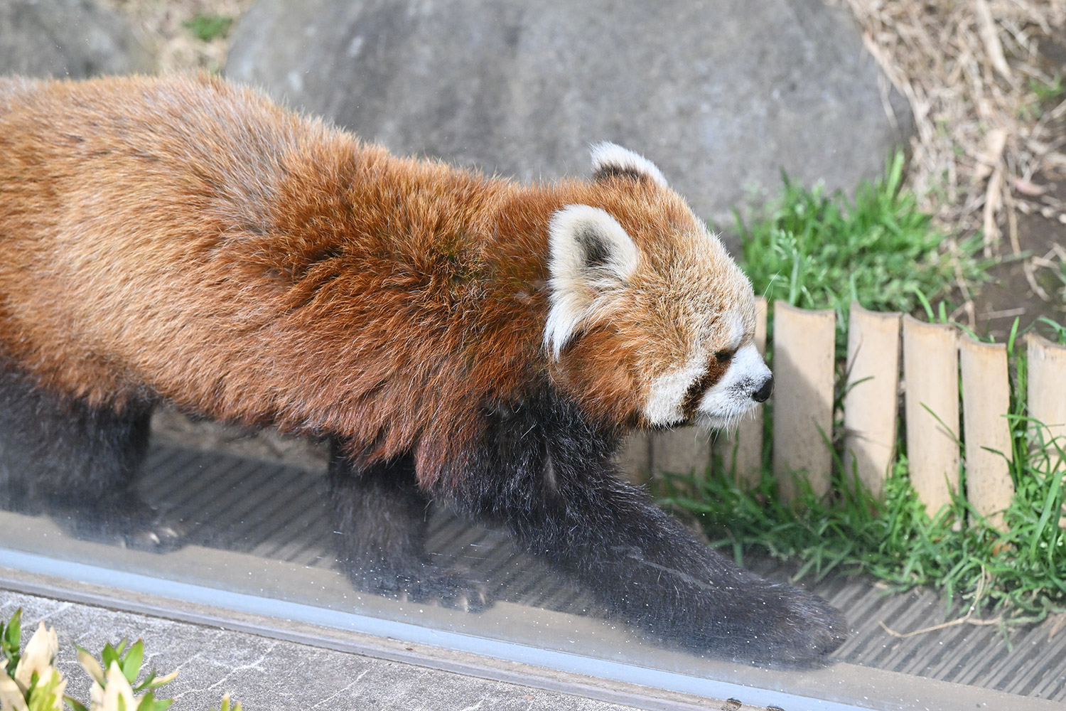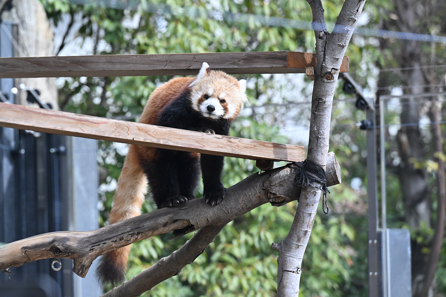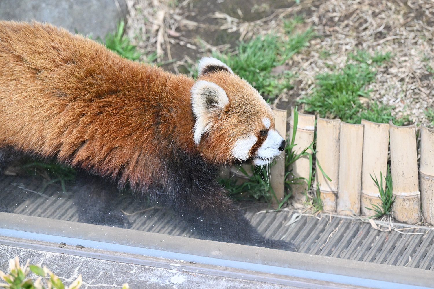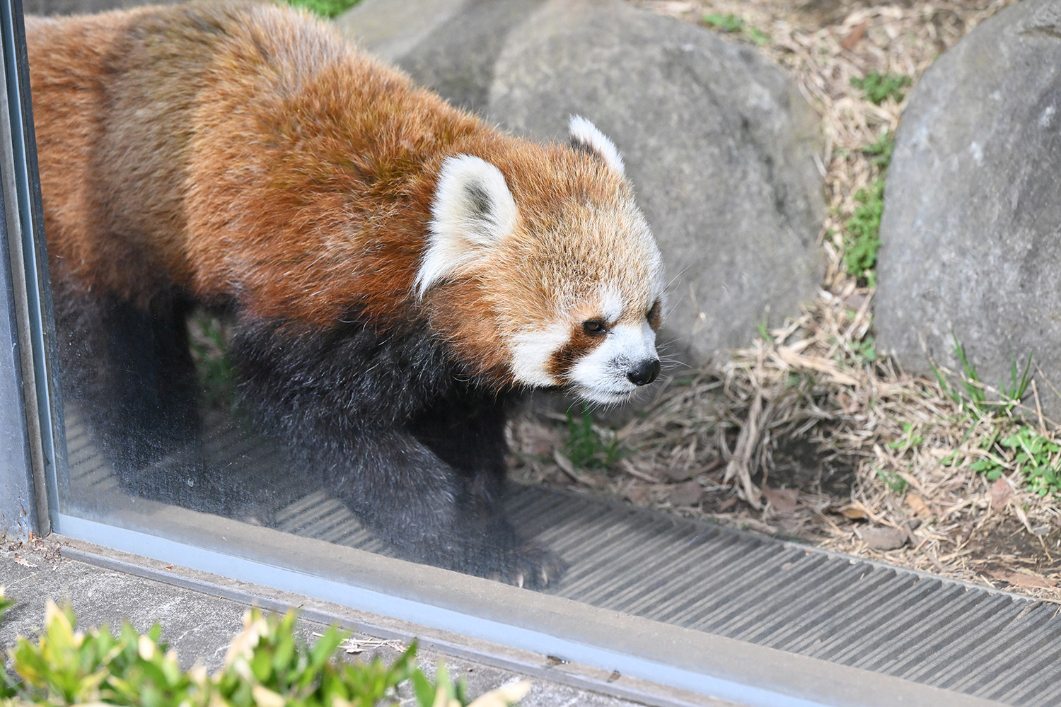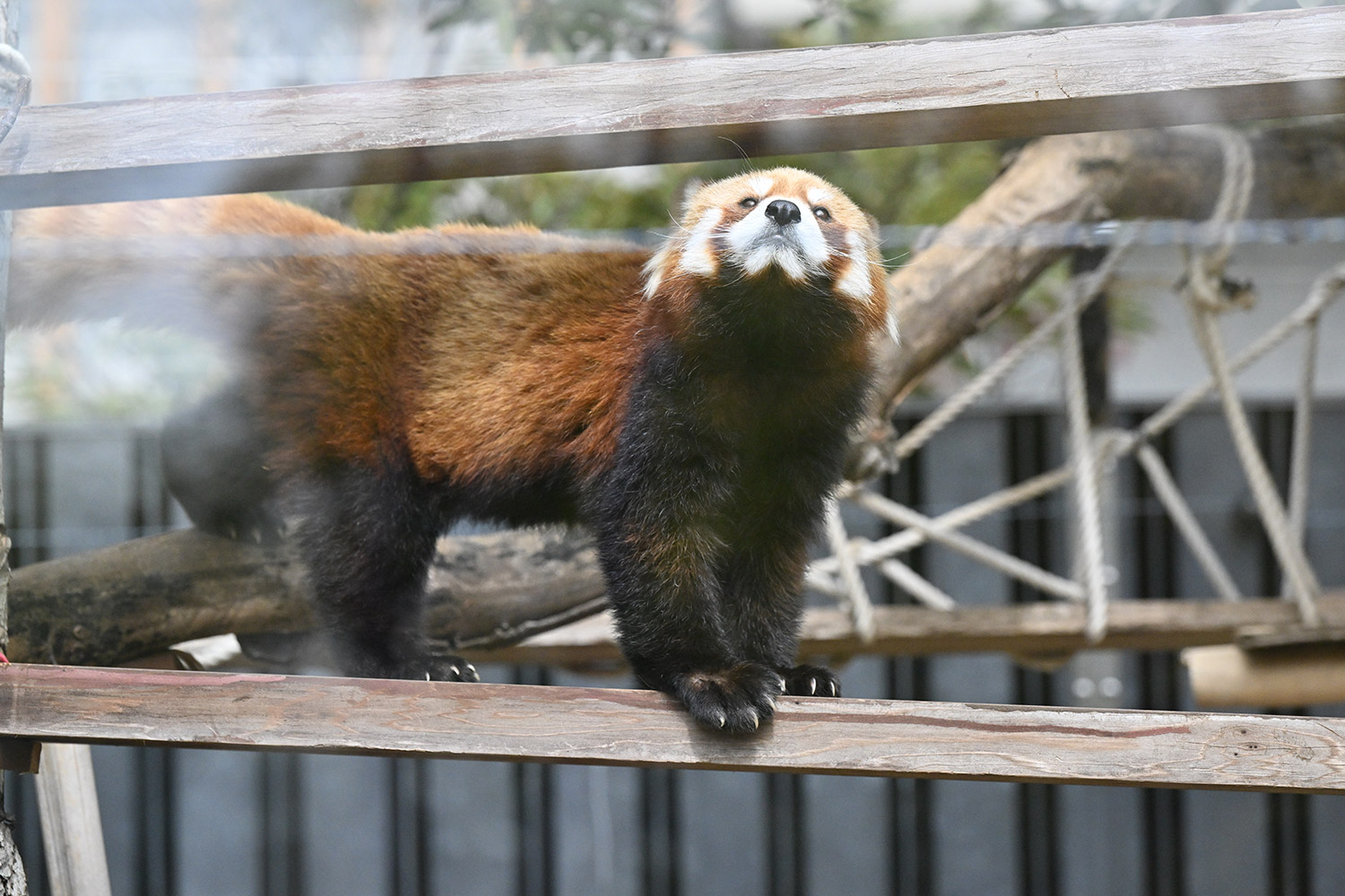 中国の四川の基地や大連で見たレッサーパンダは、広いところで、何十頭もが走り回っており、個体の名前はなかったような? 二頭だけで、ゆっくり観られるのはありがたい。