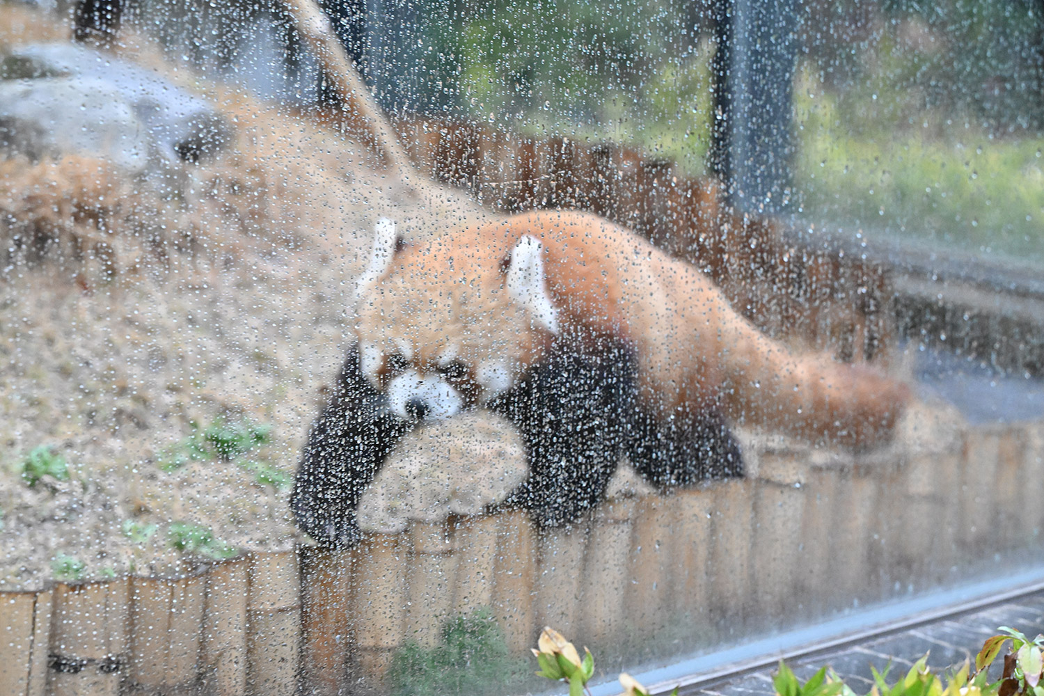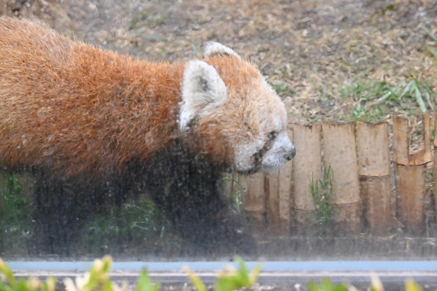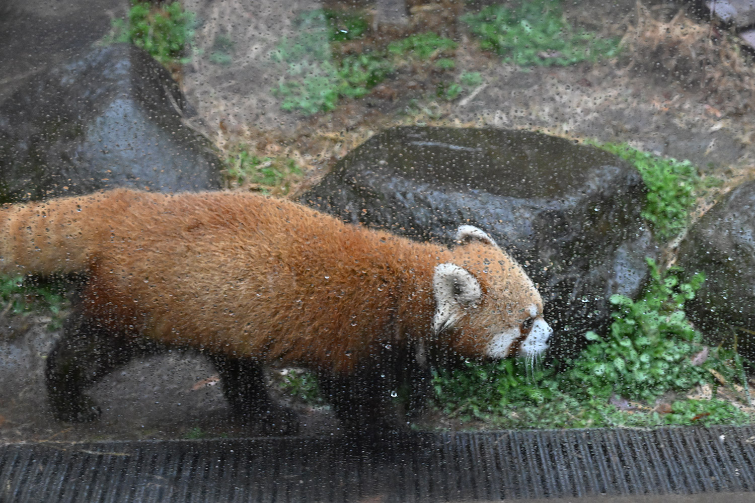 赤茶の毛皮は雨をはじきそう!🐼みたいにブルブルッ雨粒飛ばすのかな💦
