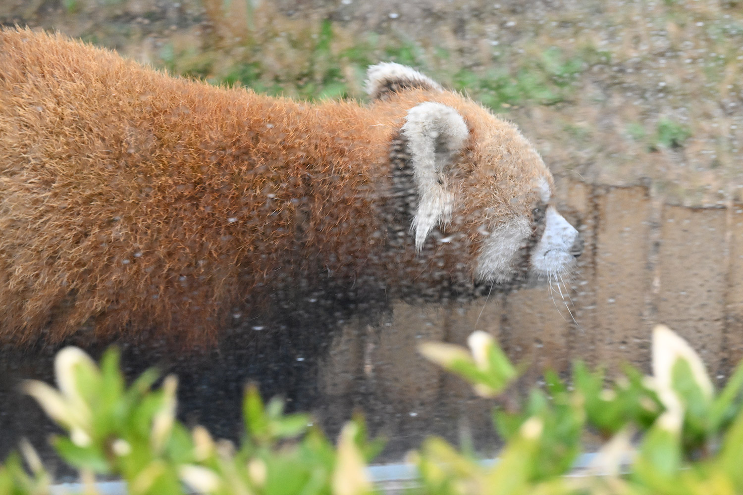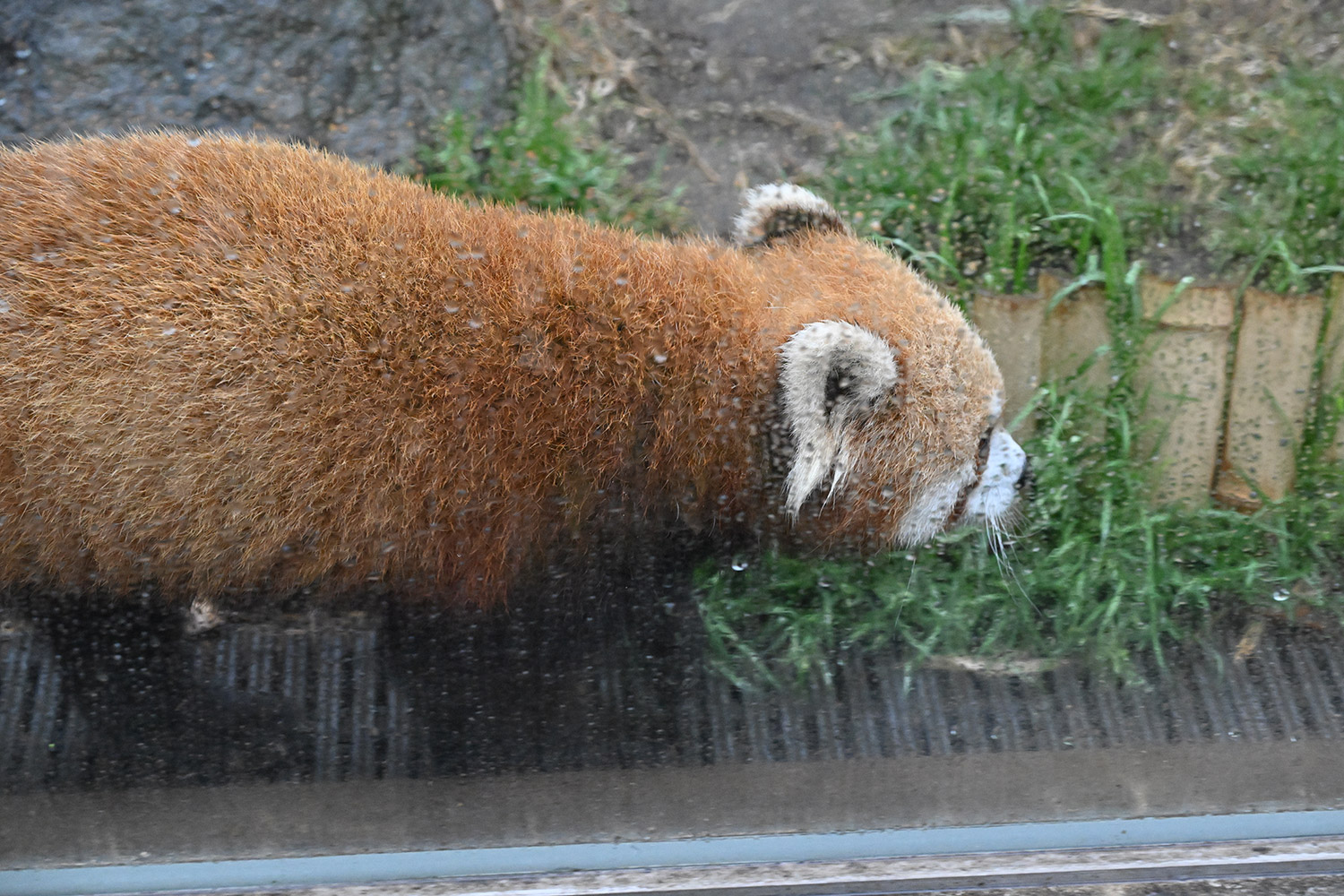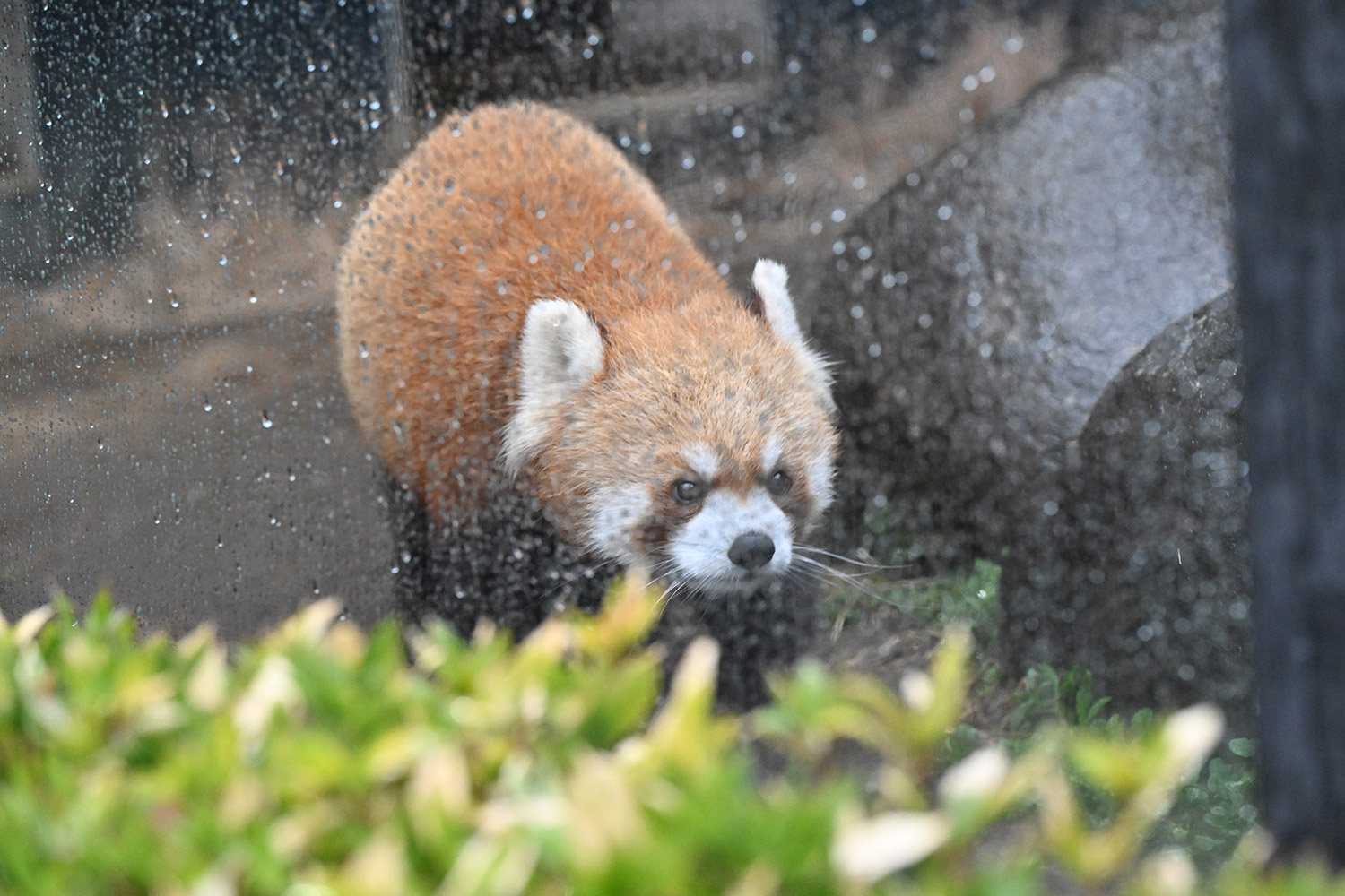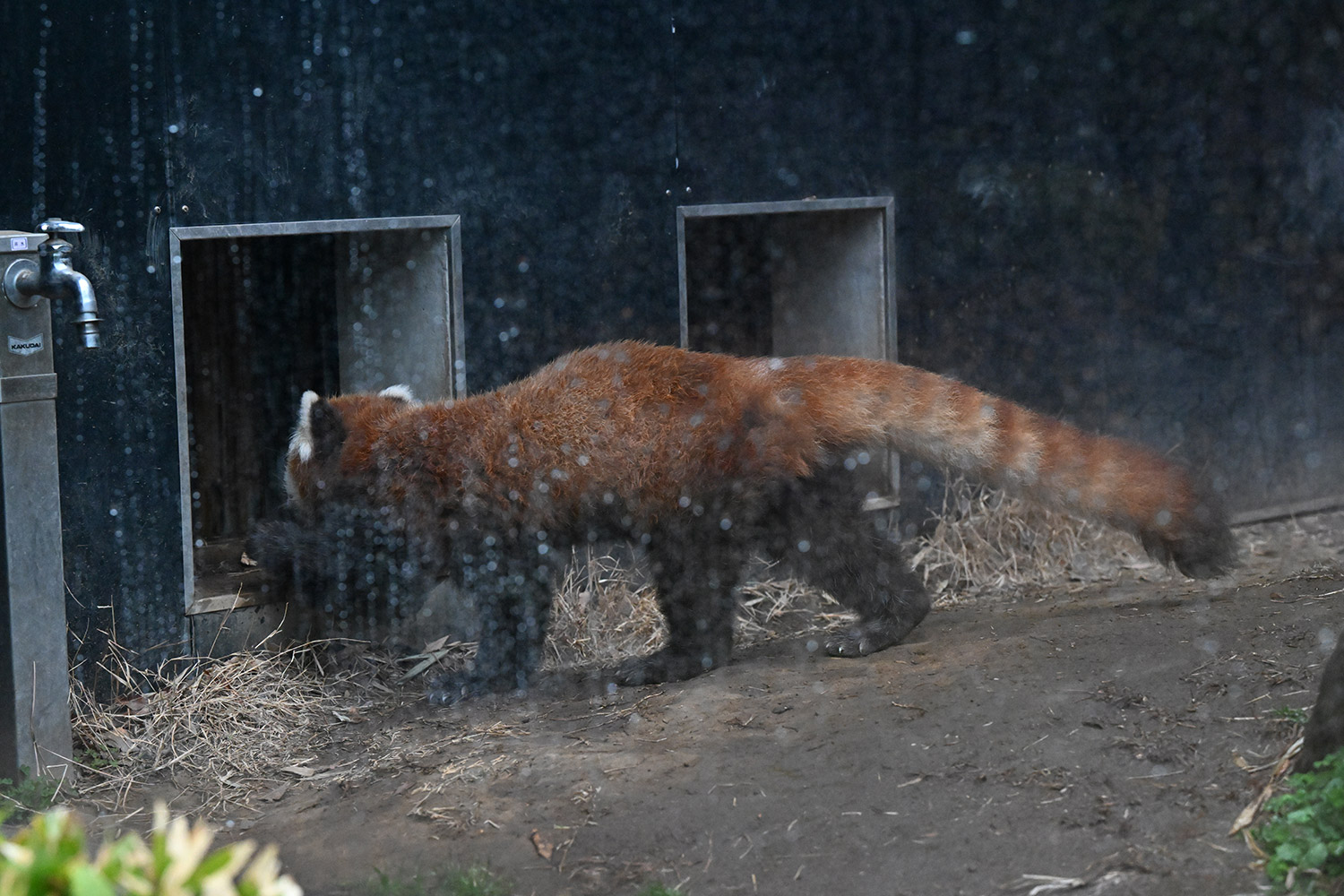 赤茶の毛皮は雨をはじきそう!🐼みたいにブルブルッ雨粒飛ばすのかな💦