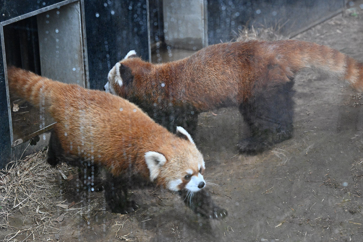 うじ様!わぁ…この冷たい雨の日もやはりレッサーに会いに行かれ…可愛い母娘のお写真ありがとうございます!