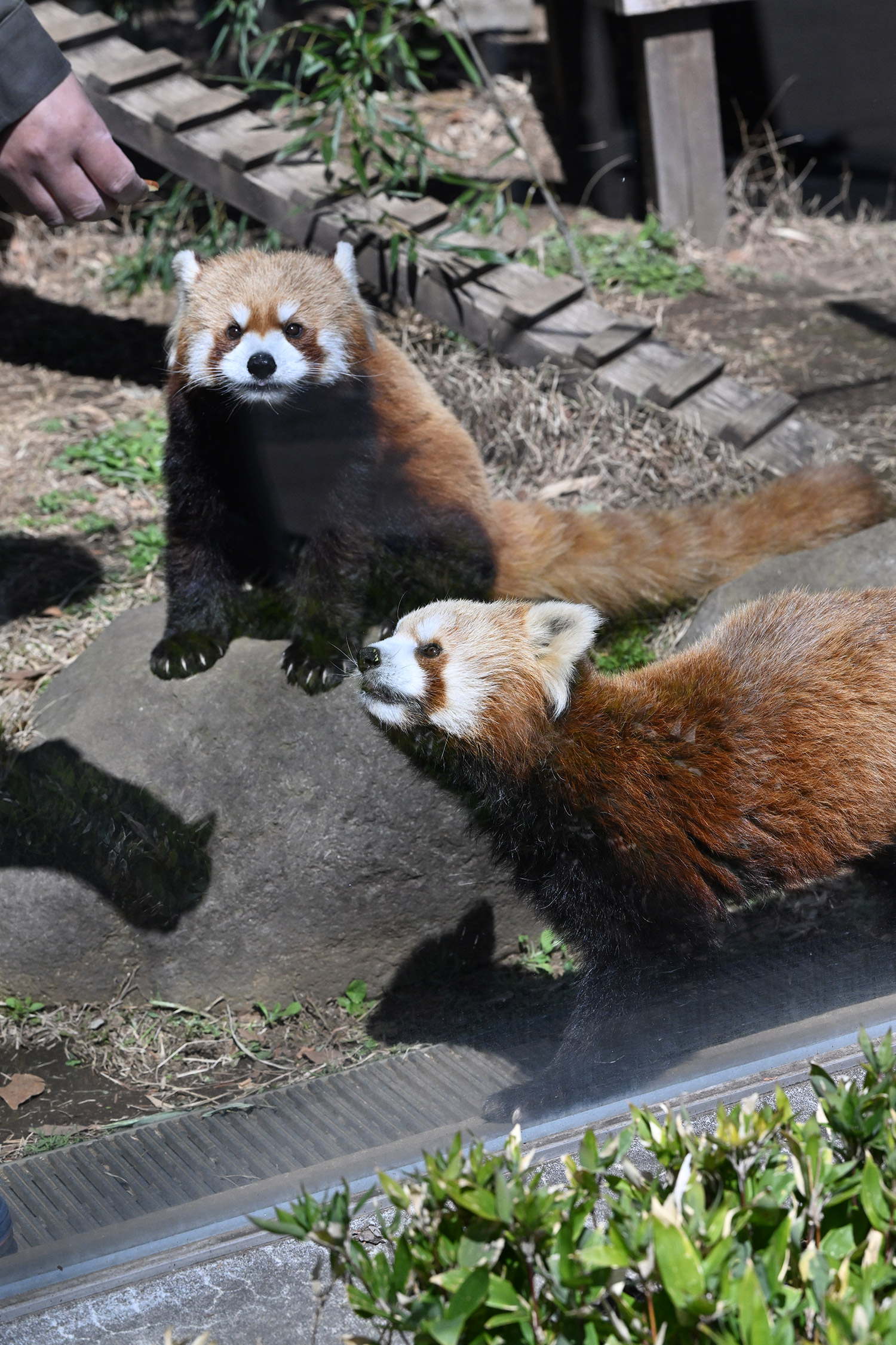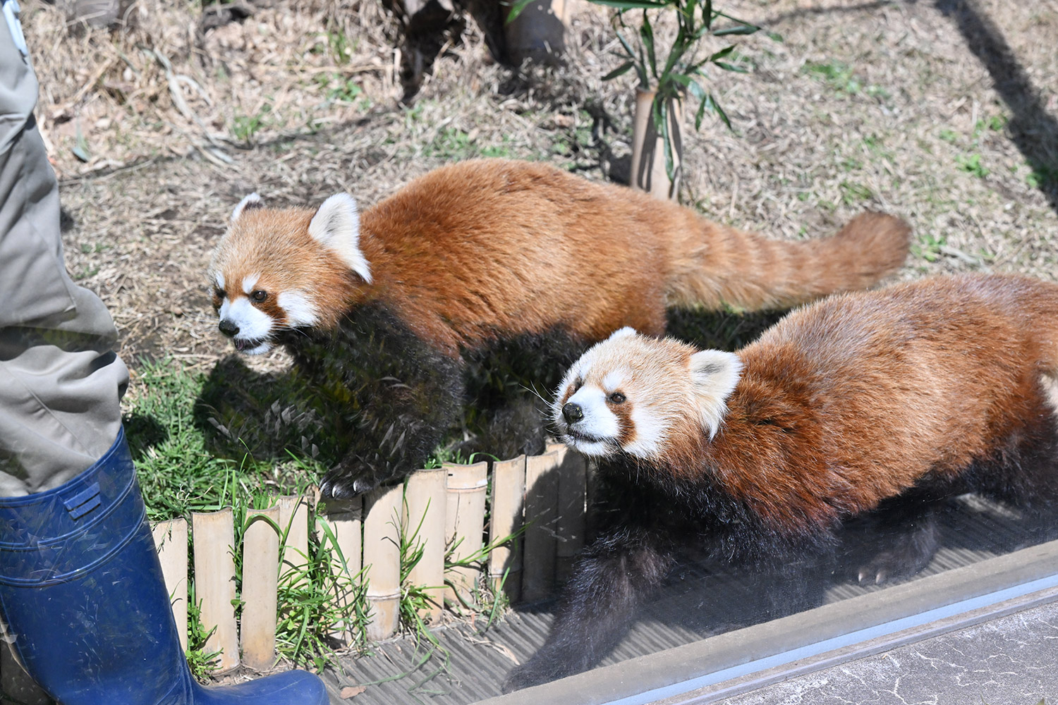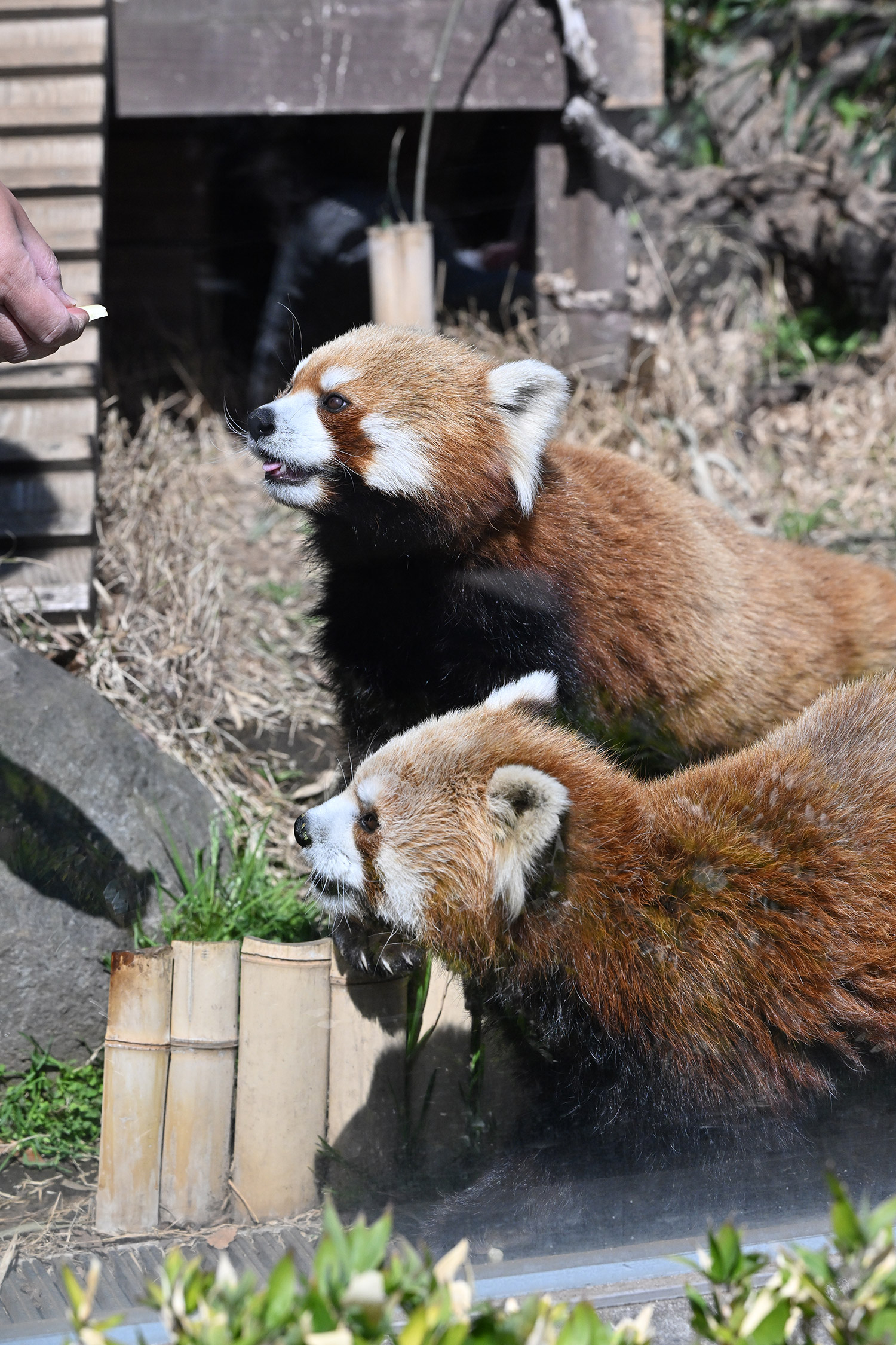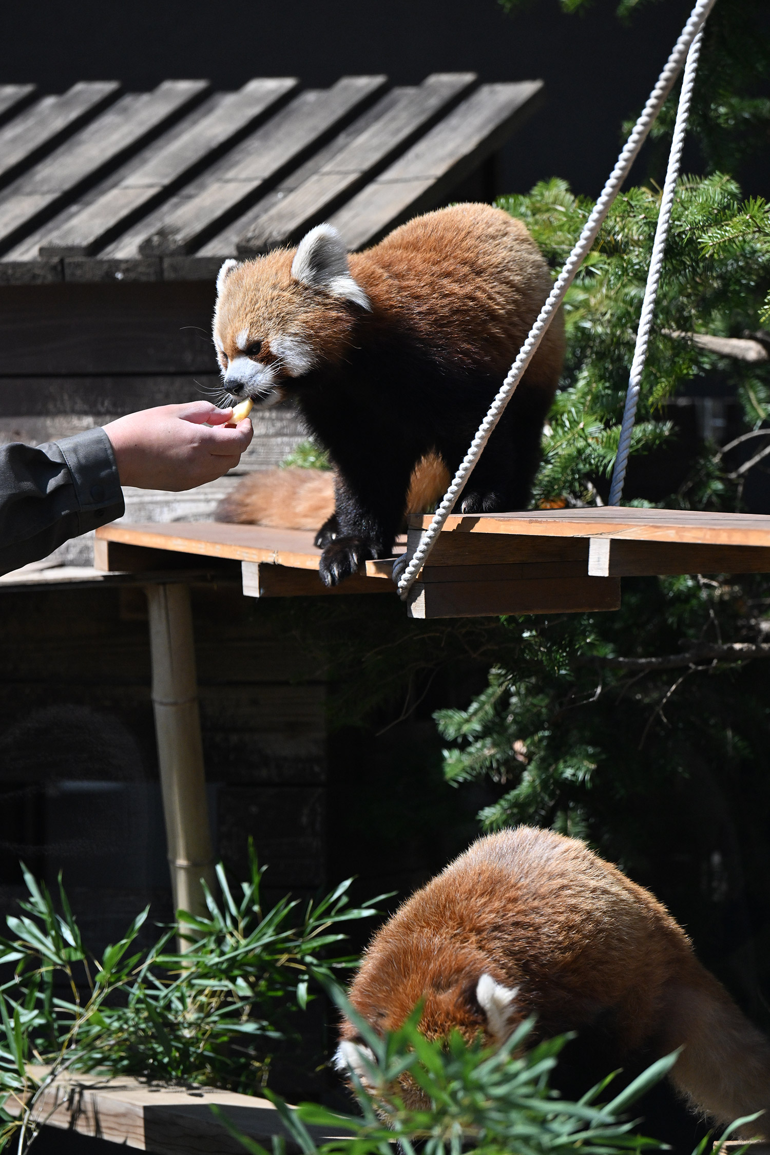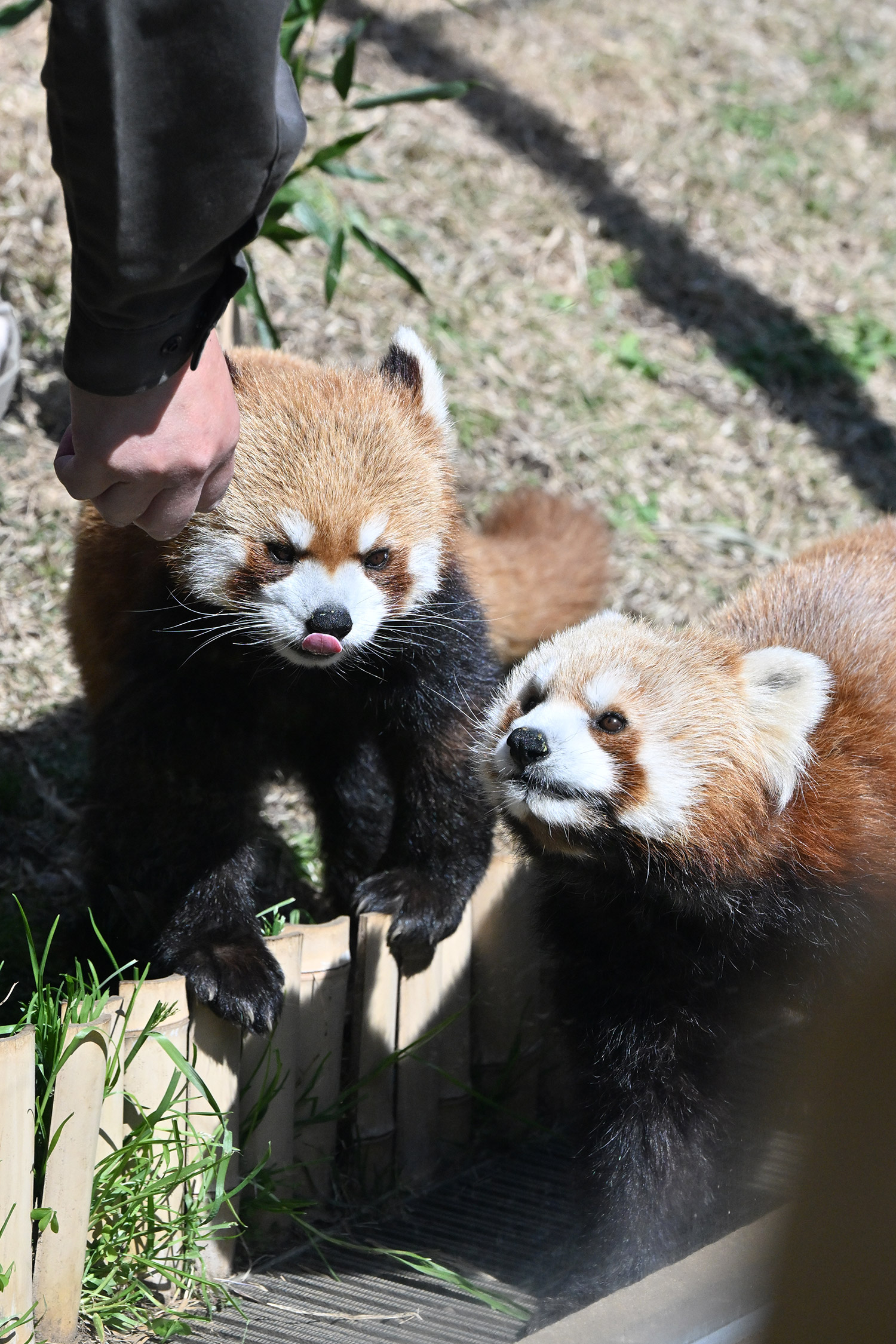 カリンとルカは似ていて、角度によって、そっくりですね。見分けが困難。よそのレッサーパンダとだと、はっきり違いがわかるようになりました。