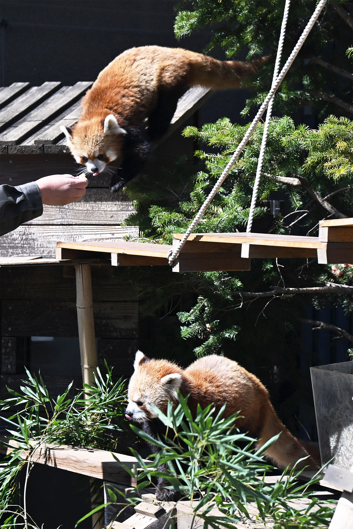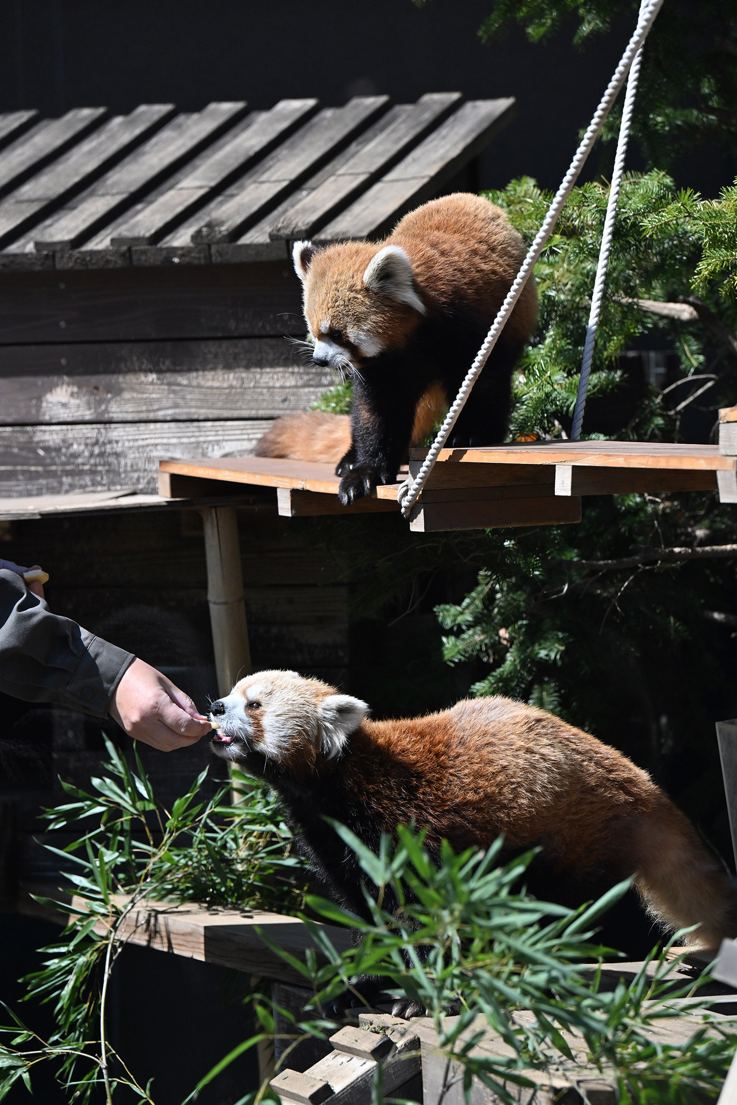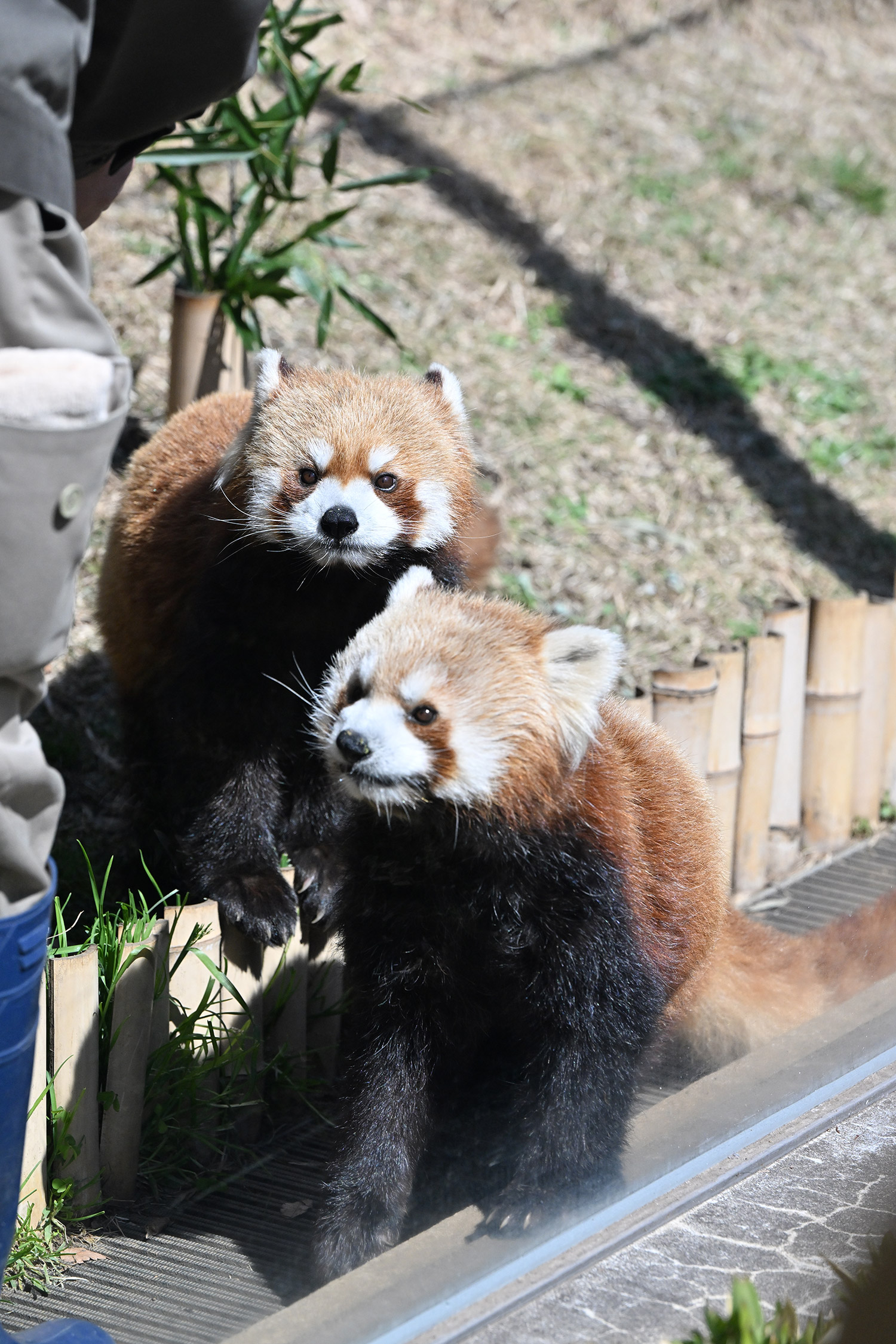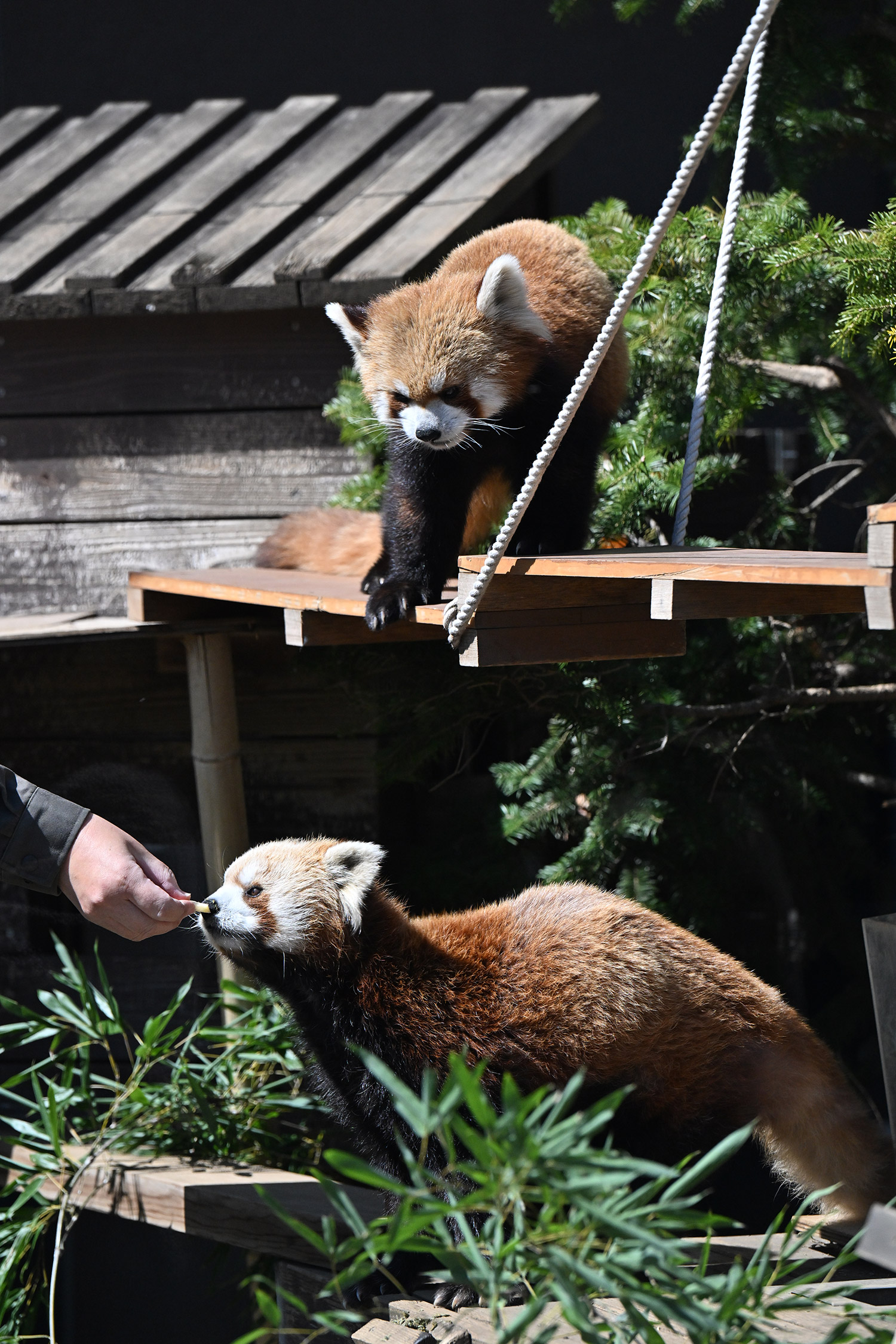 カリンとルカは似ていて、角度によって、そっくりですね。見分けが困難。よそのレッサーパンダとだと、はっきり違いがわかるようになりました。