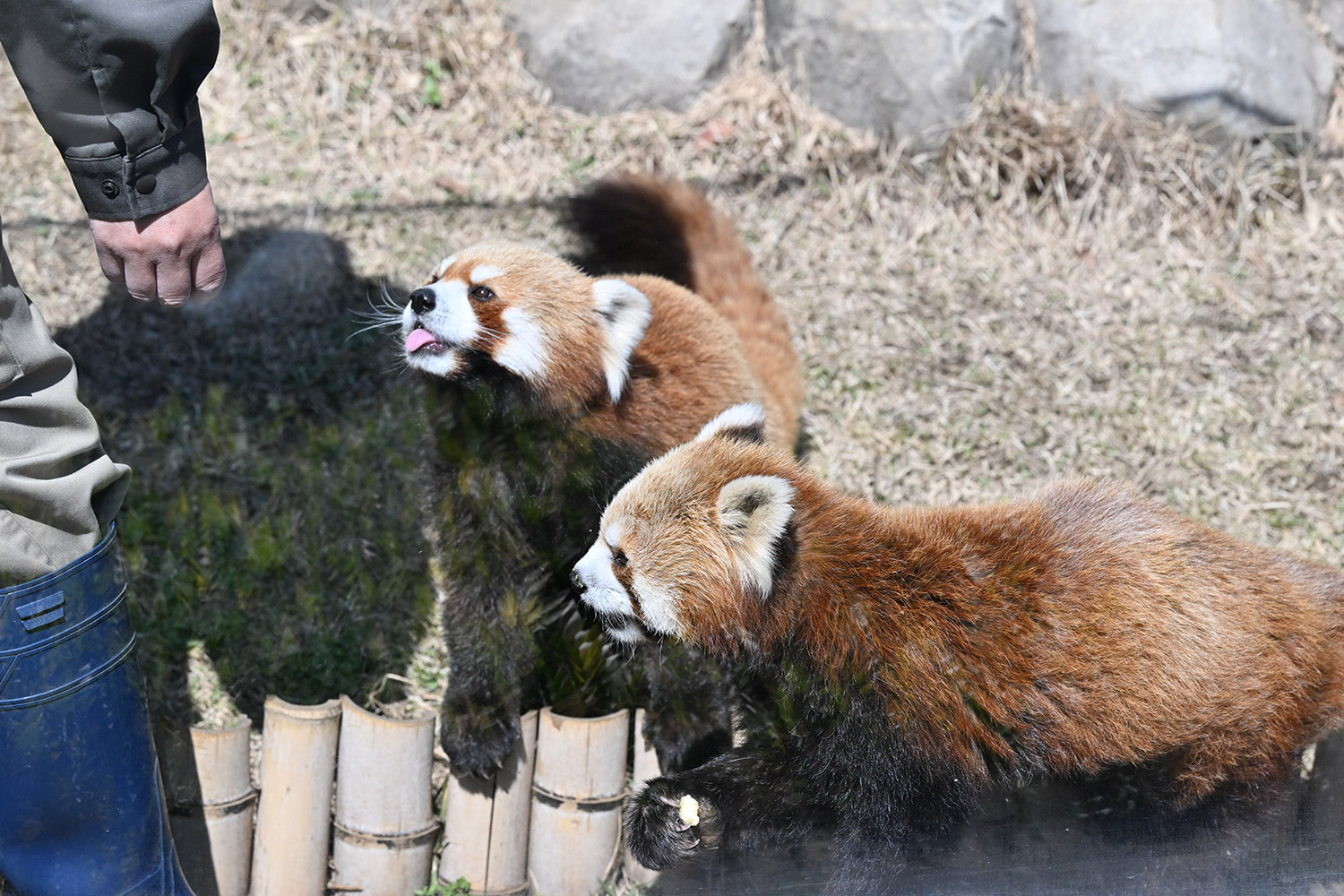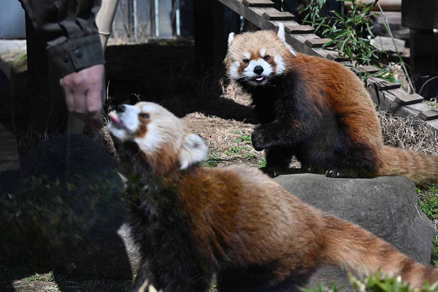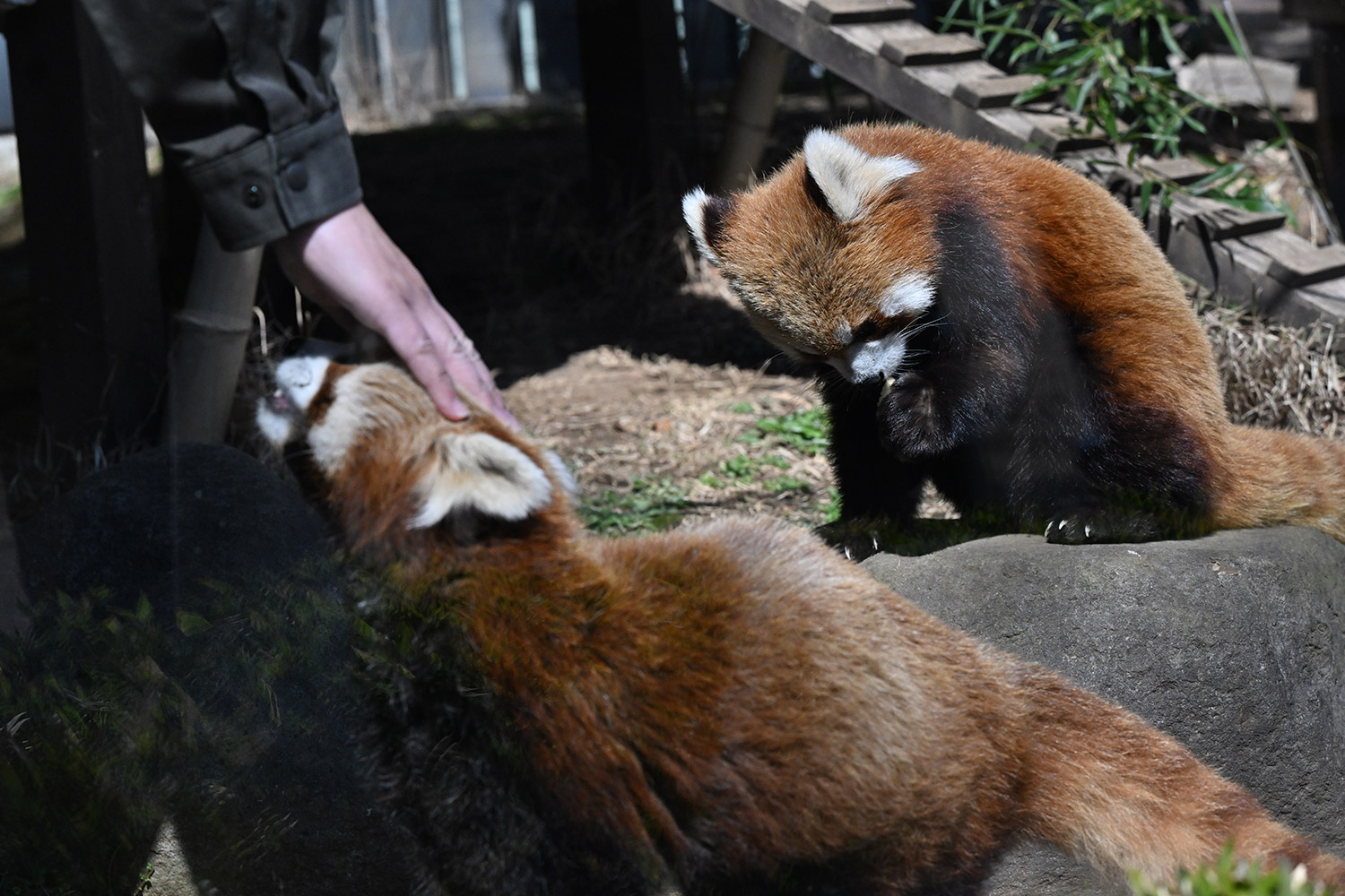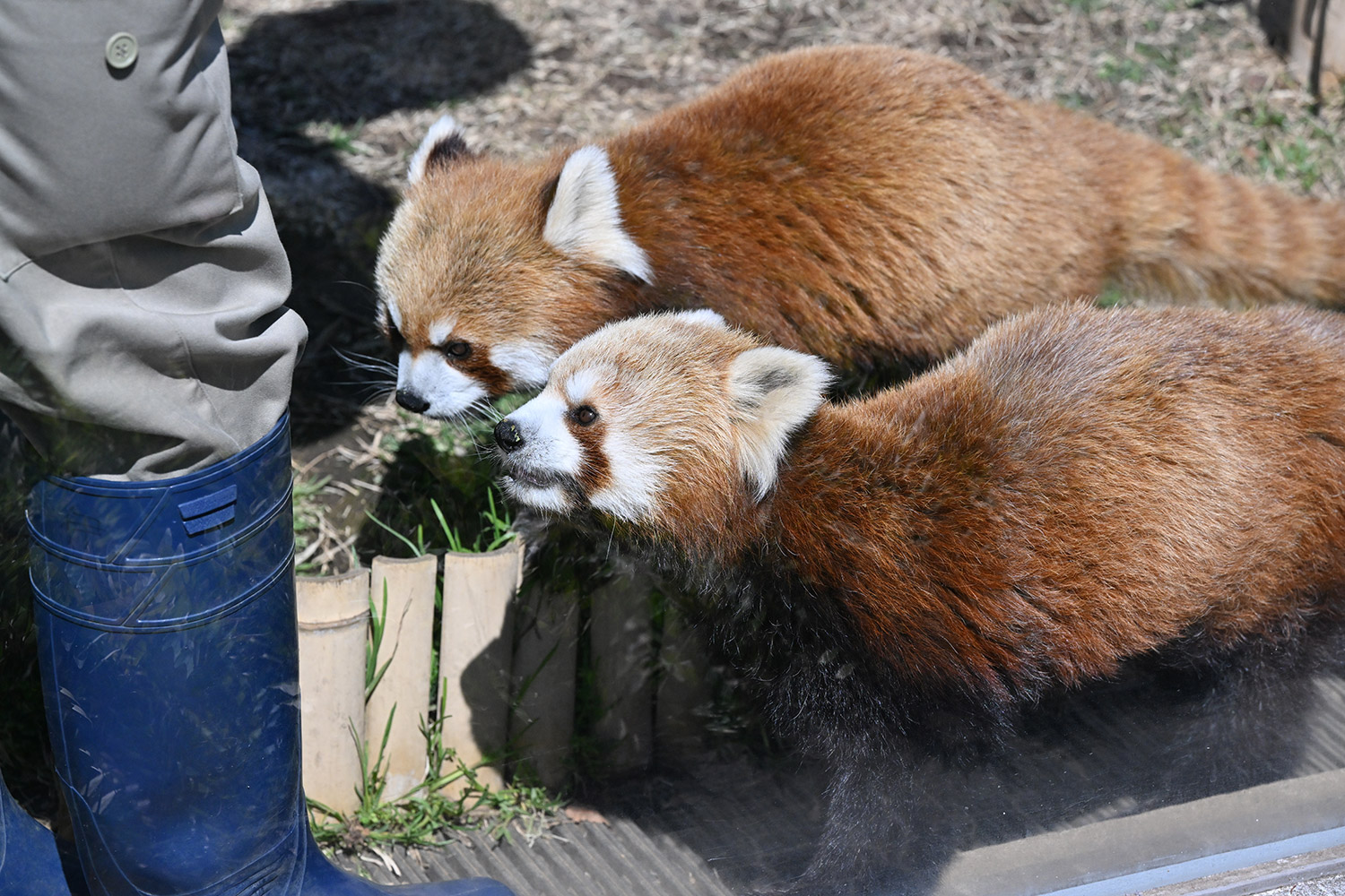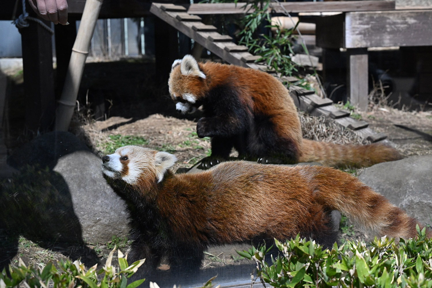 カリンとルカは似ていて、角度によって、そっくりですね。見分けが困難。よそのレッサーパンダとだと、はっきり違いがわかるようになりました。