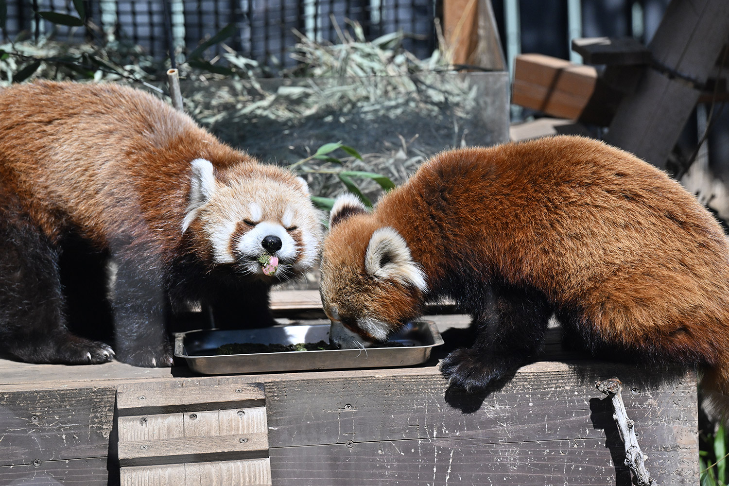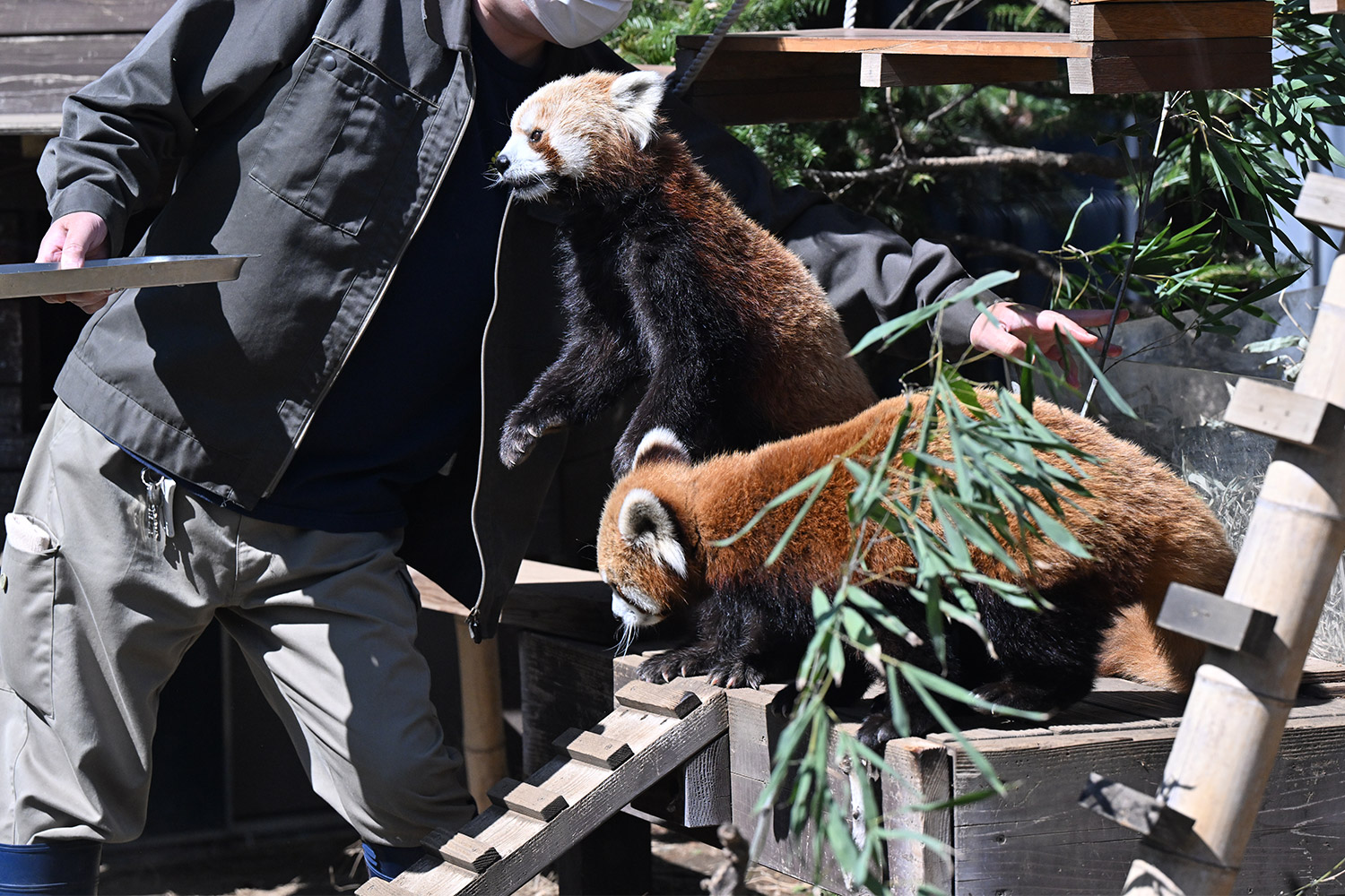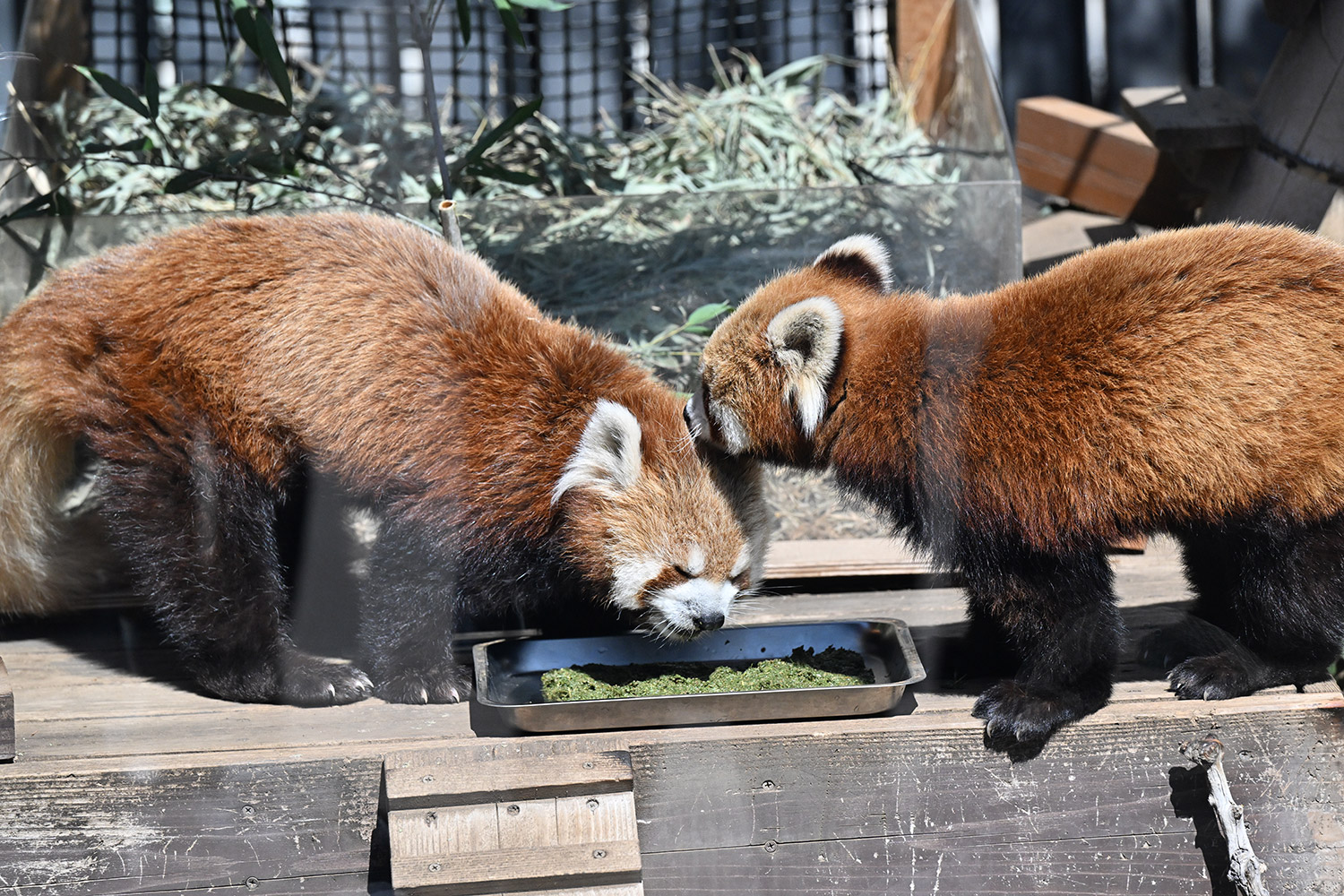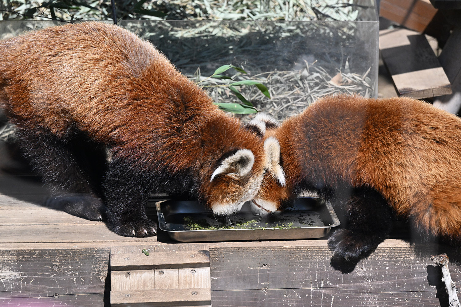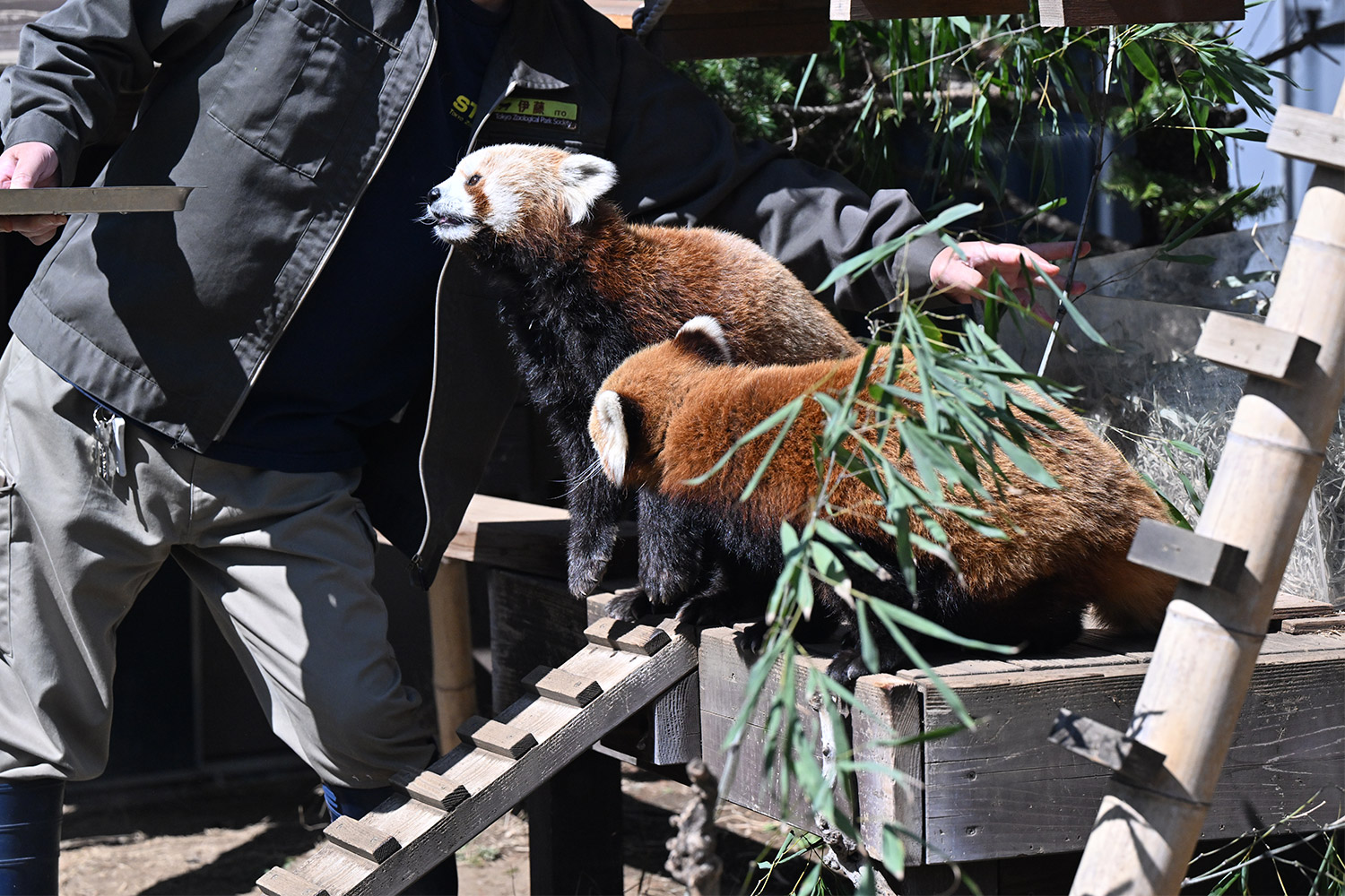今日のパンダは11:00からです。今日も日差しが暖かでレッサーパンダ舎は混雑していました。
