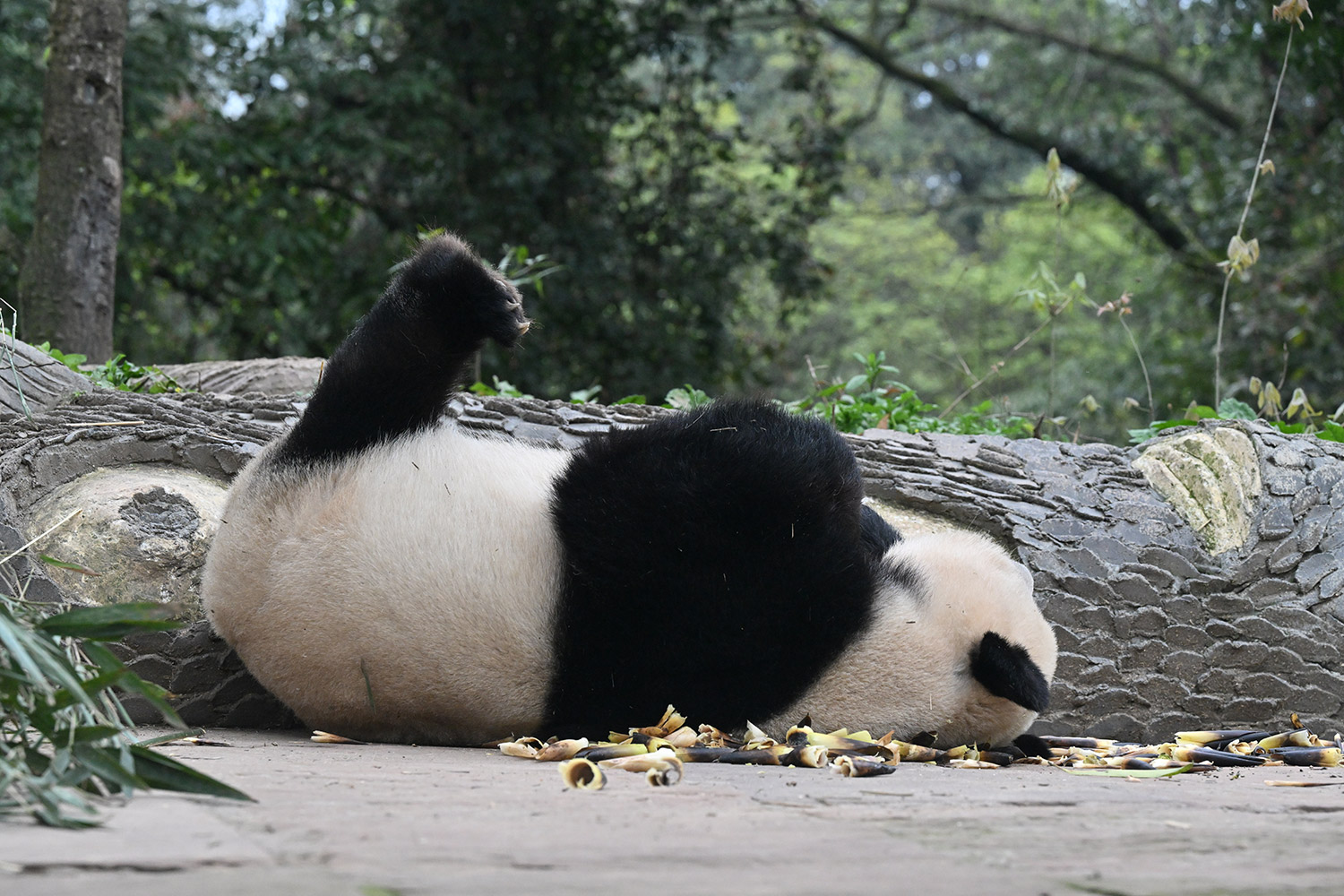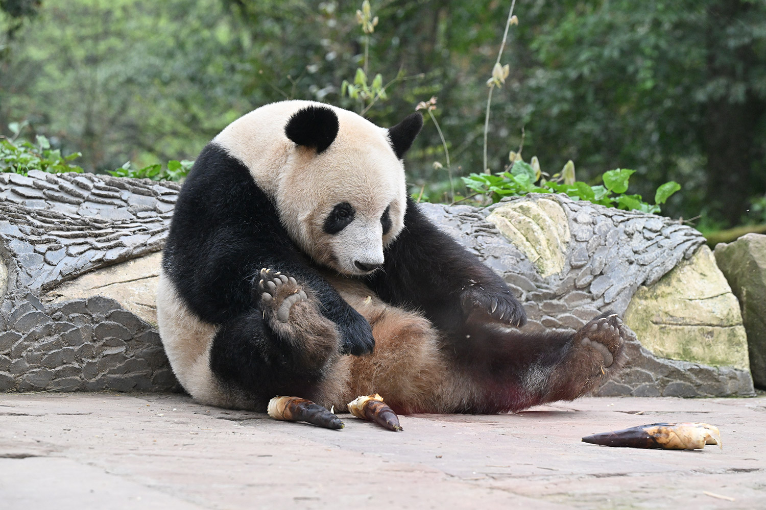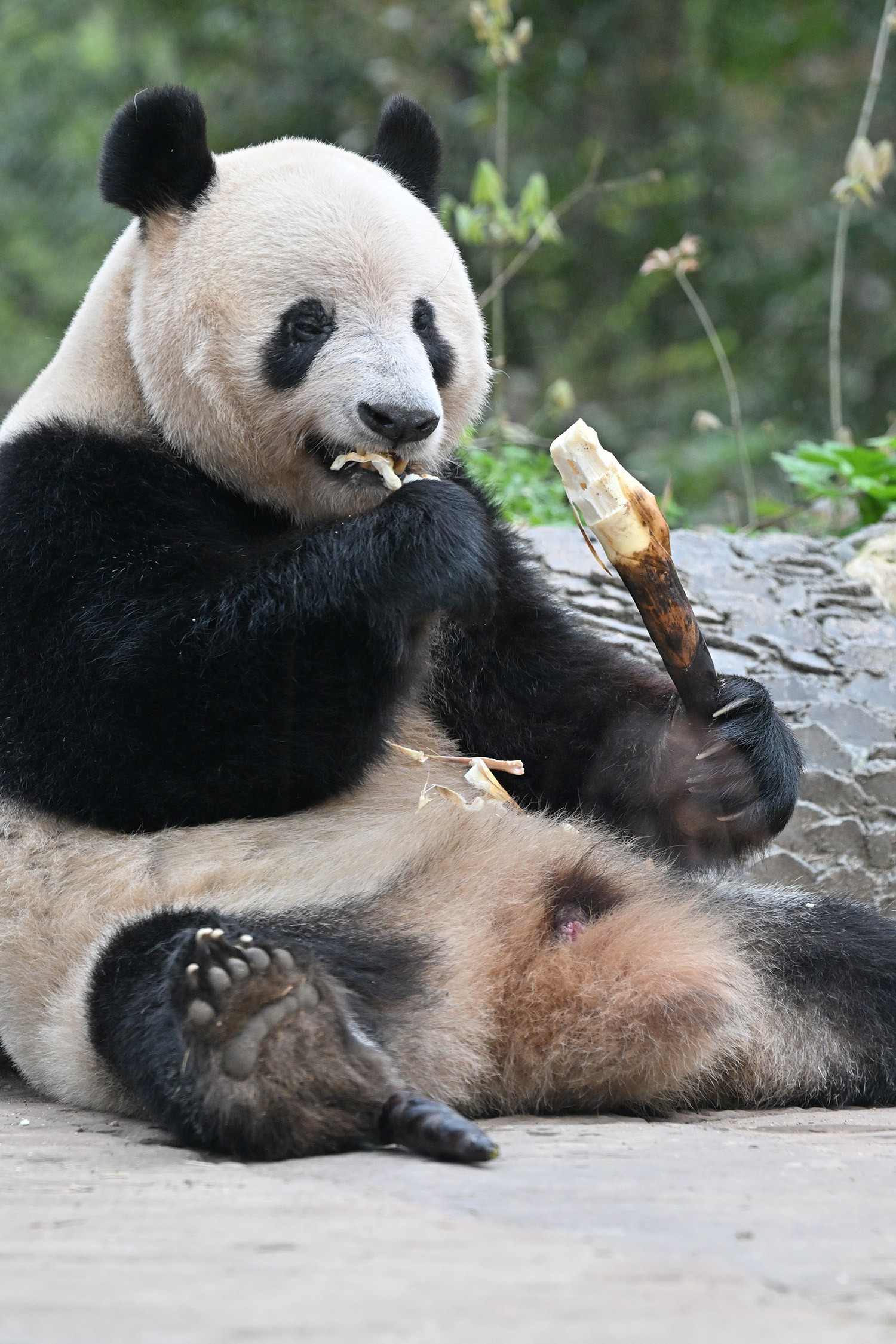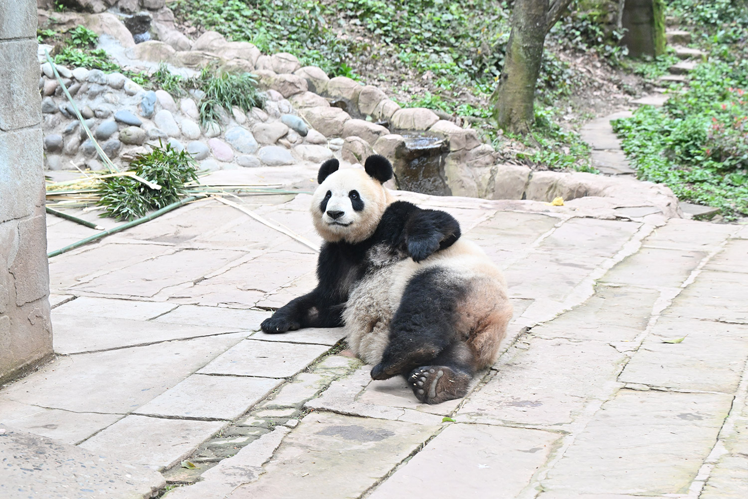 色っぽいシンシン、そのポーズでフリーズ?悩ましいですね! 組んだ腕にお顔を乗せたくつろぎシンシンと優雅にお散歩シンシンも見れて、大満足させていただきました。