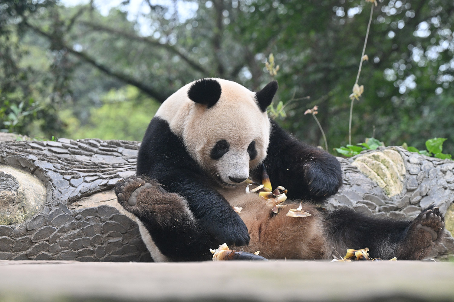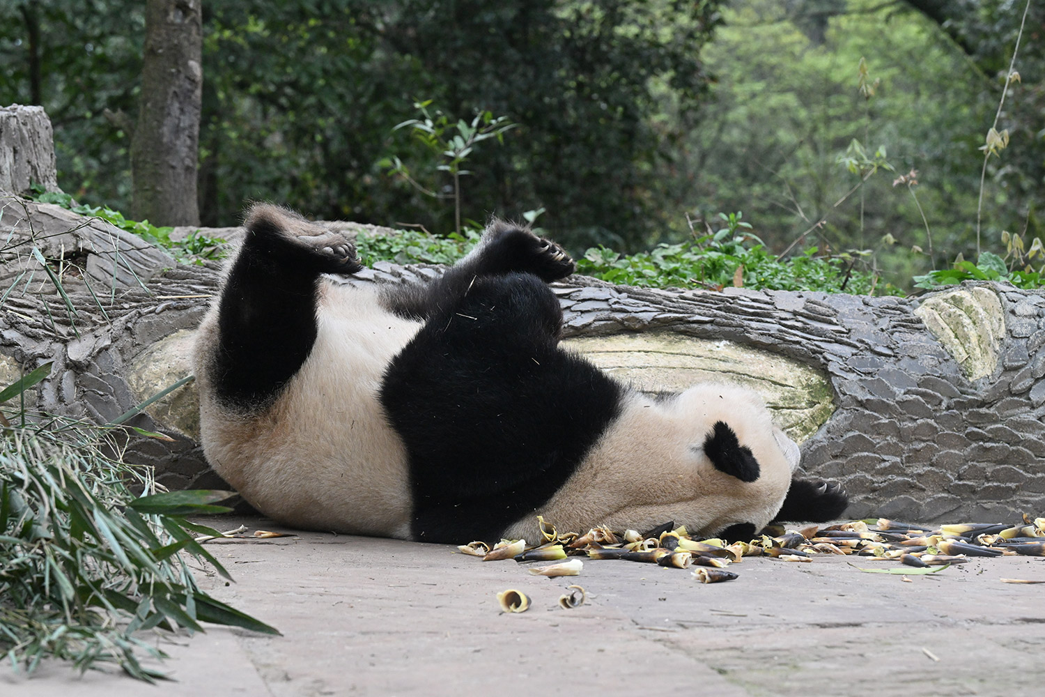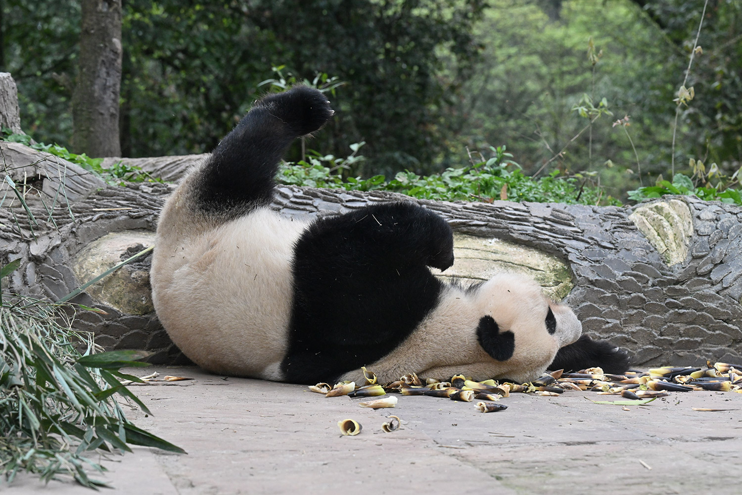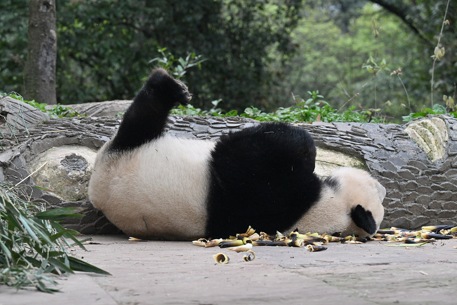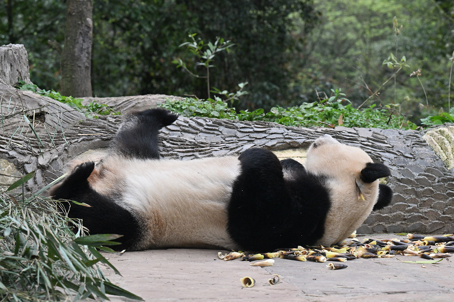 色っぽいシンシン、そのポーズでフリーズ?悩ましいですね! 組んだ腕にお顔を乗せたくつろぎシンシンと優雅にお散歩シンシンも見れて、大満足させていただきました。