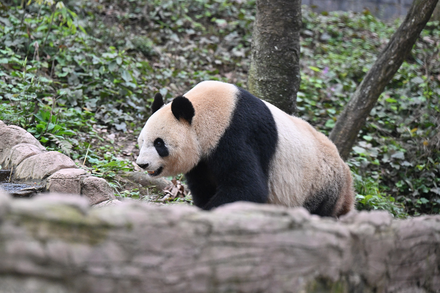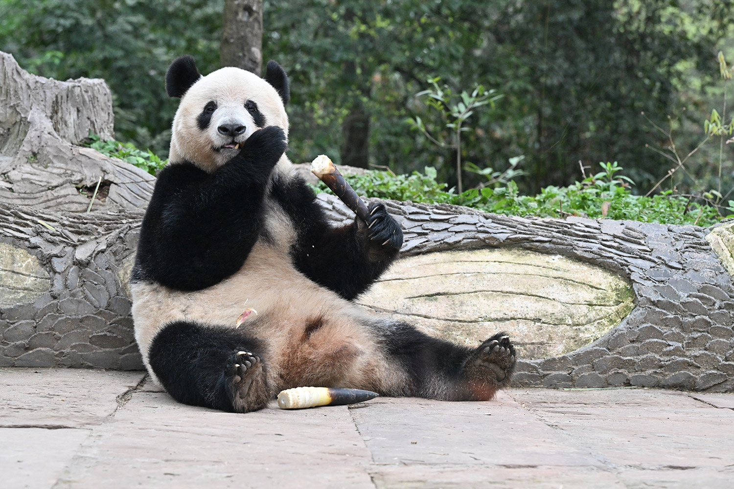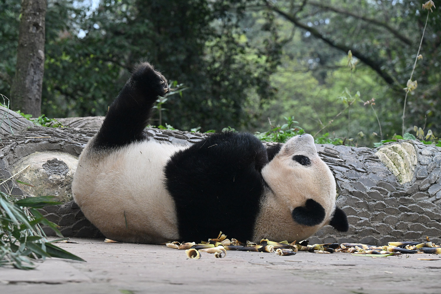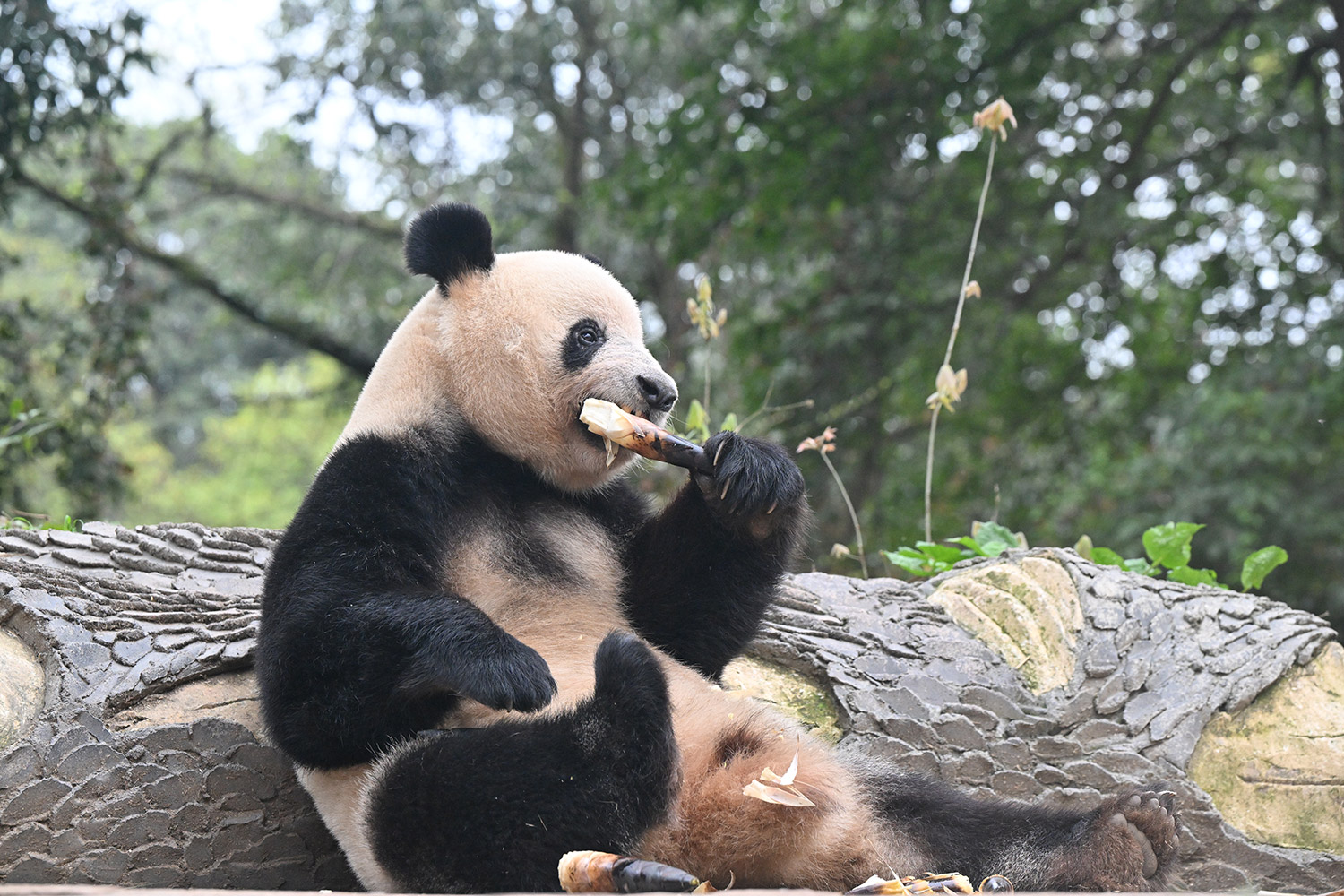 色っぽいシンシン、そのポーズでフリーズ?悩ましいですね! 組んだ腕にお顔を乗せたくつろぎシンシンと優雅にお散歩シンシンも見れて、大満足させていただきました。