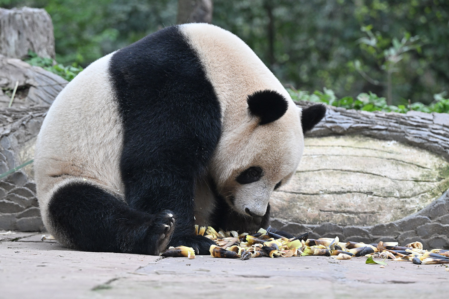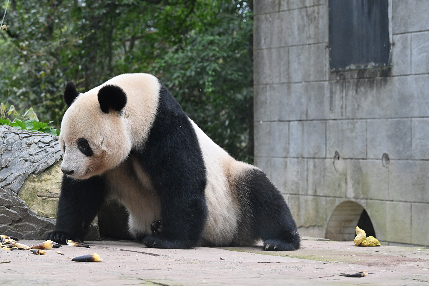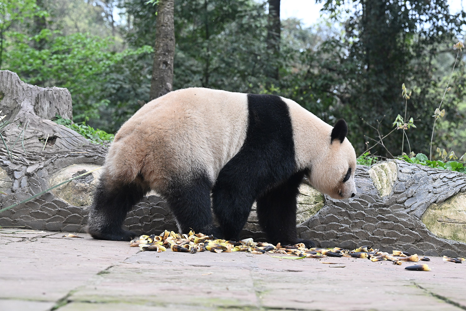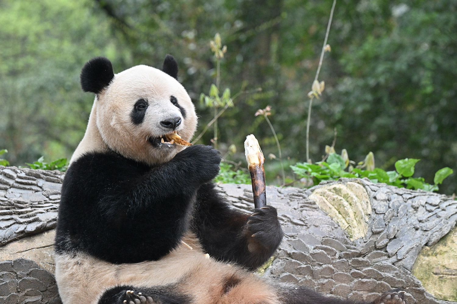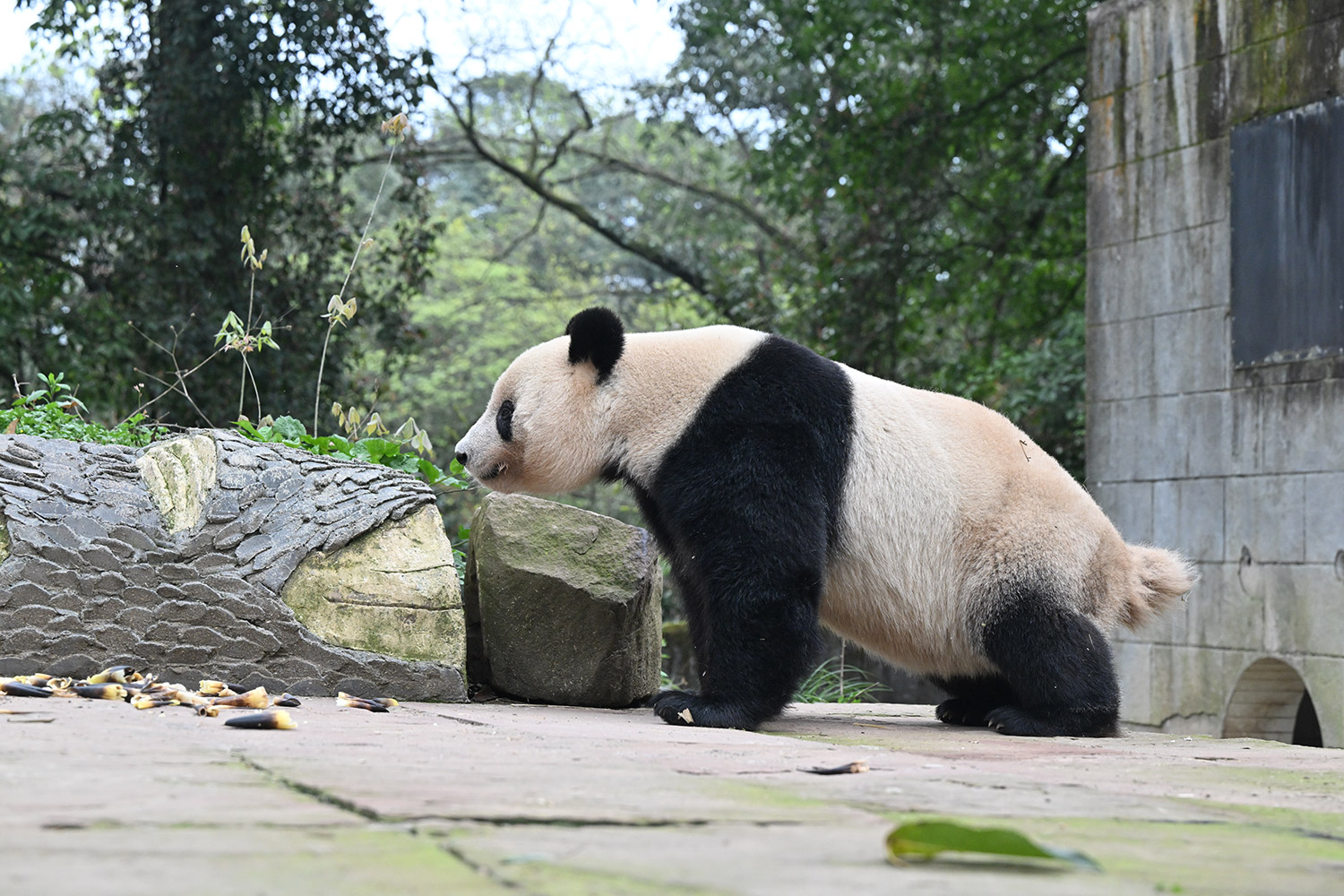 色っぽいシンシン、そのポーズでフリーズ?悩ましいですね! 組んだ腕にお顔を乗せたくつろぎシンシンと優雅にお散歩シンシンも見れて、大満足させていただきました。