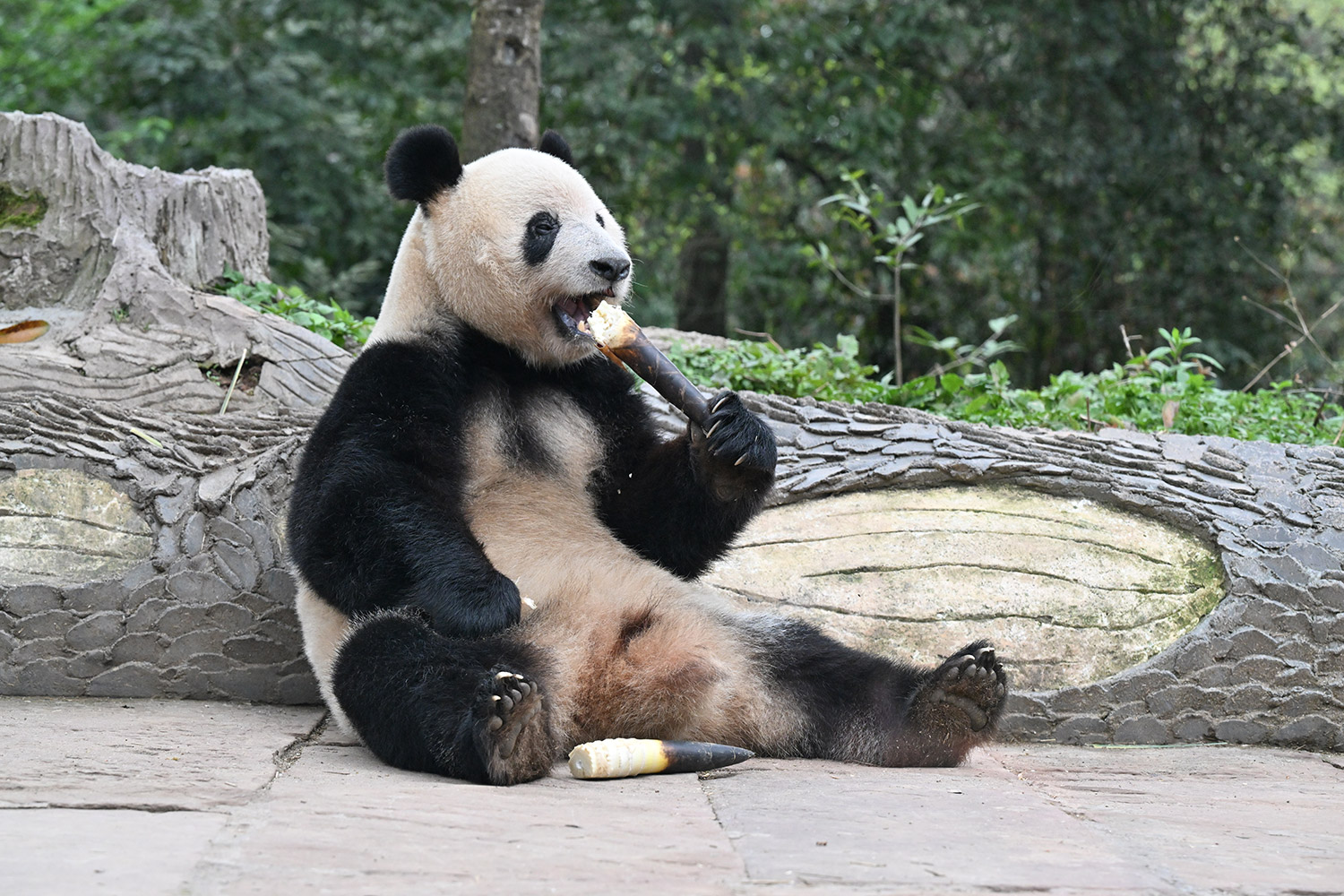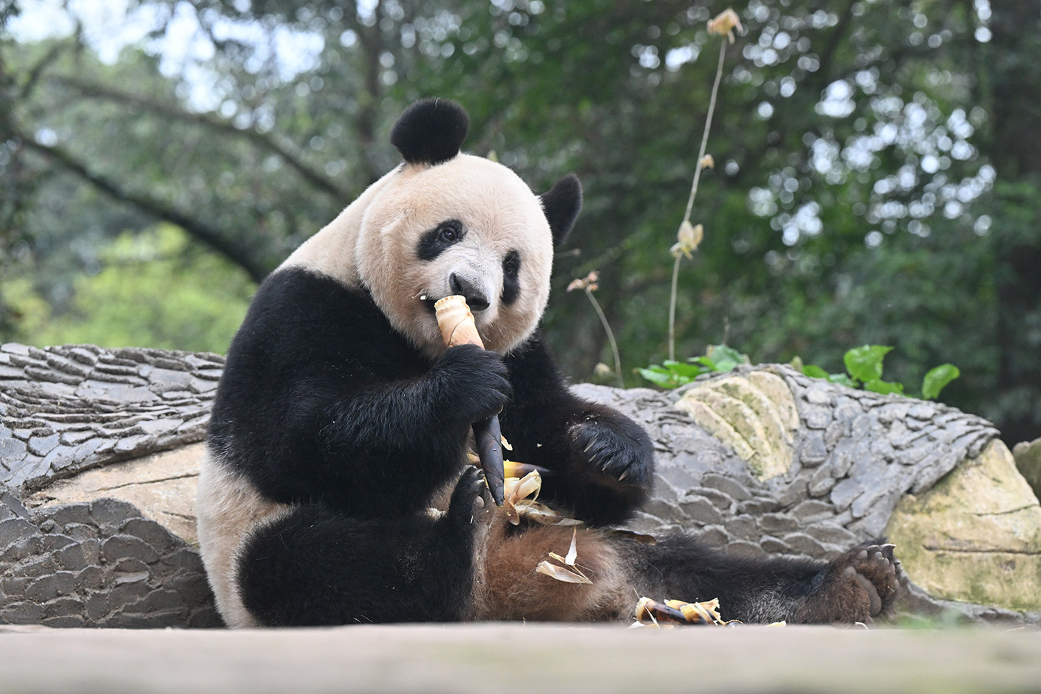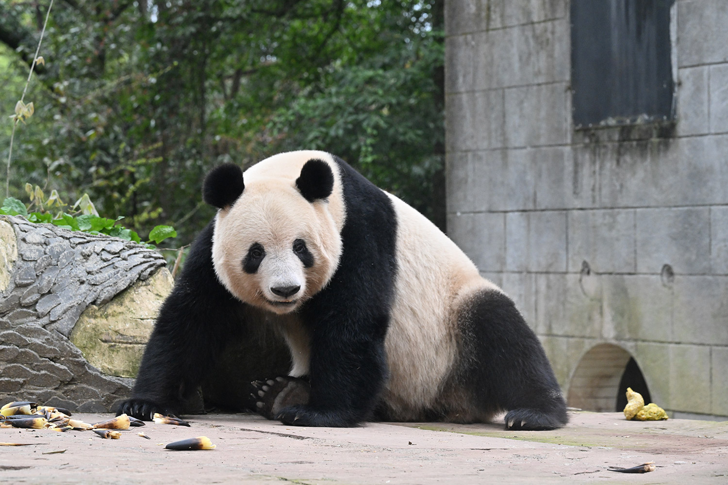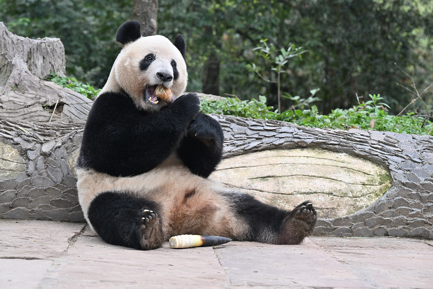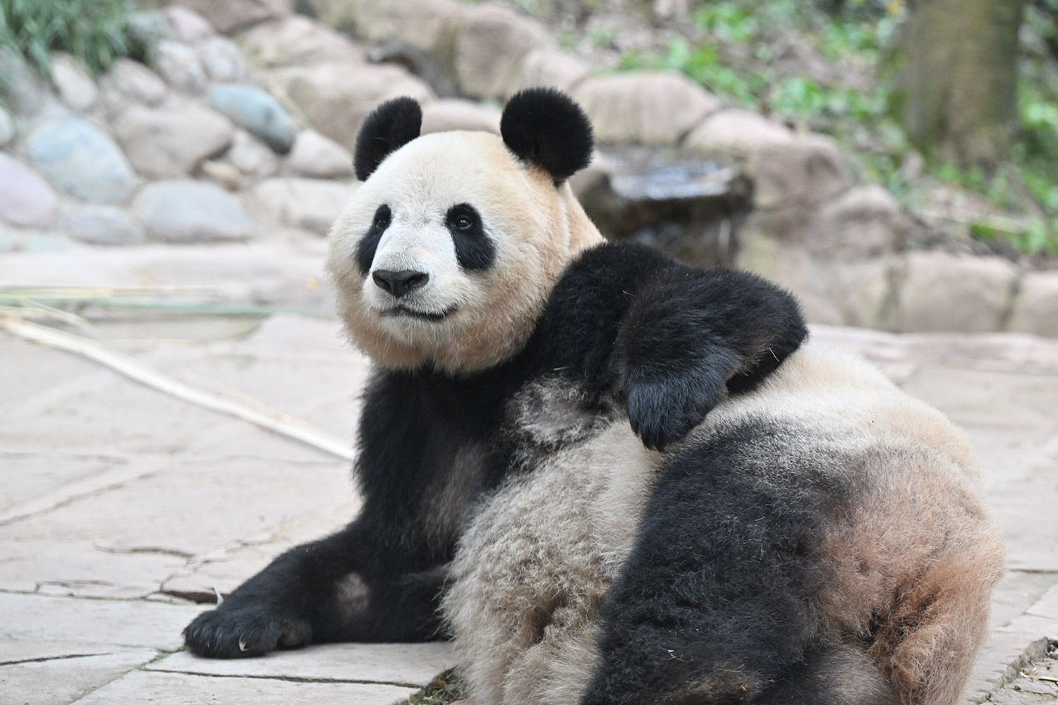 シンシンのひとやすみ写真は完全にカメラを見てますよね😮固まってのポージング🤣笑わせてくれます🤣