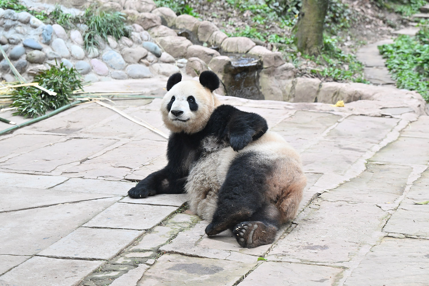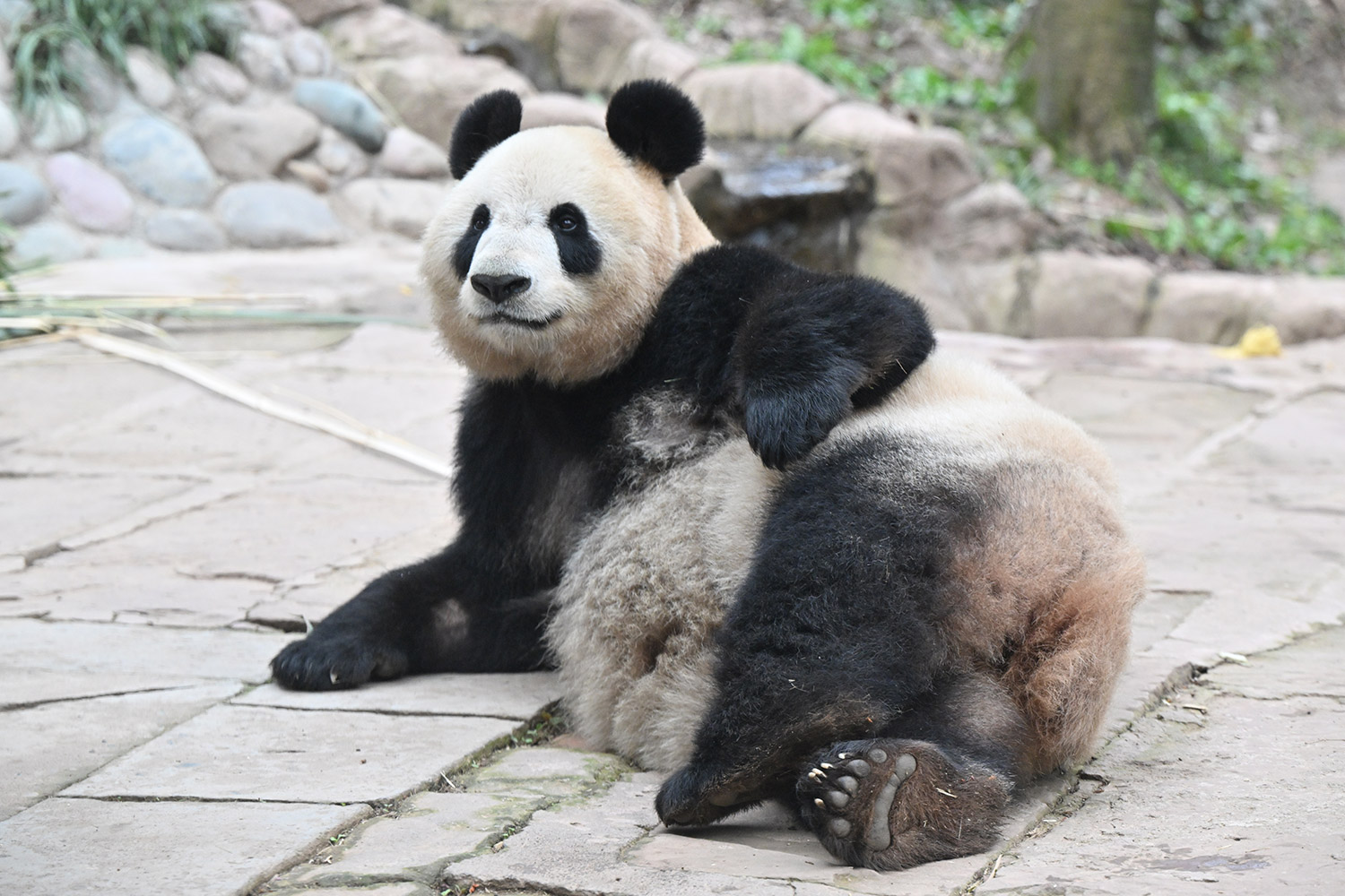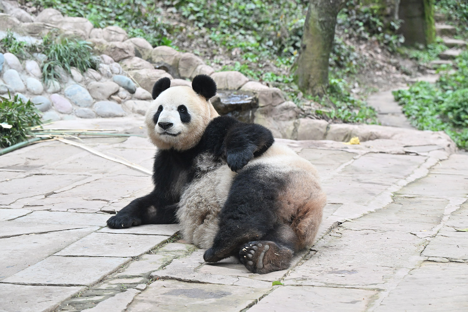 最後のごろごろストレッチ、足が短く見えてタンタンを彷彿させますね🐼