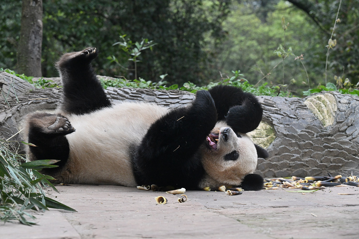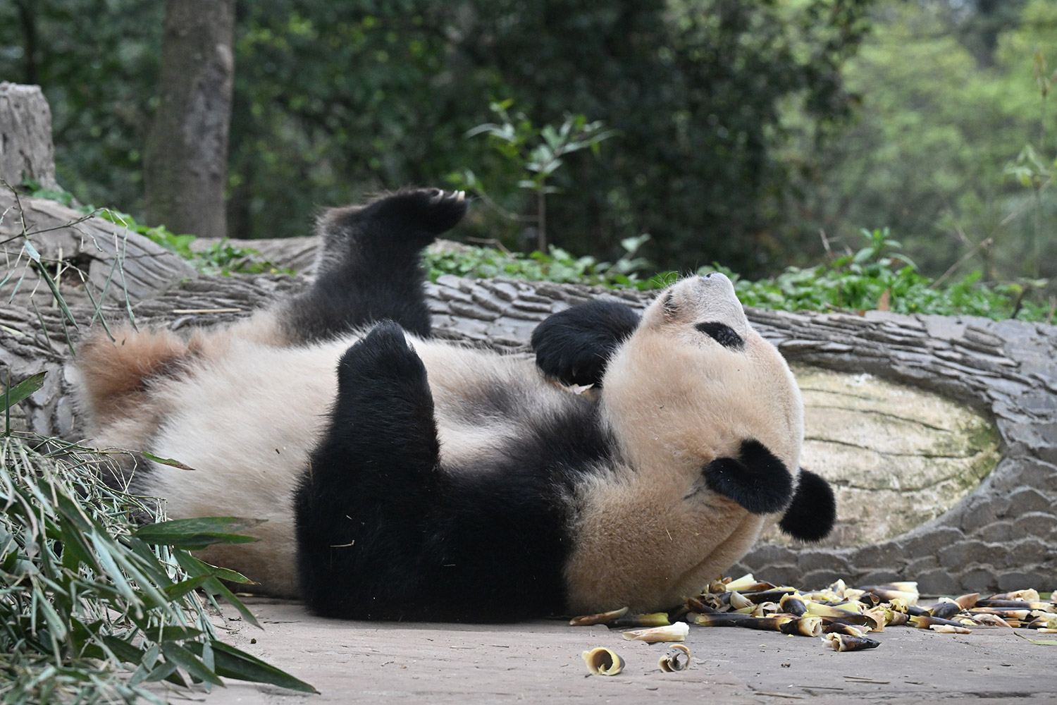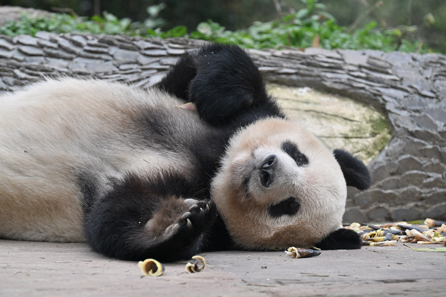 最後のごろごろストレッチ、足が短く見えてタンタンを彷彿させますね🐼
