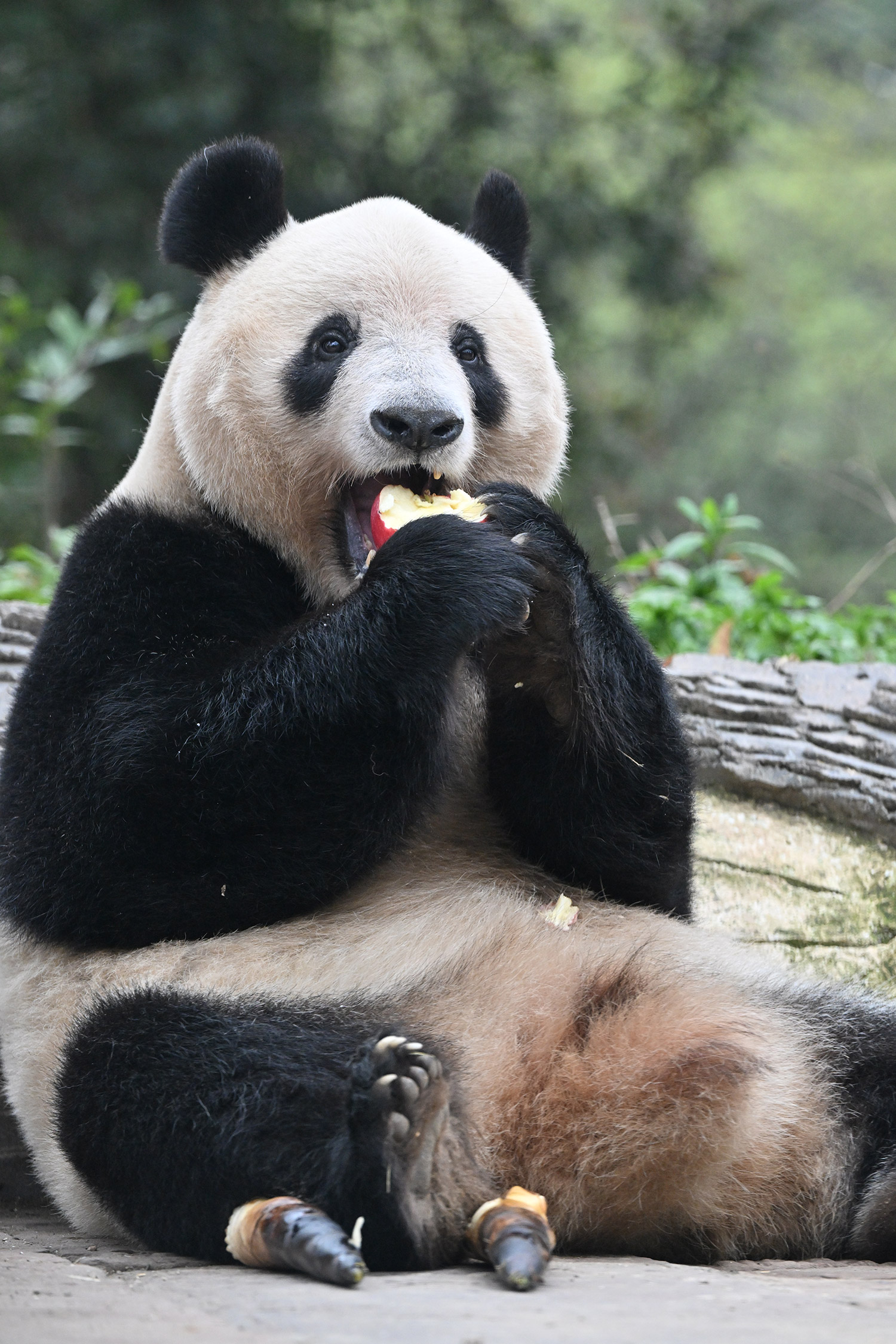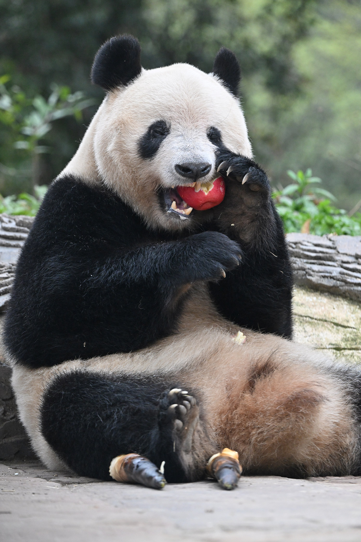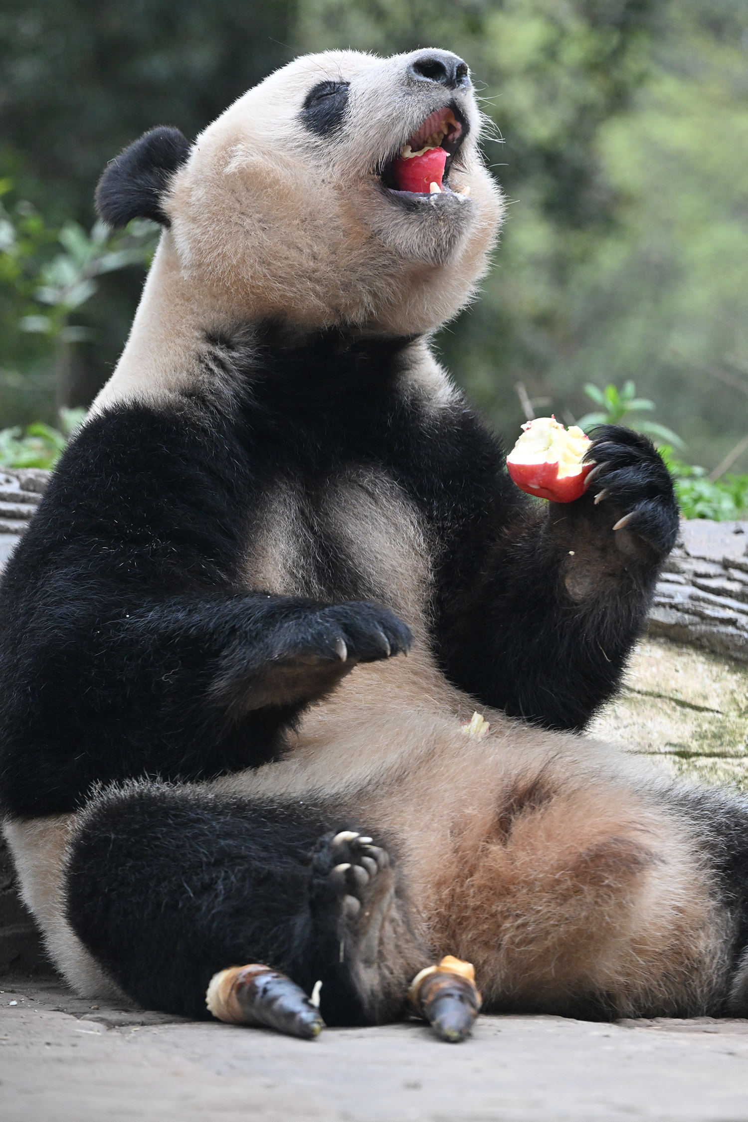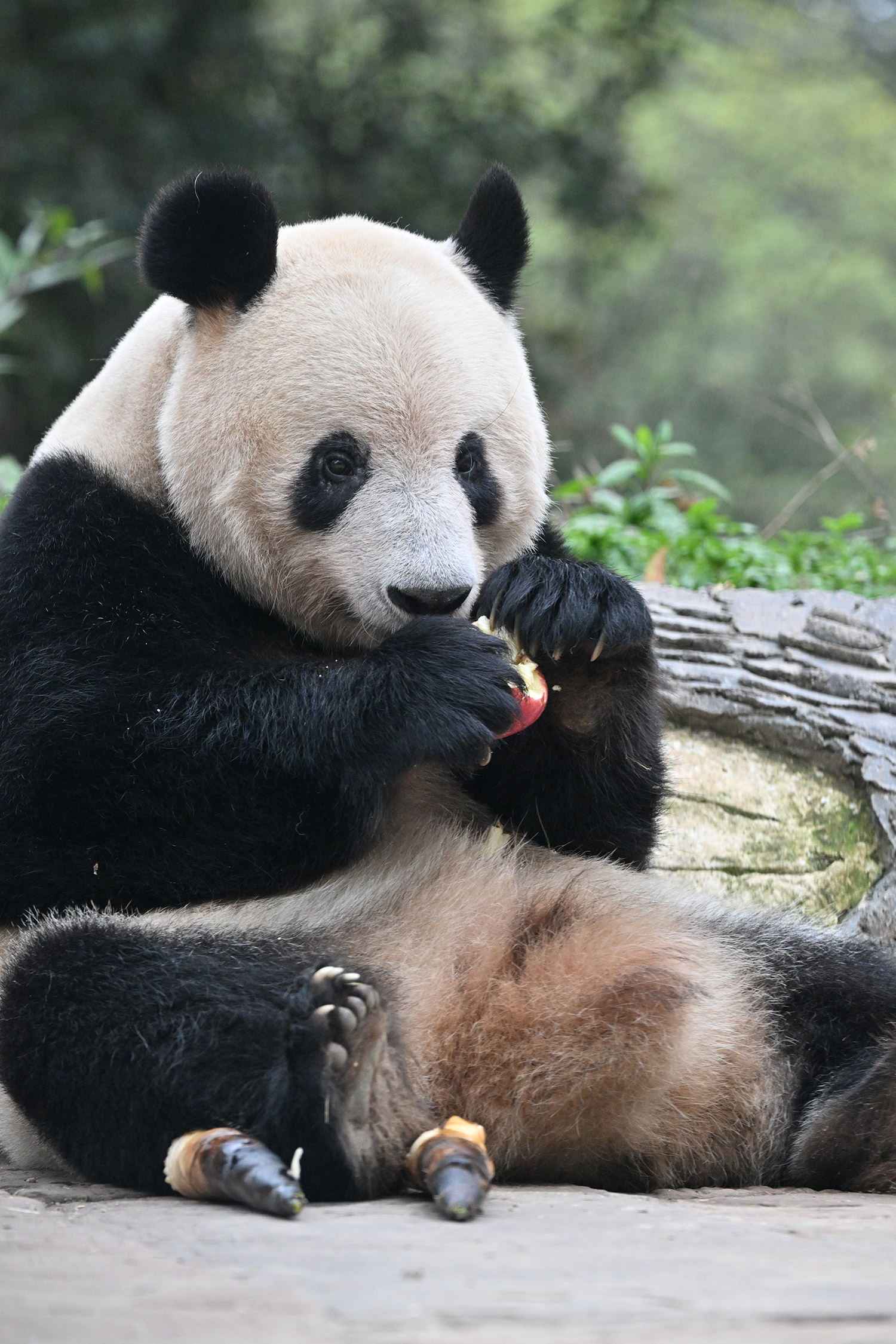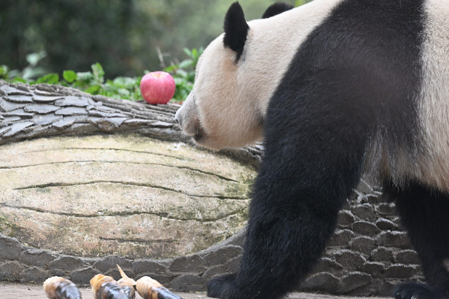 シャンシャン、白黒の🐼に赤い🍎は良く映えますね🤭