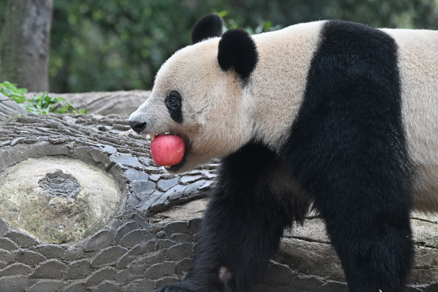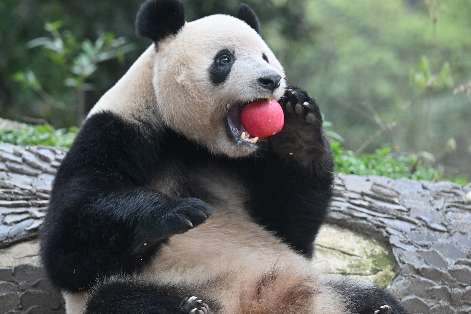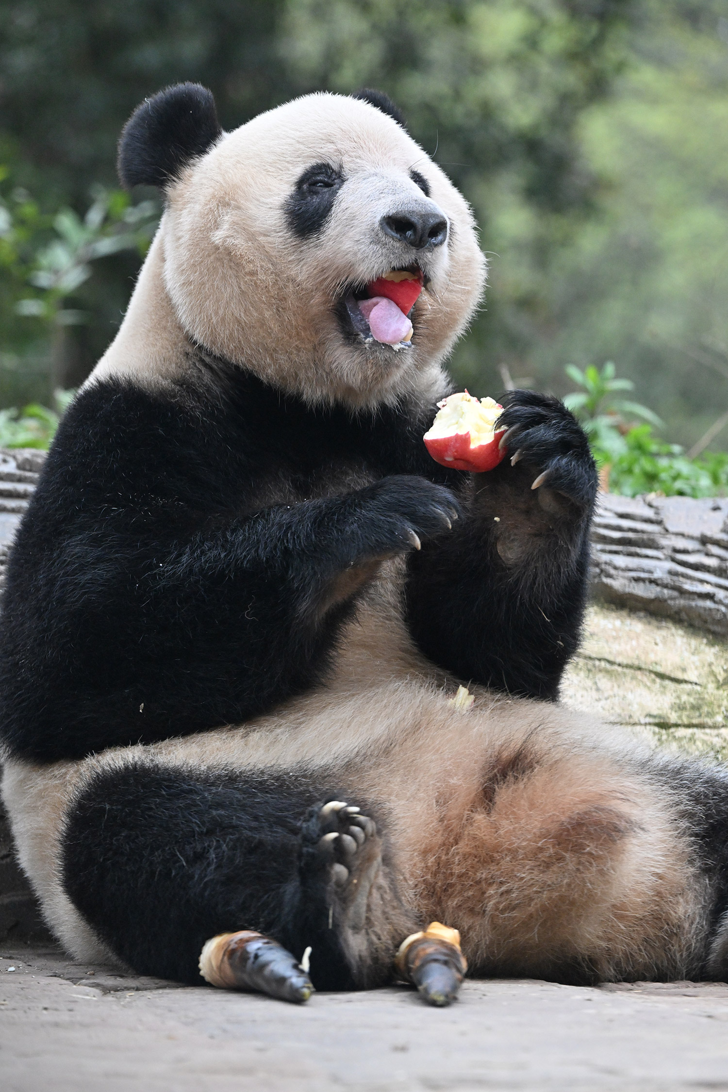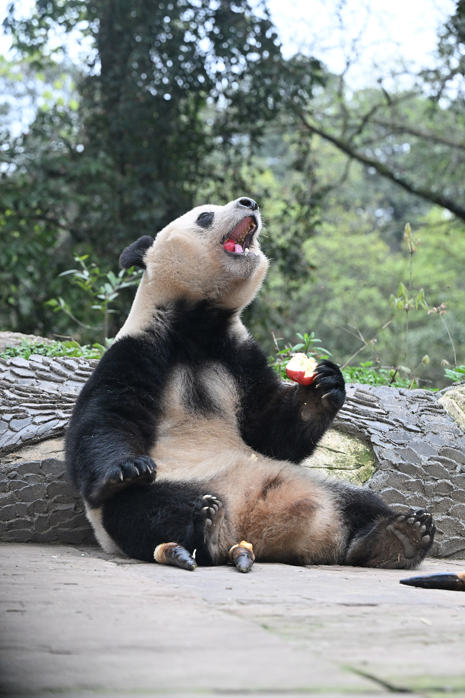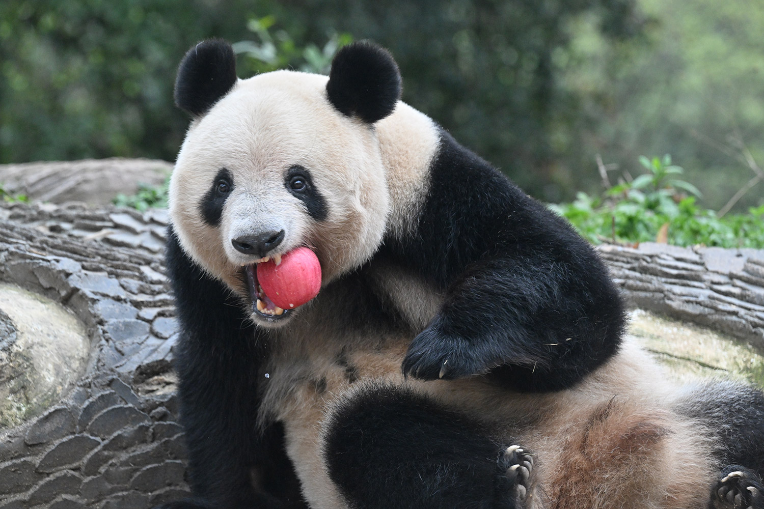 シャンシャン、白黒の🐼に赤い🍎は良く映えますね🤭
