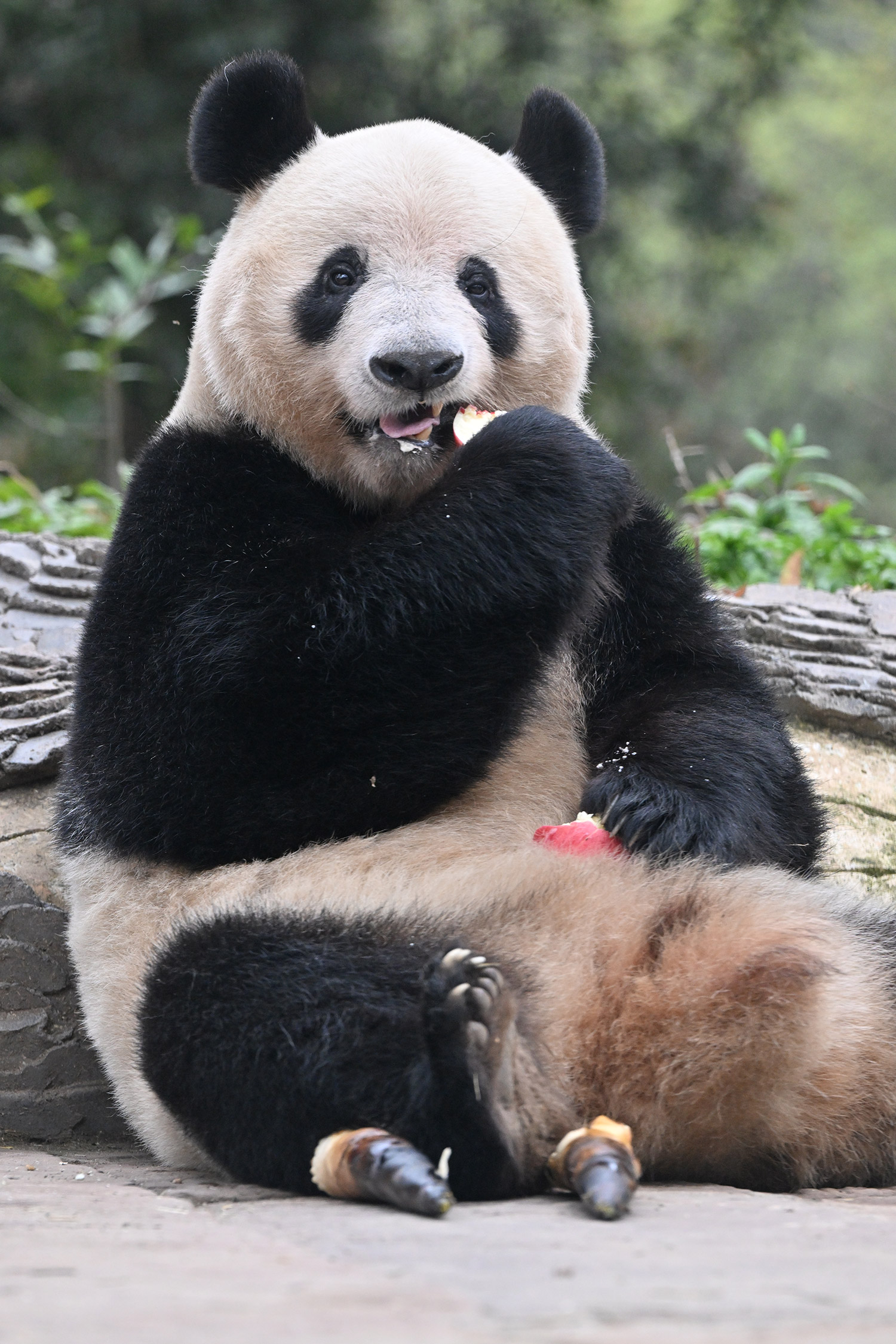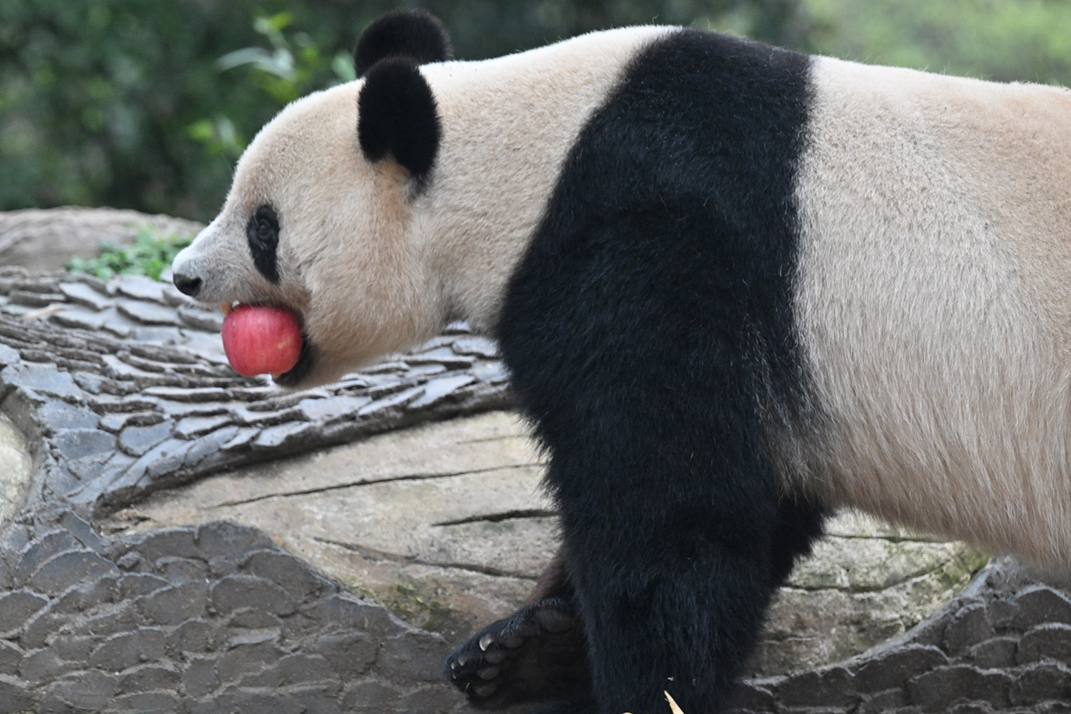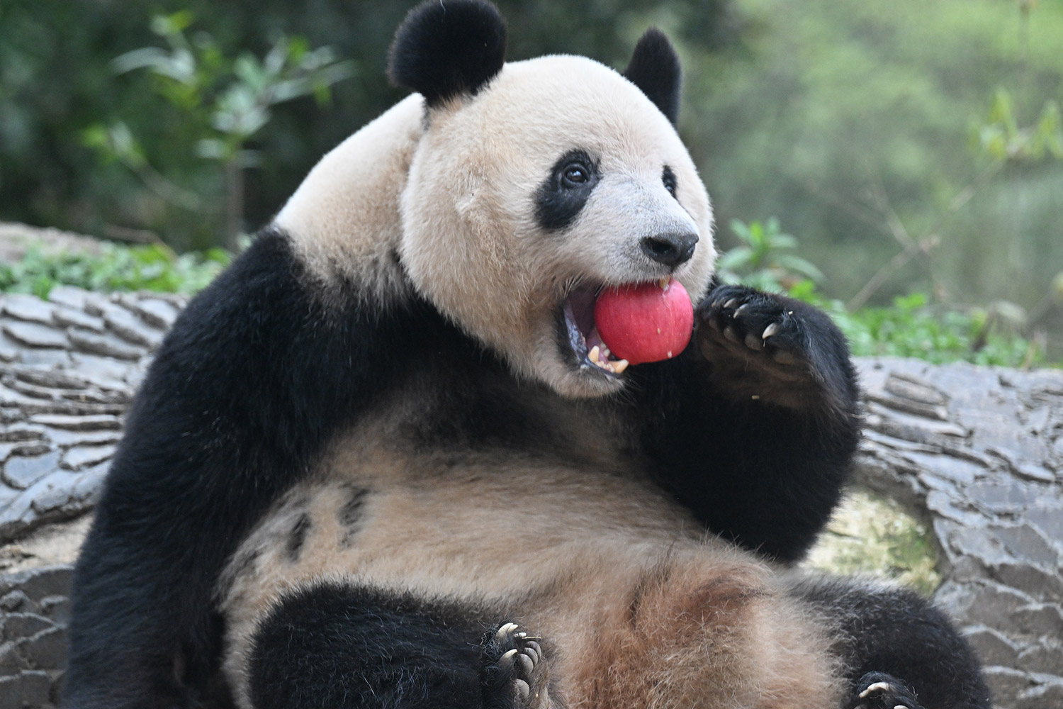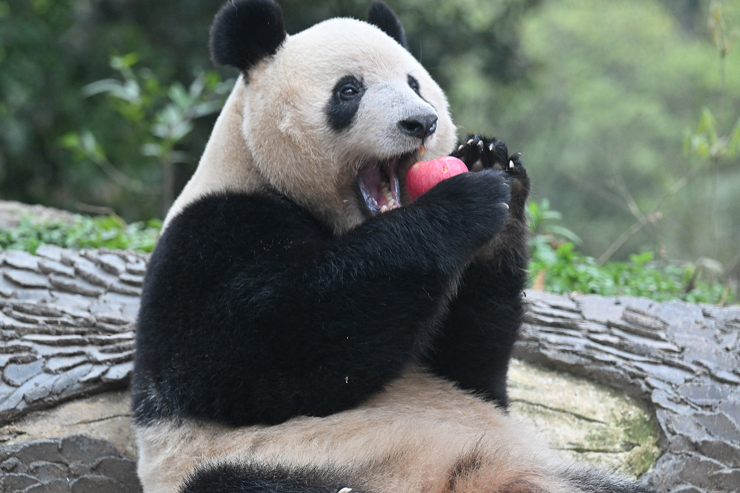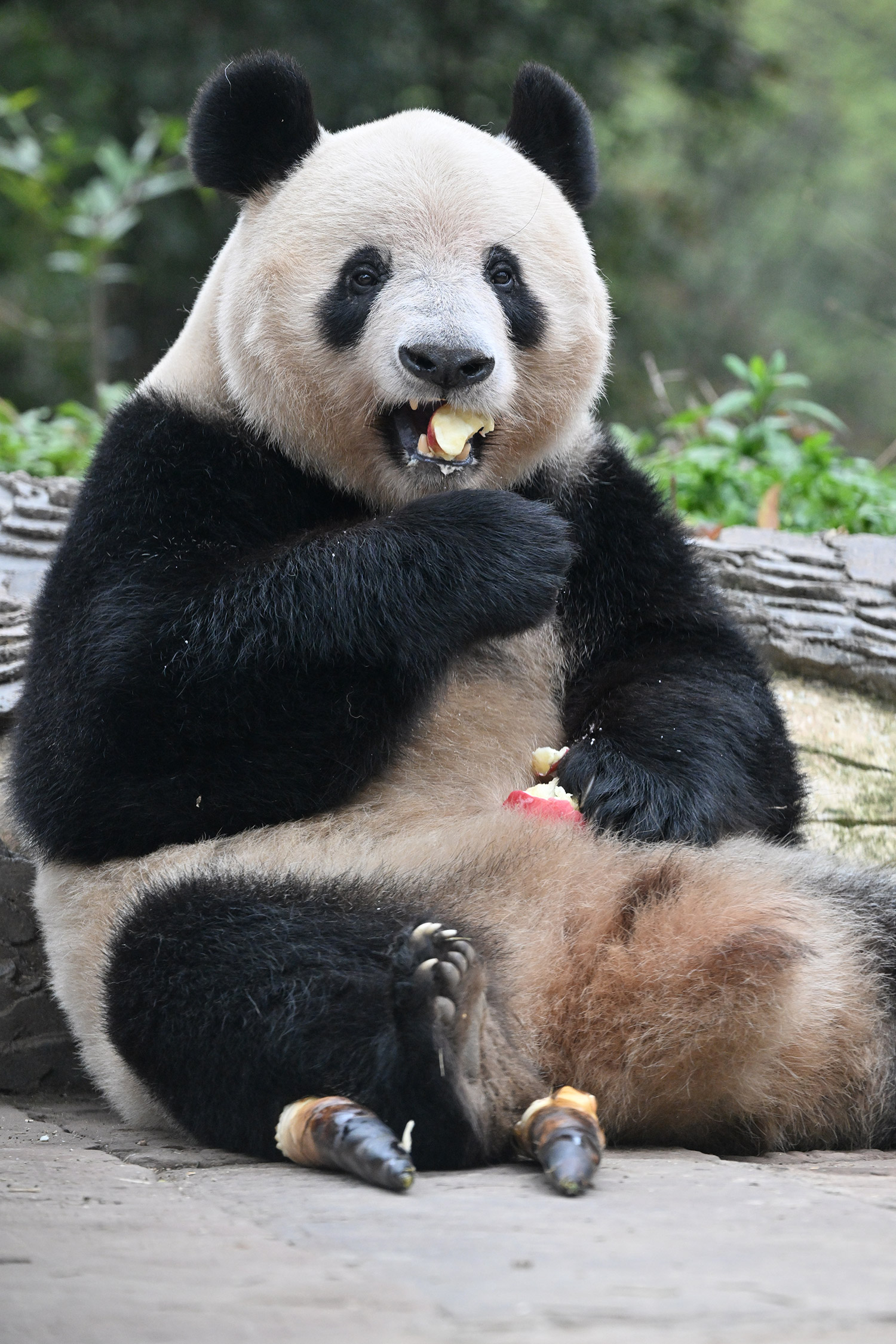シャンシャン、白黒の🐼に赤い🍎は良く映えますね🤭