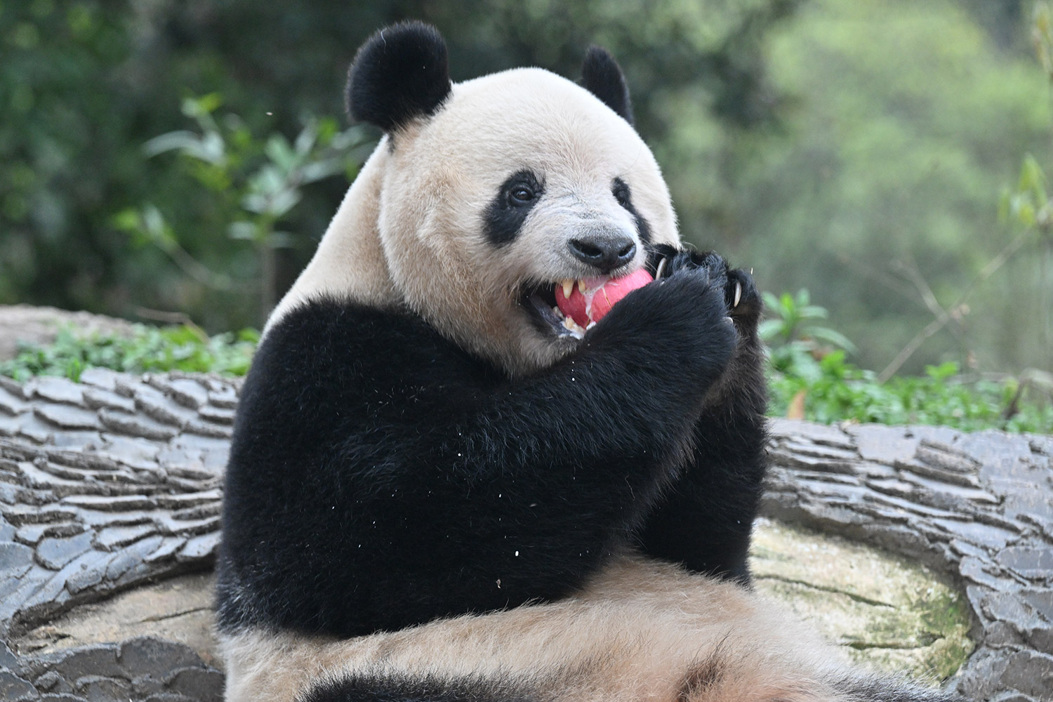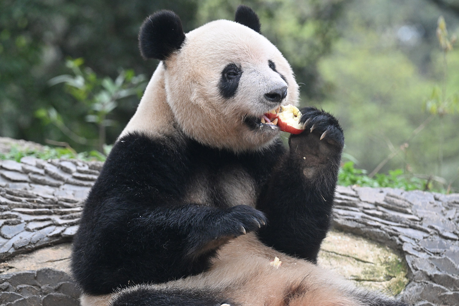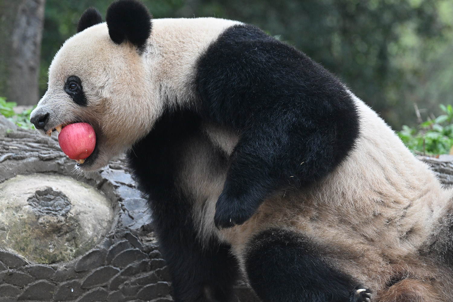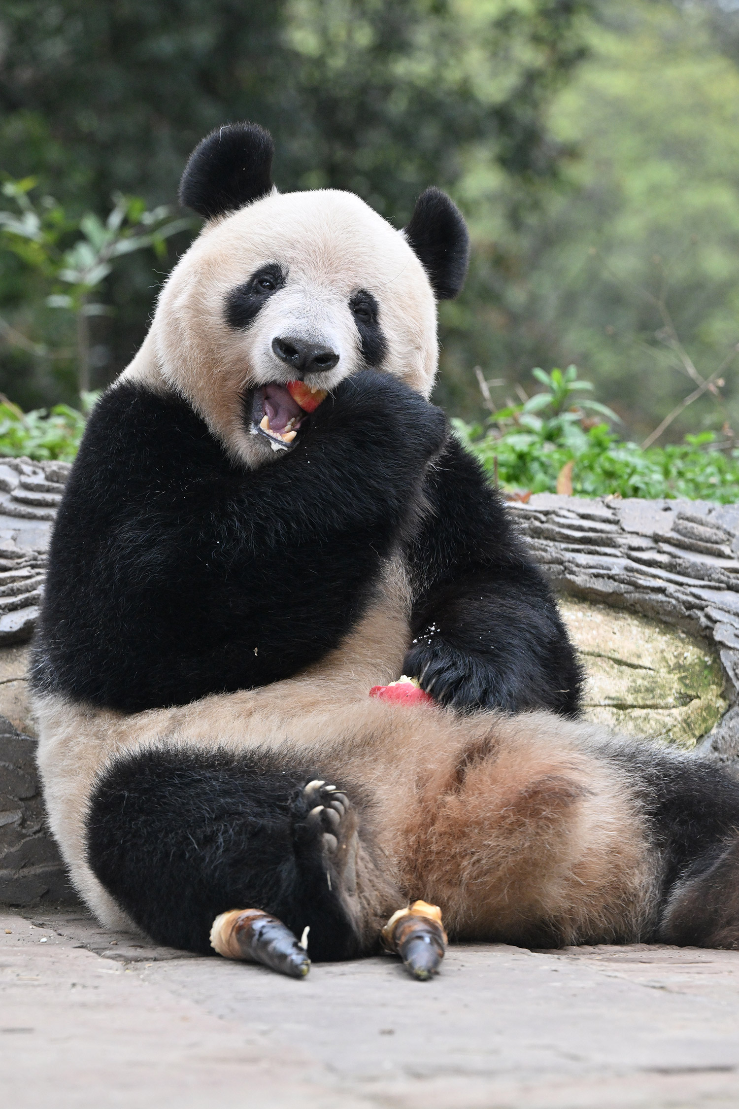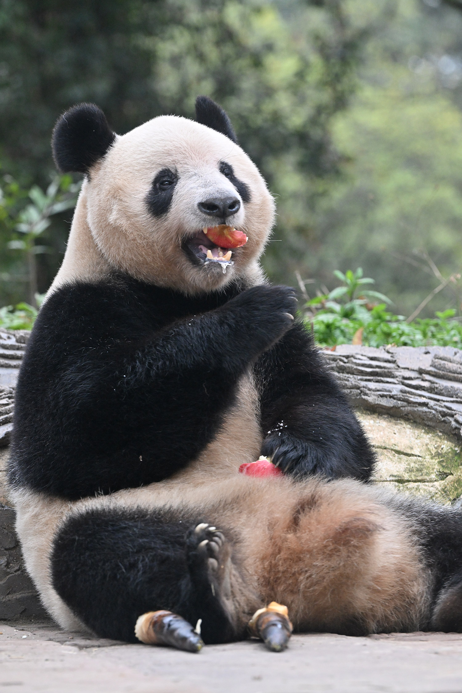 シャンシャン、白黒の🐼に赤い🍎は良く映えますね🤭