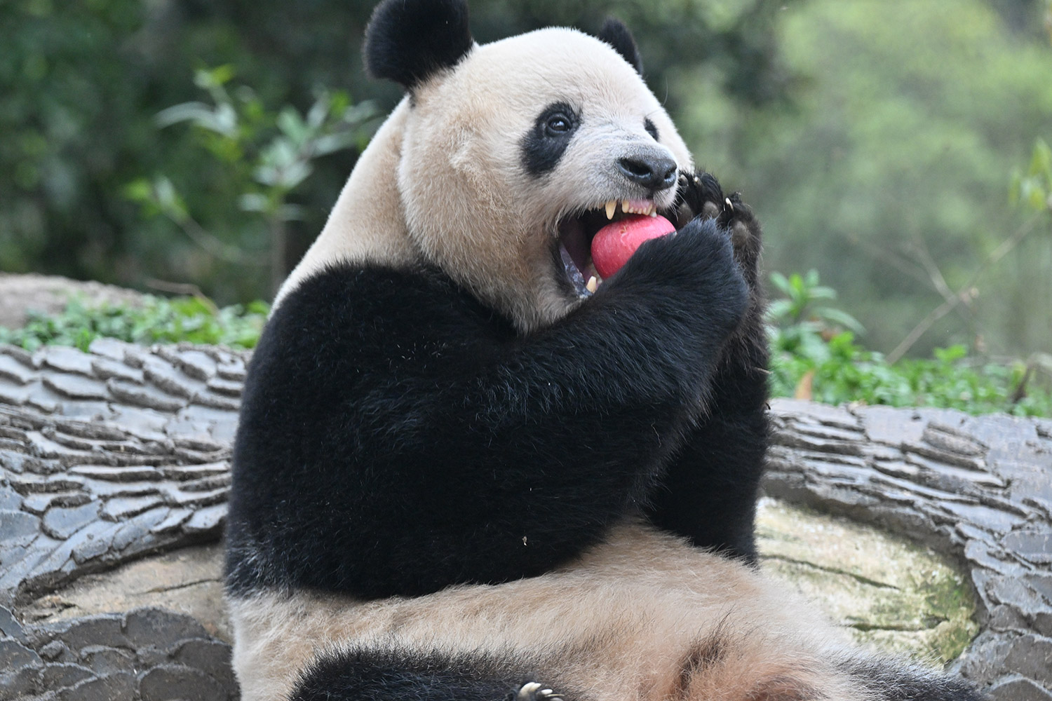 まるごとおリンゴ🍎を食べているシャンシャン、幸せそう。