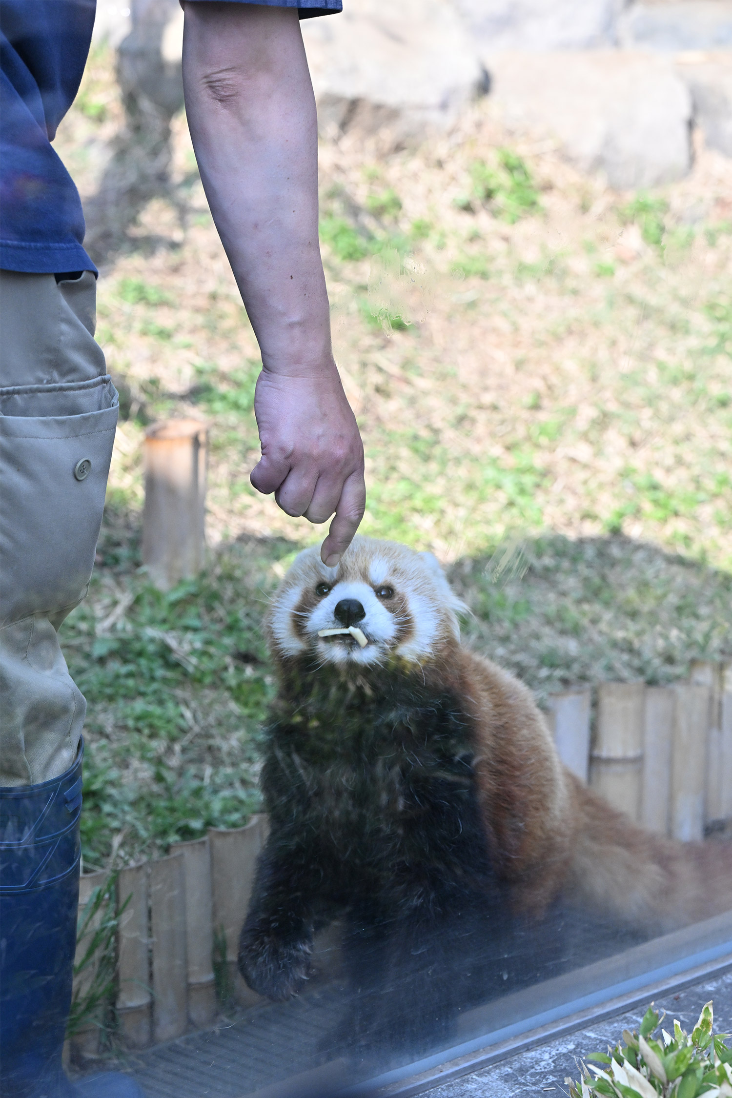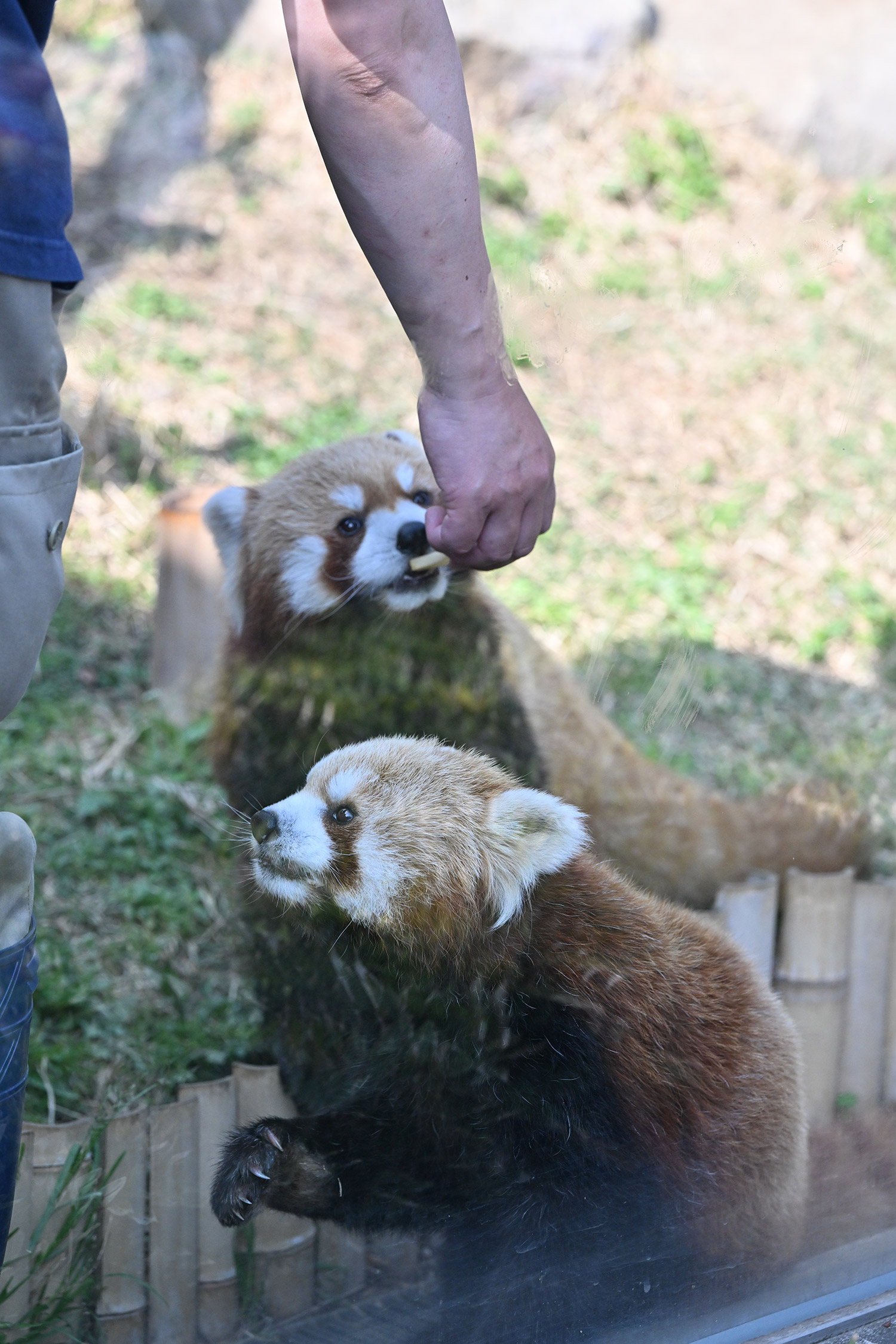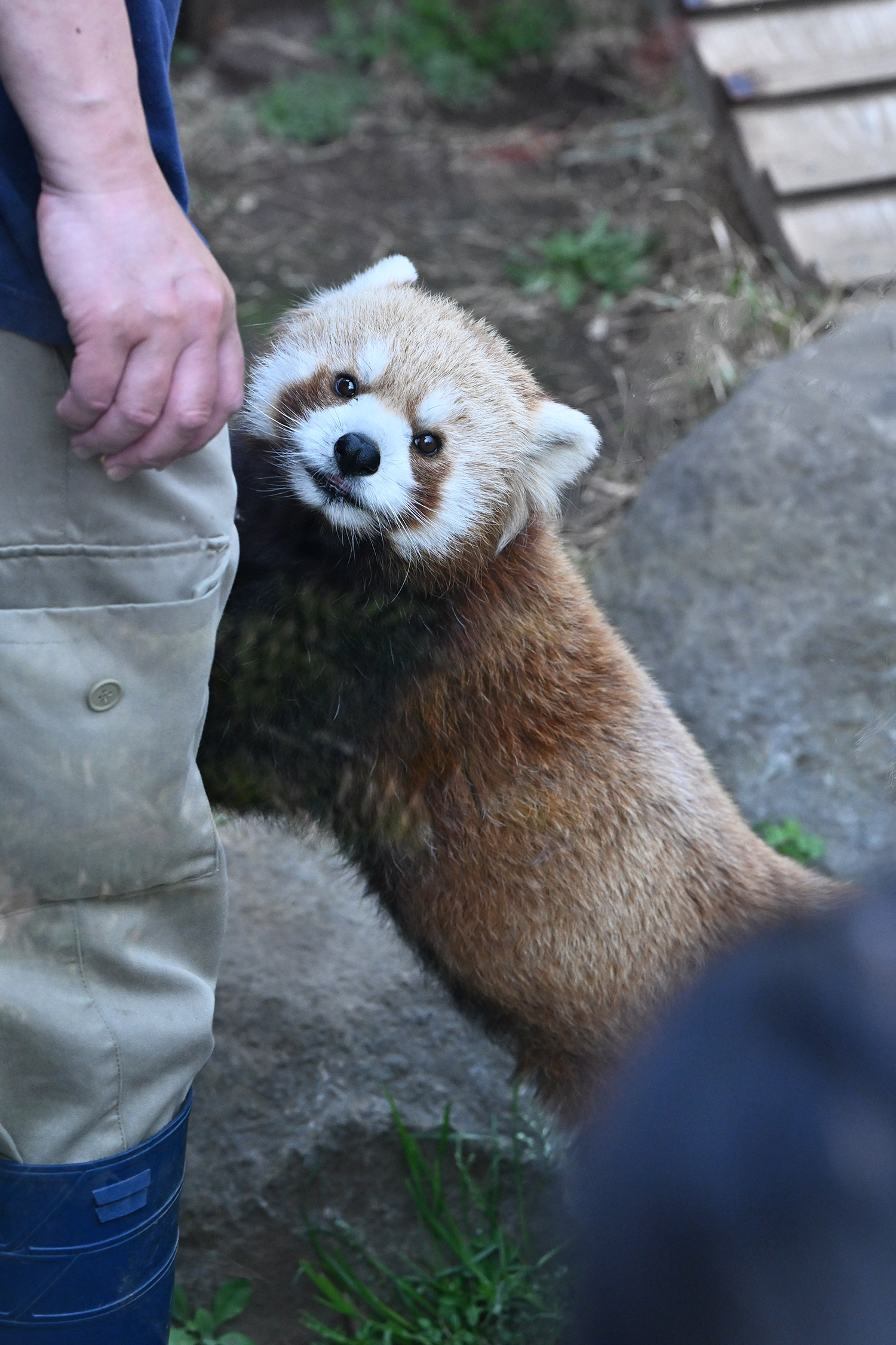 飼育員さんと一緒の写真「ちょうだいちょうだい」と寄ってくる姿に癒されます😍