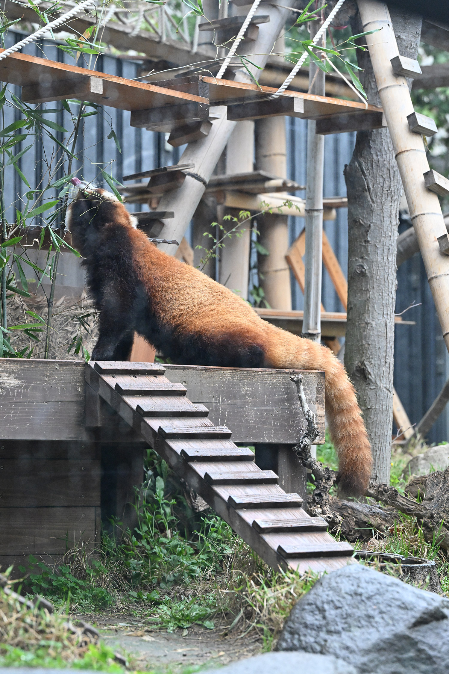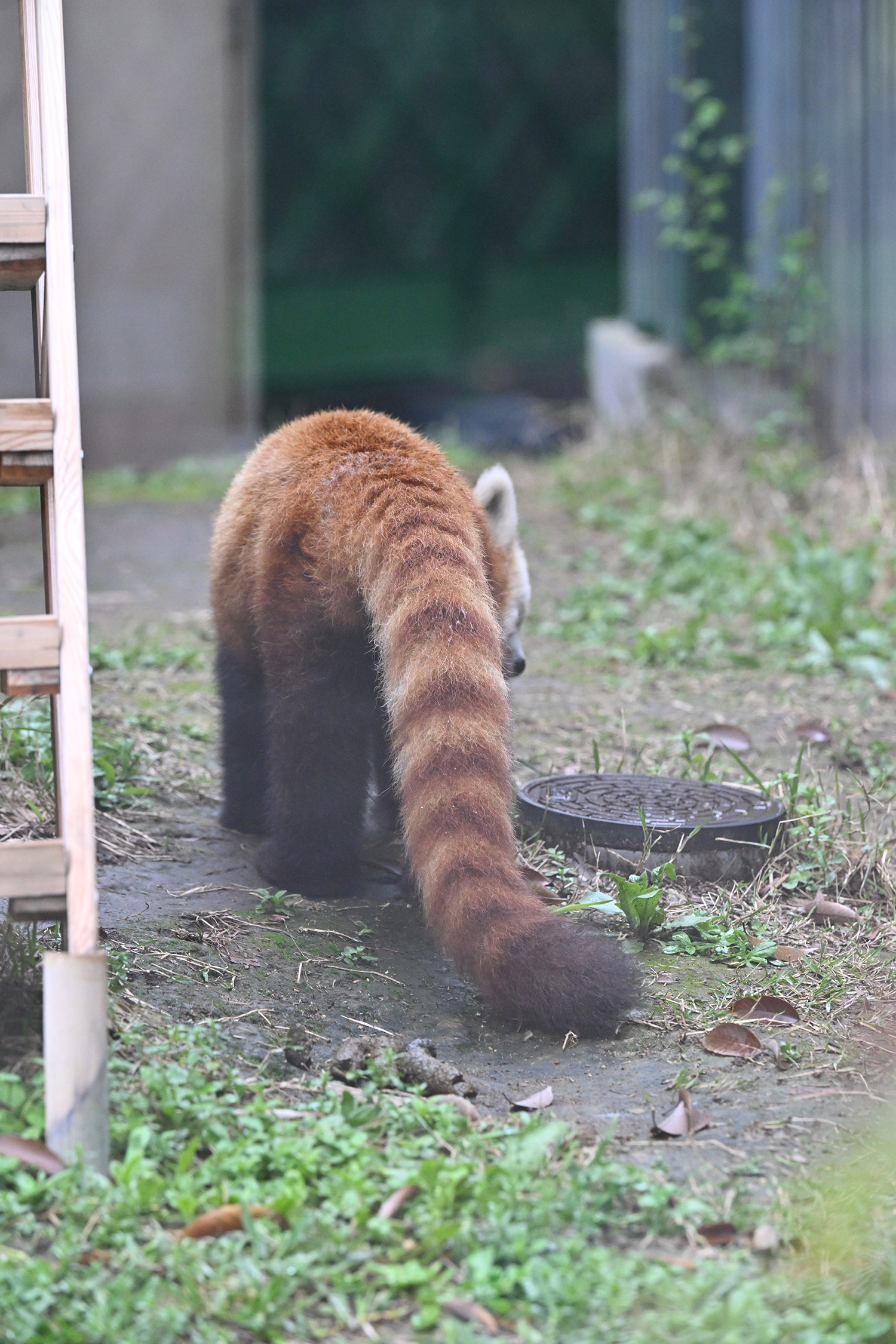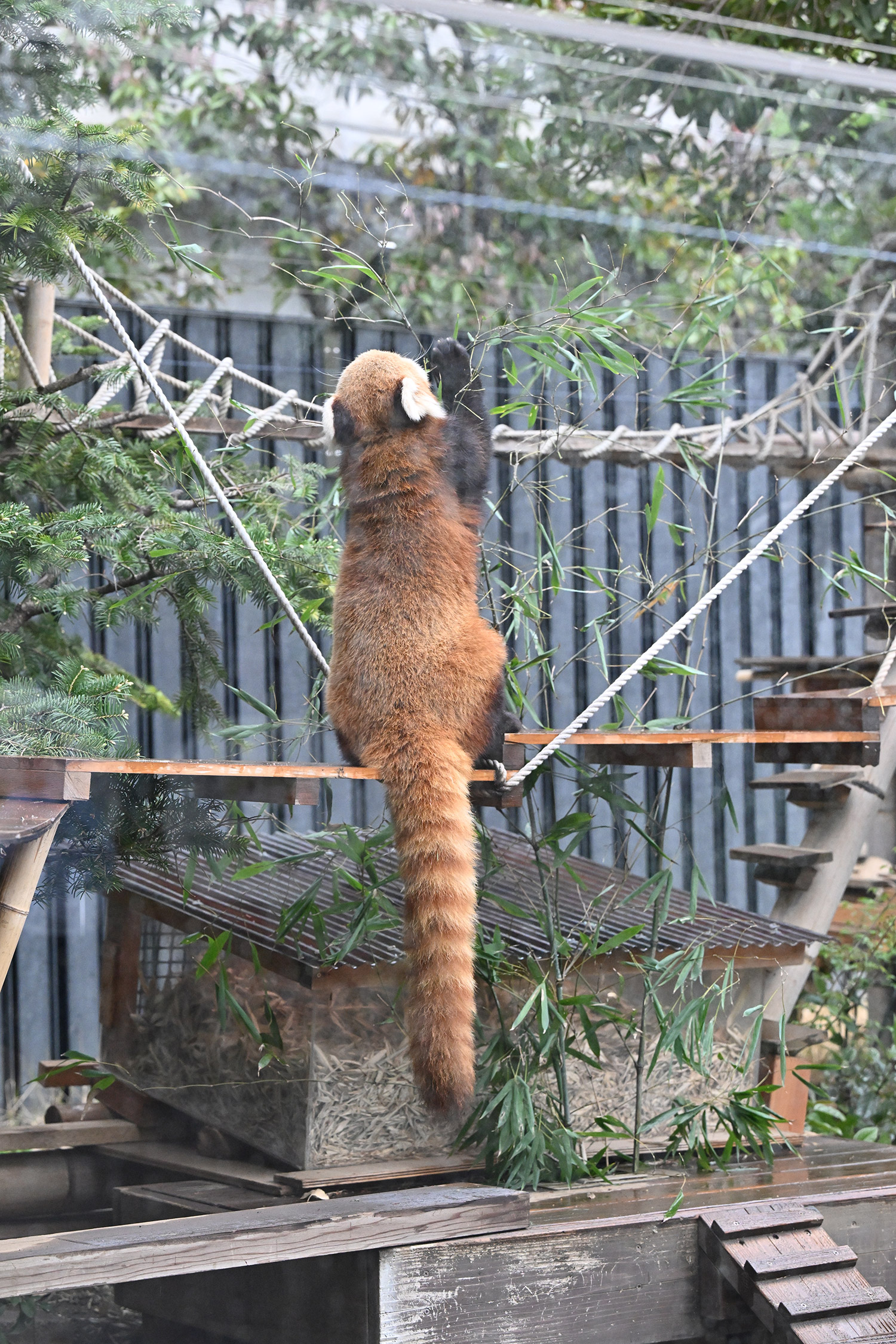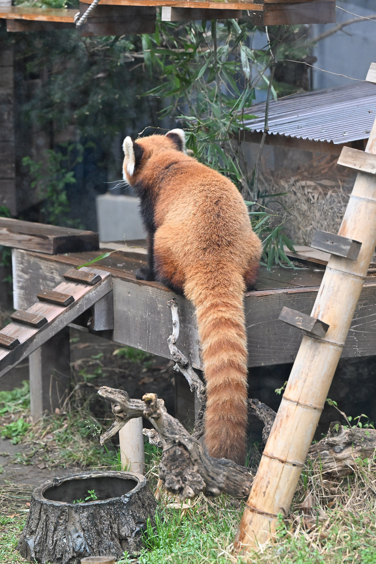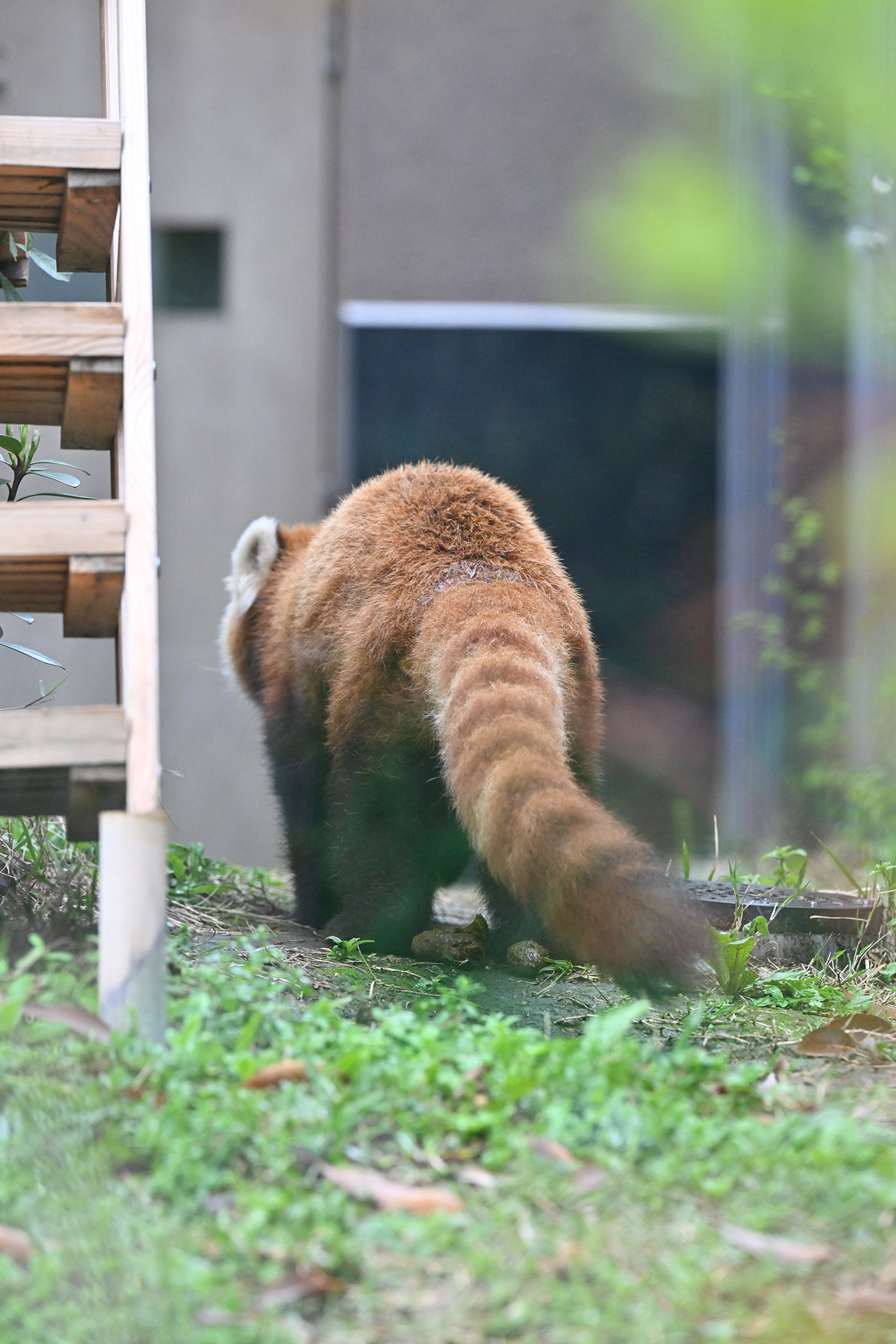 うじ様!小雨降る中ありがとうございます!赤茶の毛並み しっぽのしましま お顔や体の絶妙な色分けもcharming💕「.立ち食い」に笑♪しっぽの表情もcute💓ぷりぷりの時パンダはしっぽup⤴︎レッサーはdown⤵︎定番かな?まだ知らないことばかり…これからもお写真から学ばせてください!今日も幸せを分けてくださり感謝です‼️