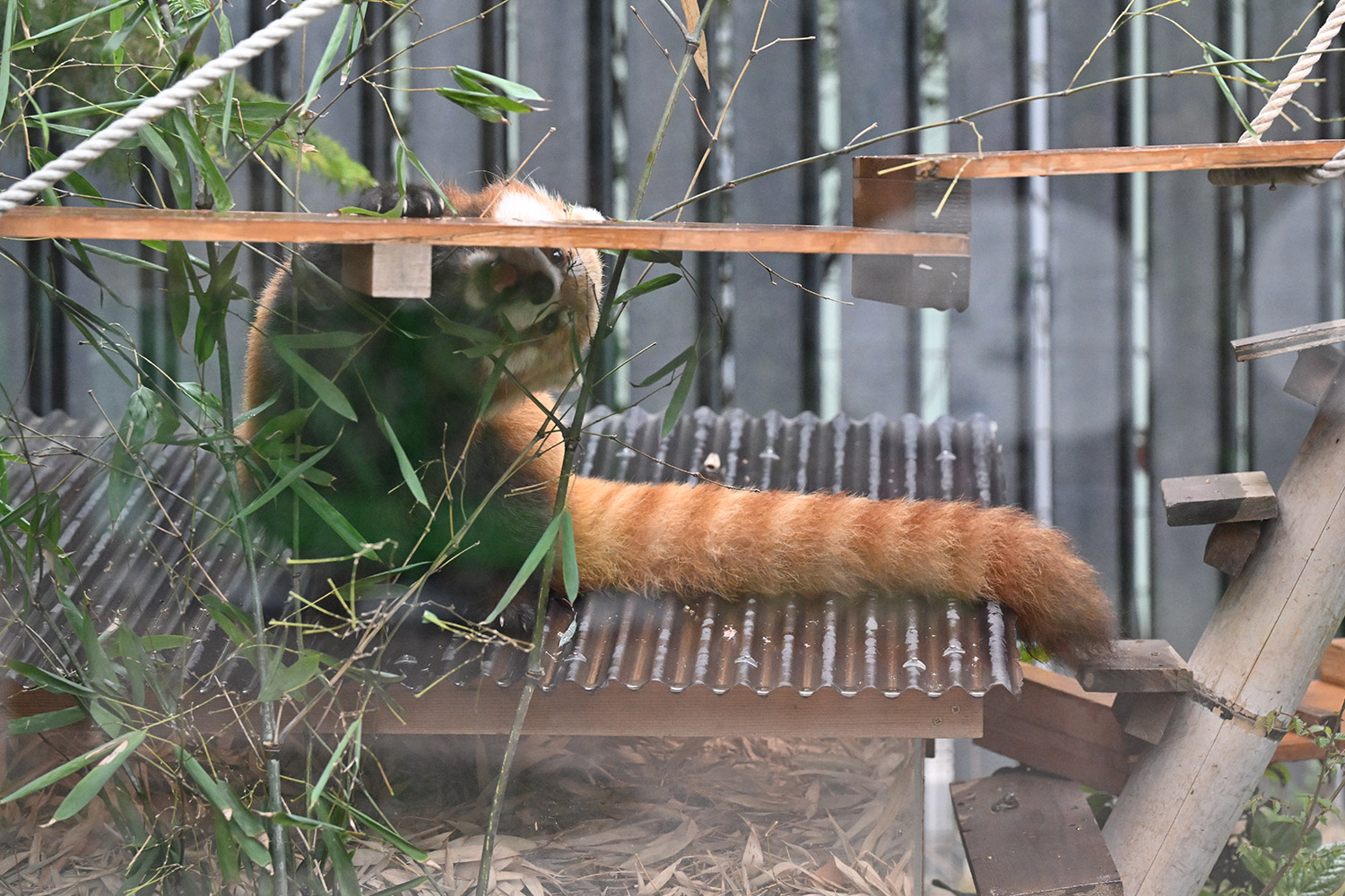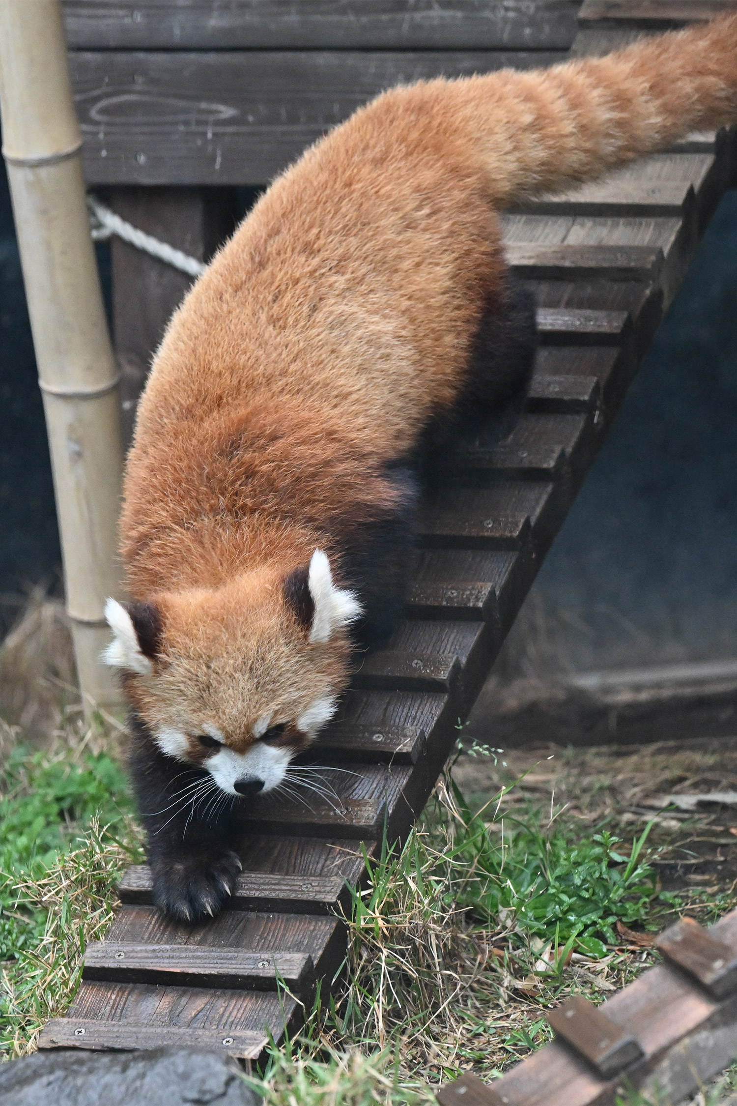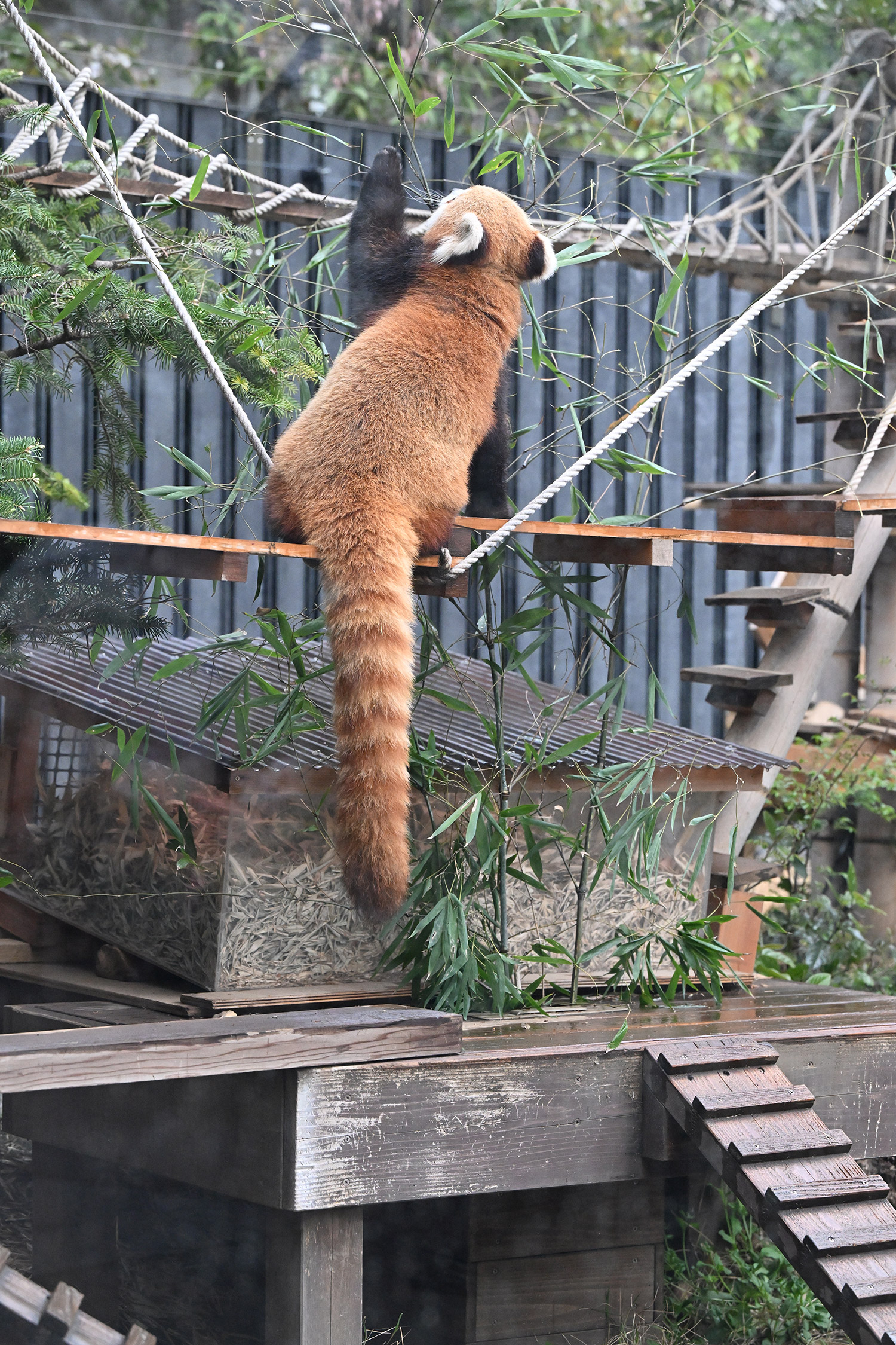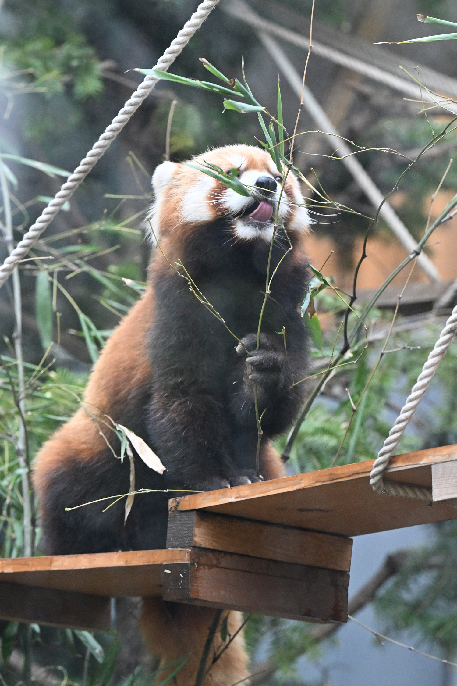 うじ様!小雨降る中ありがとうございます!赤茶の毛並み しっぽのしましま お顔や体の絶妙な色分けもcharming💕「.立ち食い」に笑♪しっぽの表情もcute💓ぷりぷりの時パンダはしっぽup⤴︎レッサーはdown⤵︎定番かな?まだ知らないことばかり…これからもお写真から学ばせてください!今日も幸せを分けてくださり感謝です‼️