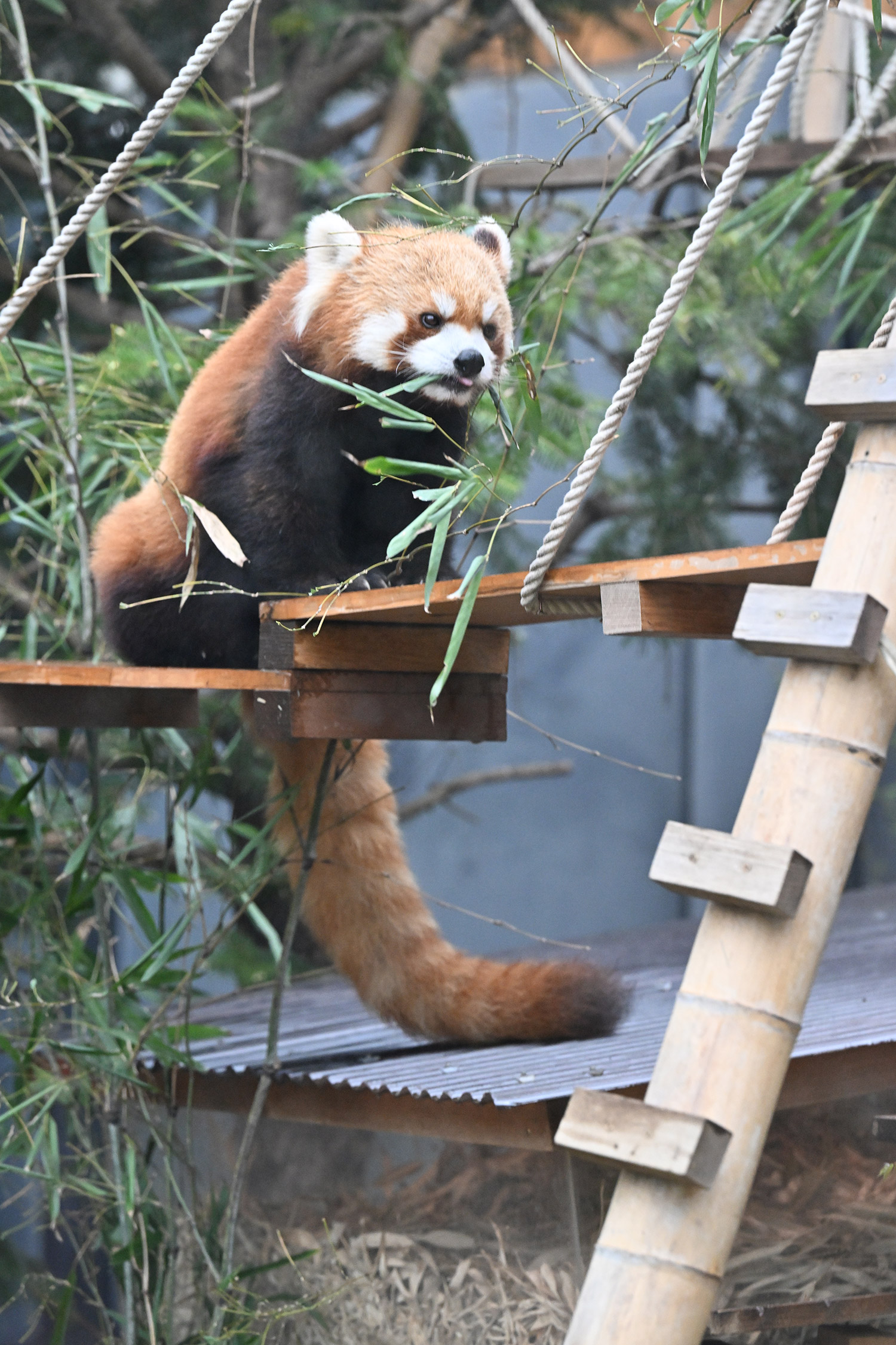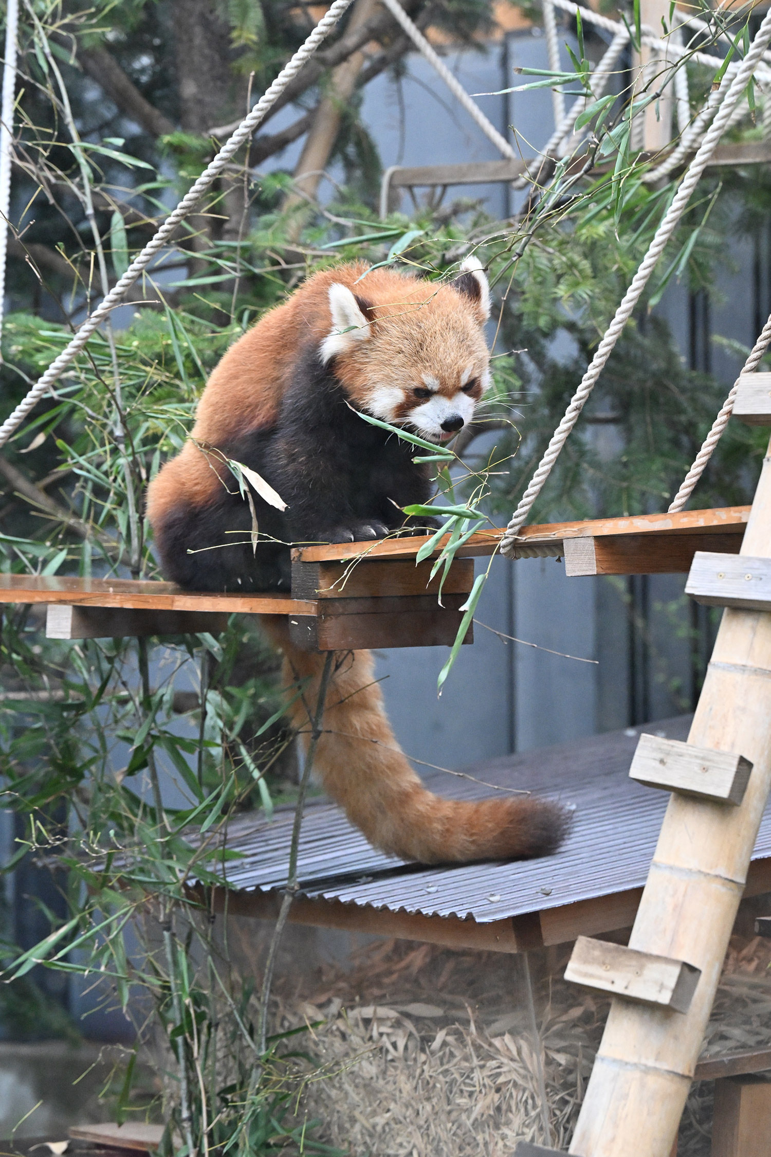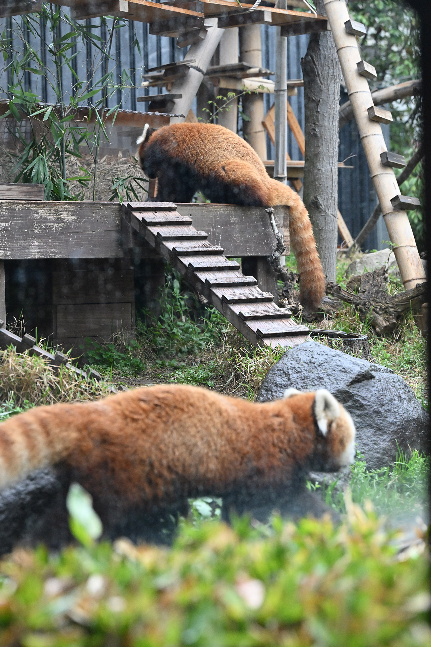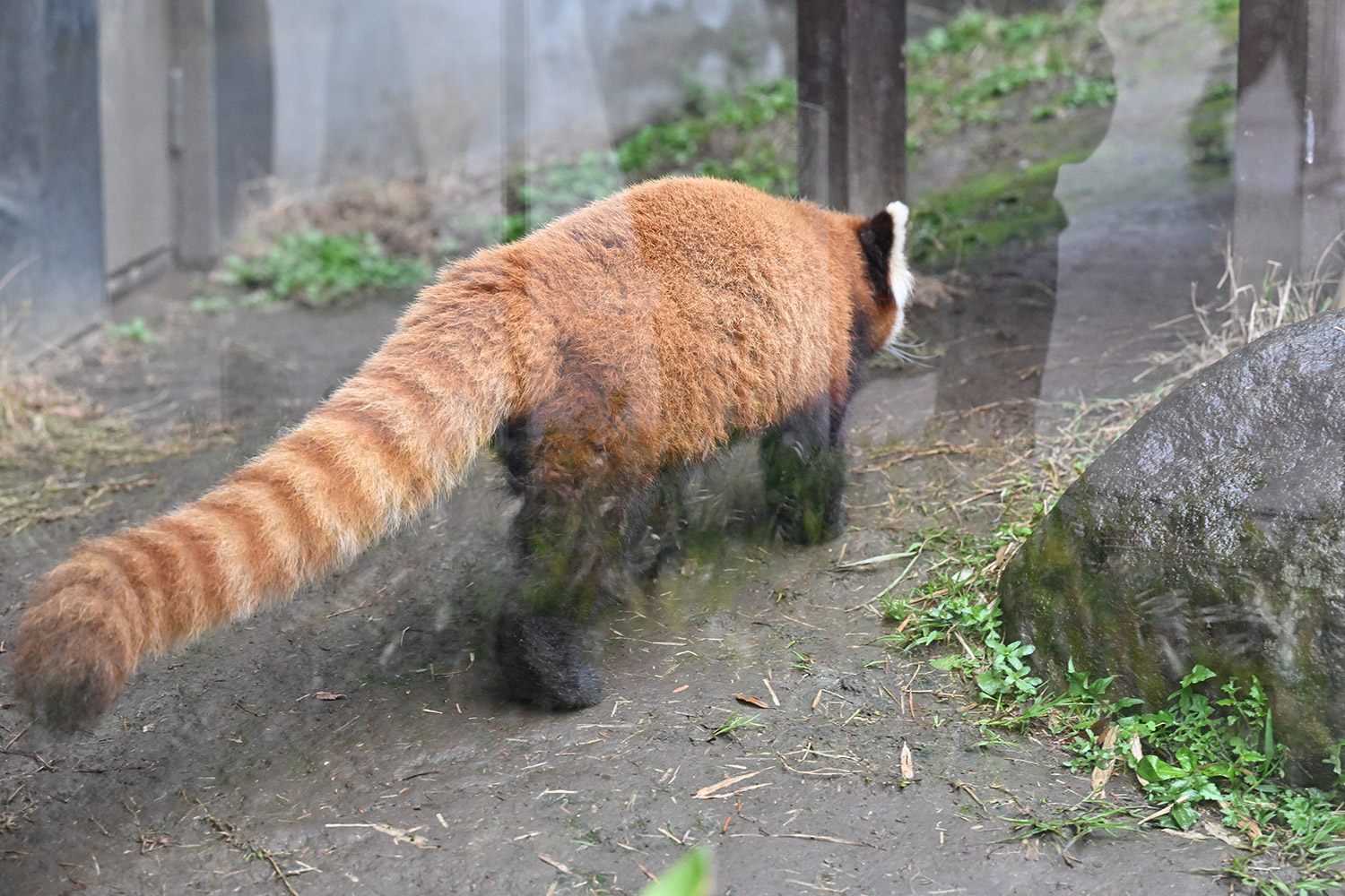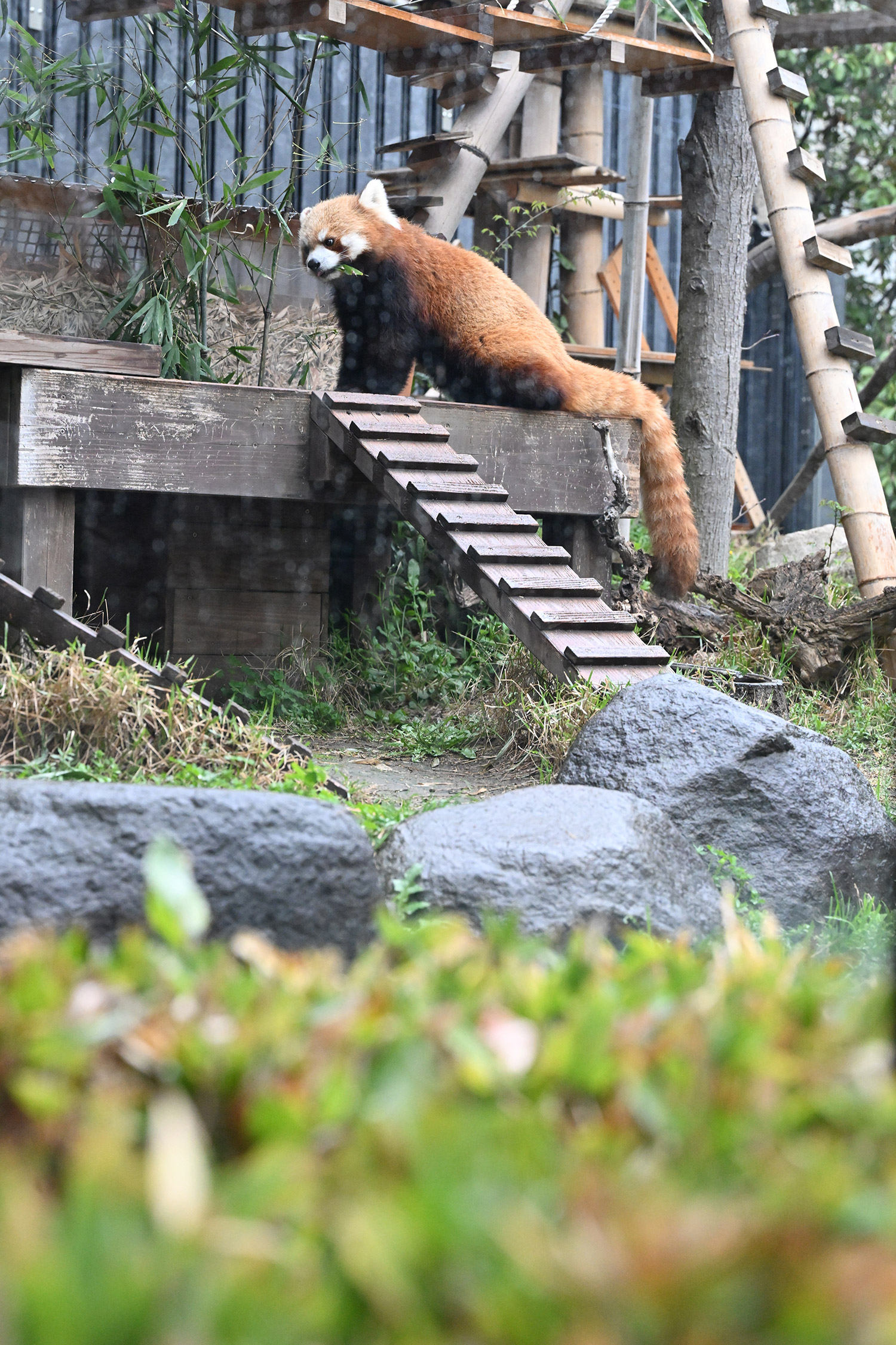 うじ様!小雨降る中ありがとうございます!赤茶の毛並み しっぽのしましま お顔や体の絶妙な色分けもcharming💕「.立ち食い」に笑♪しっぽの表情もcute💓ぷりぷりの時パンダはしっぽup⤴︎レッサーはdown⤵︎定番かな?まだ知らないことばかり…これからもお写真から学ばせてください!今日も幸せを分けてくださり感謝です‼️