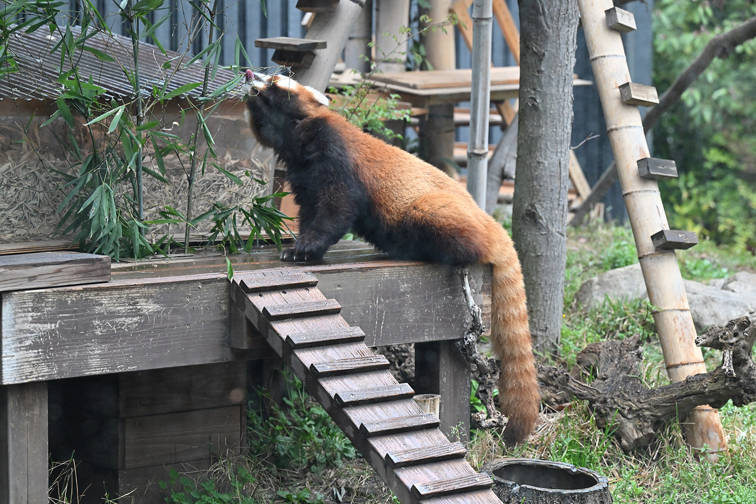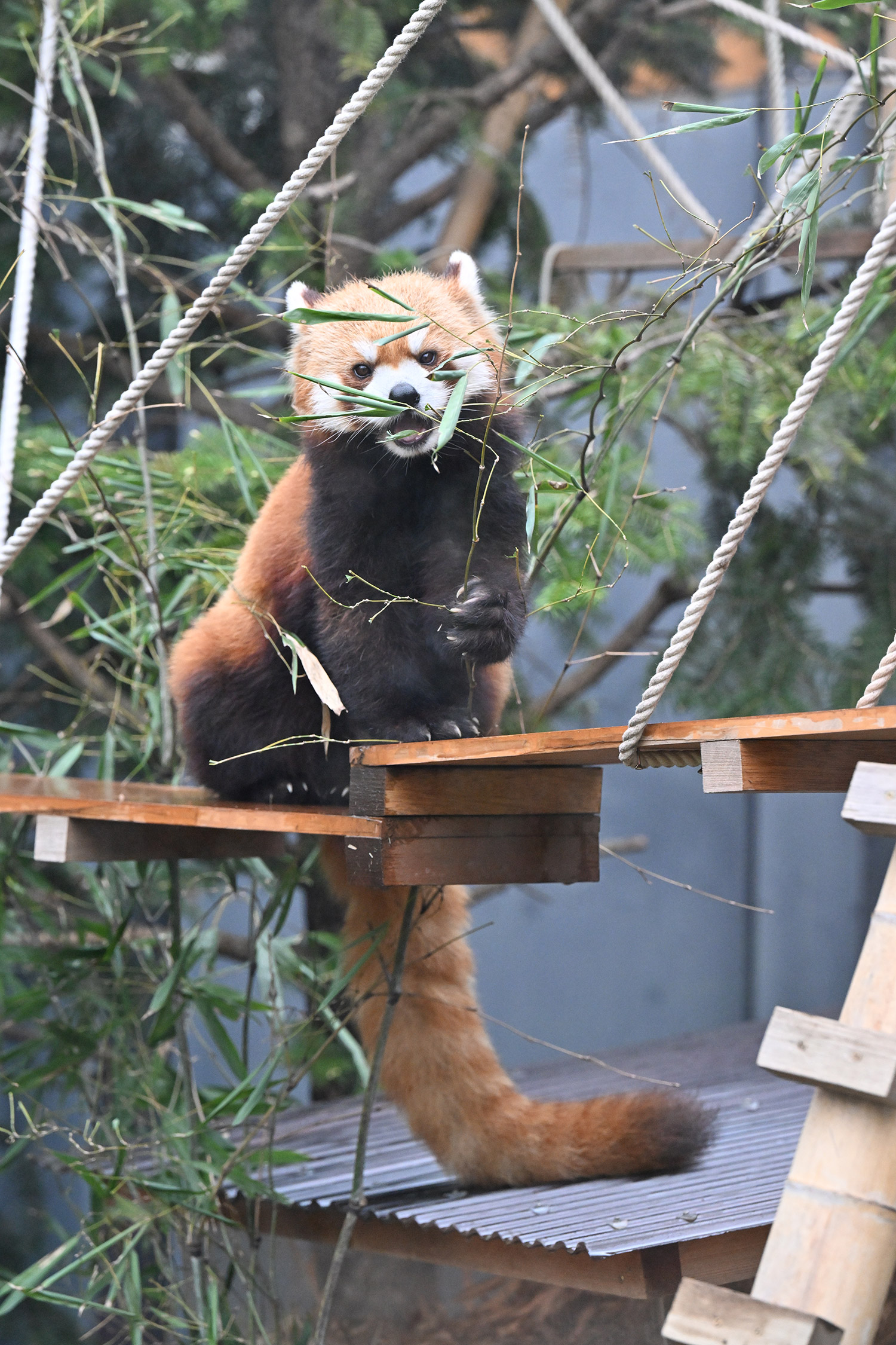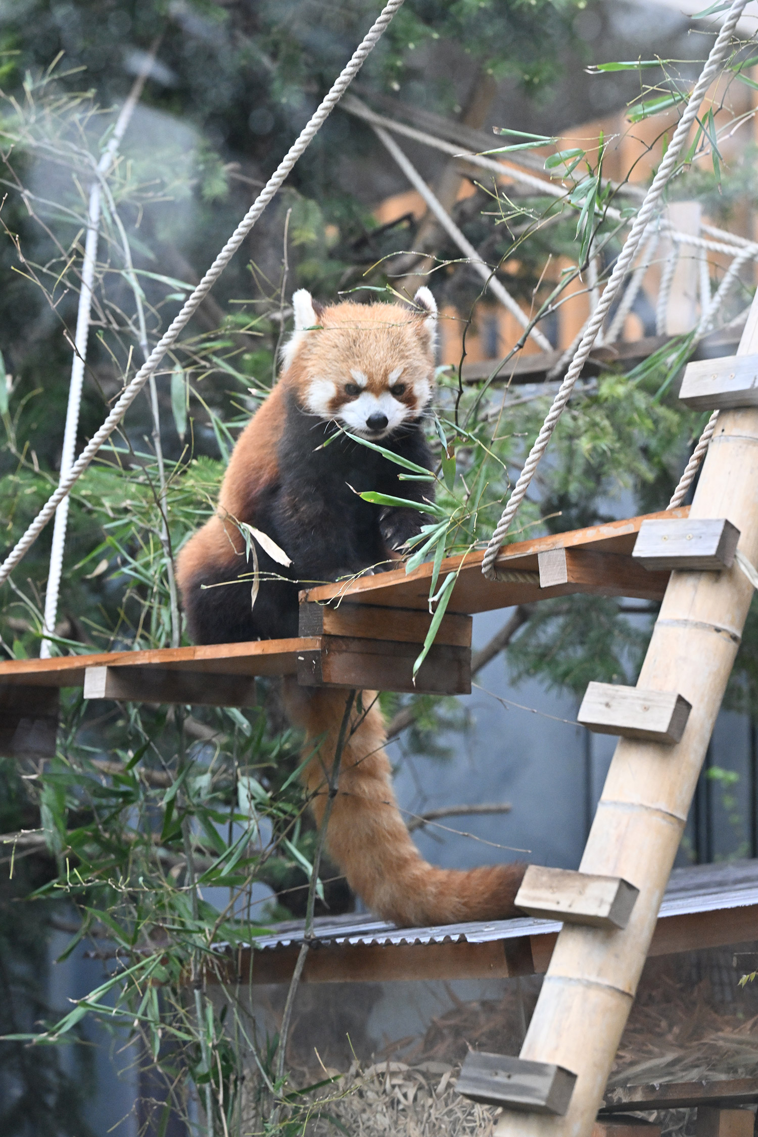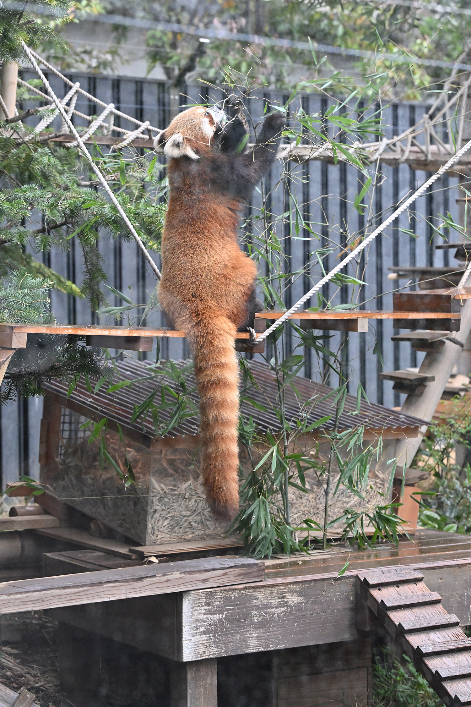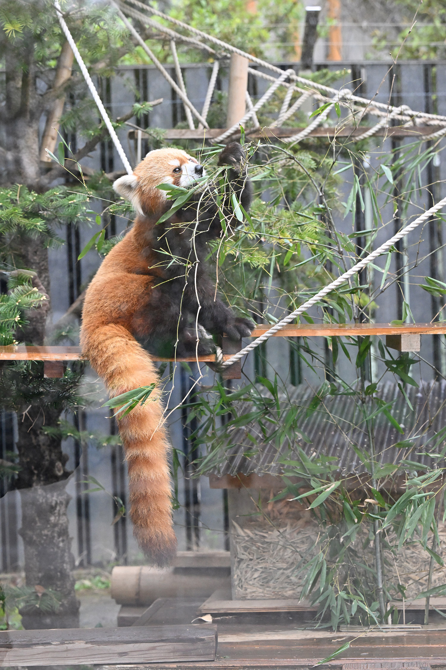 うじ様!小雨降る中ありがとうございます!赤茶の毛並み しっぽのしましま お顔や体の絶妙な色分けもcharming💕「.立ち食い」に笑♪しっぽの表情もcute💓ぷりぷりの時パンダはしっぽup⤴︎レッサーはdown⤵︎定番かな?まだ知らないことばかり…これからもお写真から学ばせてください!今日も幸せを分けてくださり感謝です‼️