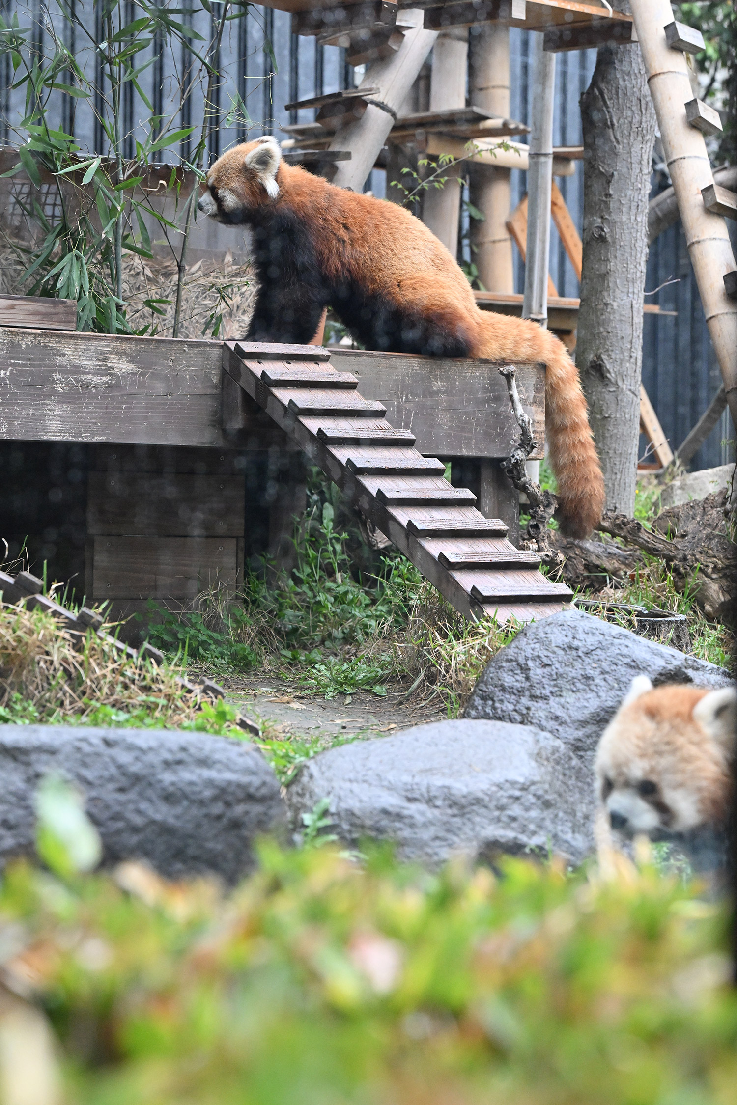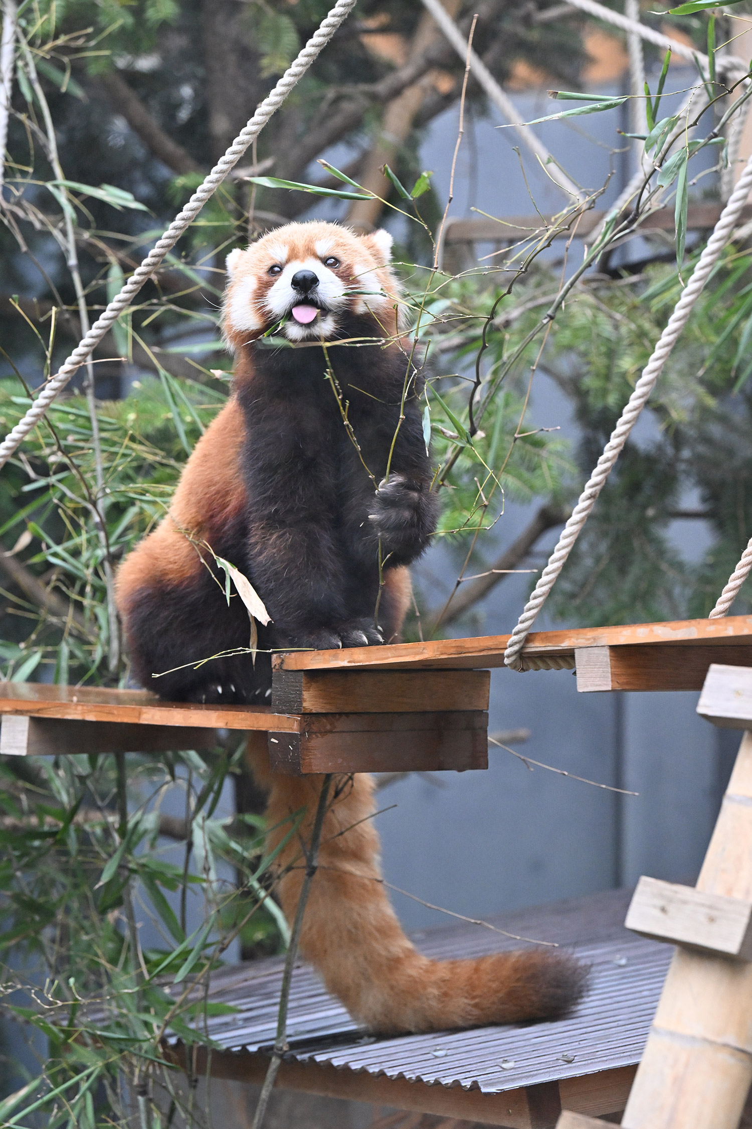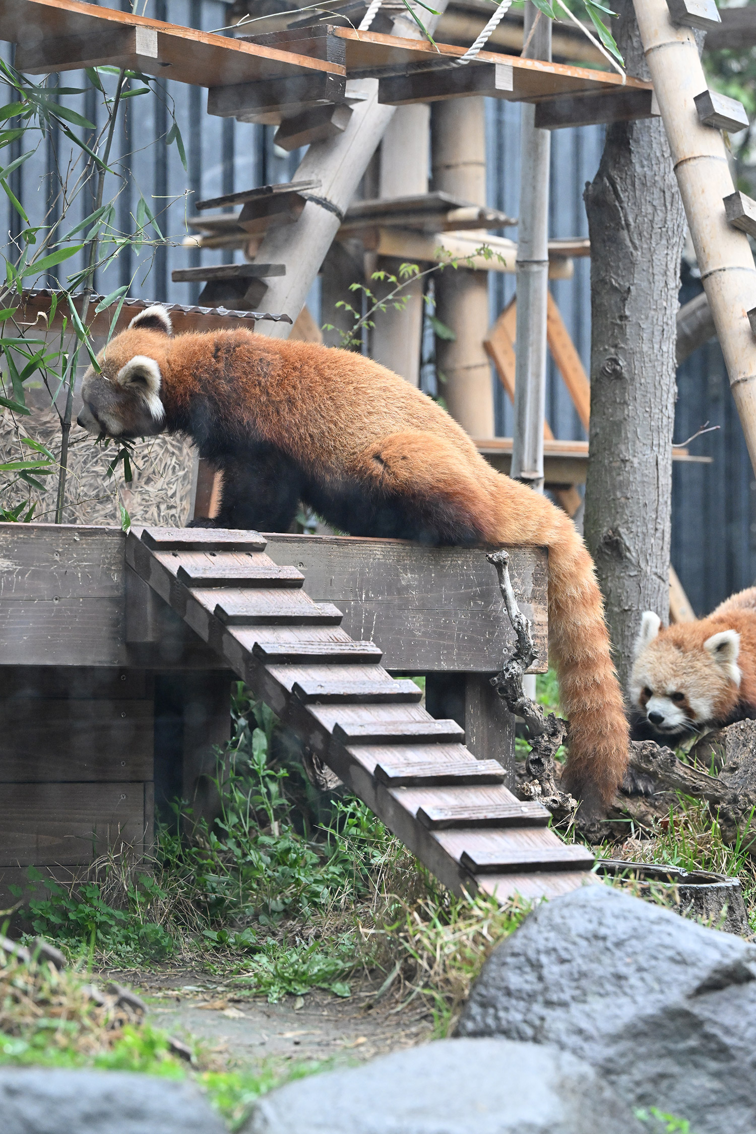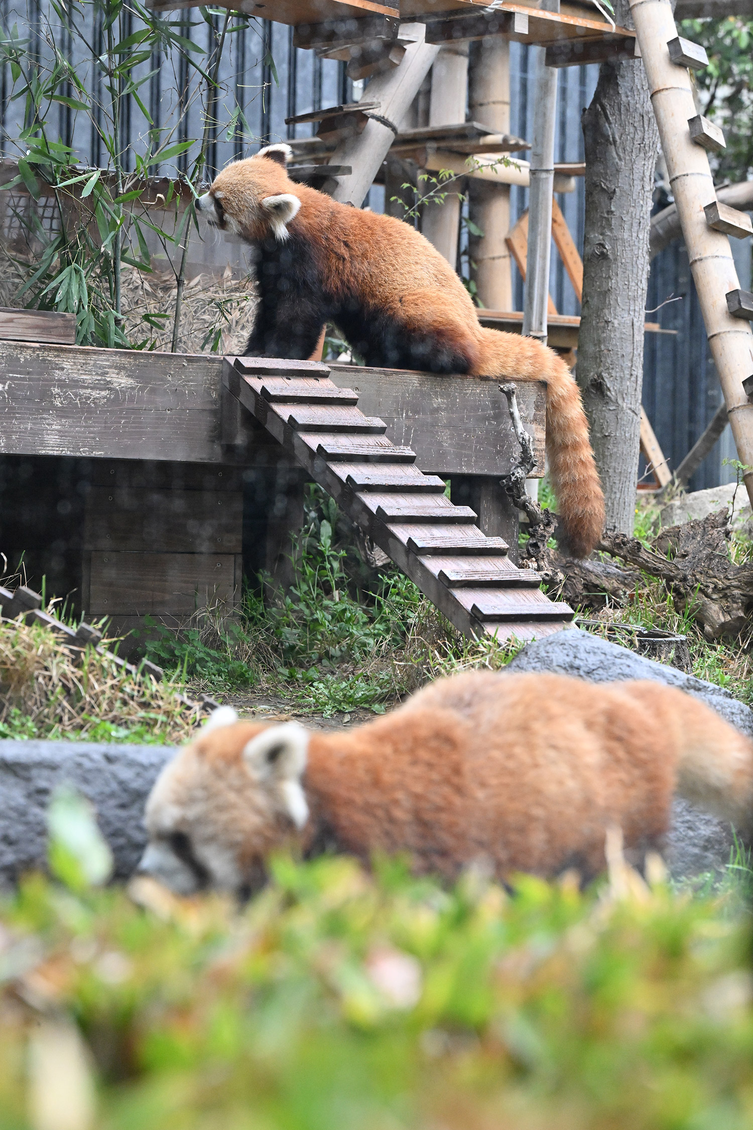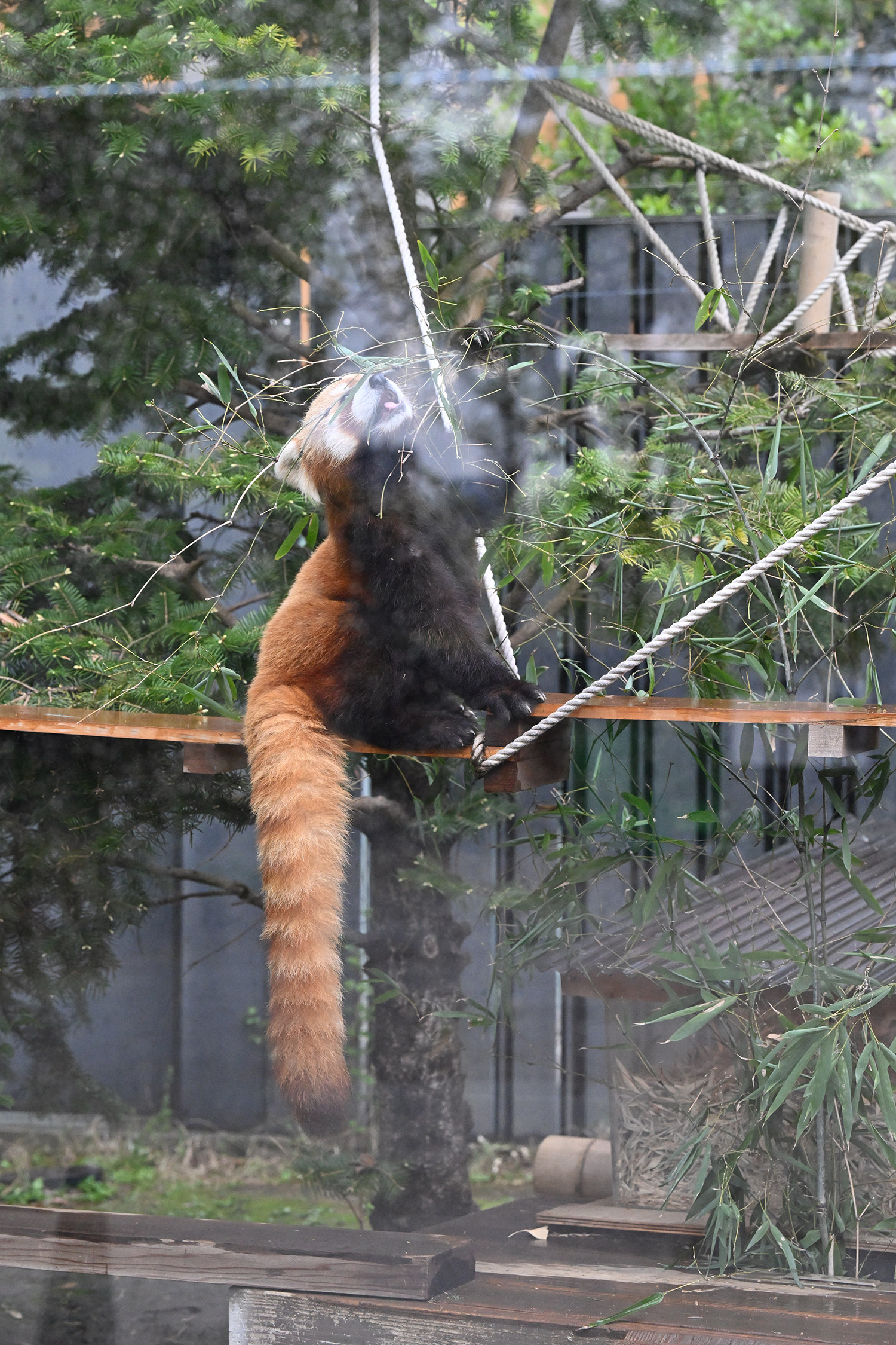 うじ様!小雨降る中ありがとうございます!赤茶の毛並み しっぽのしましま お顔や体の絶妙な色分けもcharming💕「.立ち食い」に笑♪しっぽの表情もcute💓ぷりぷりの時パンダはしっぽup⤴︎レッサーはdown⤵︎定番かな?まだ知らないことばかり…これからもお写真から学ばせてください!今日も幸せを分けてくださり感謝です‼️