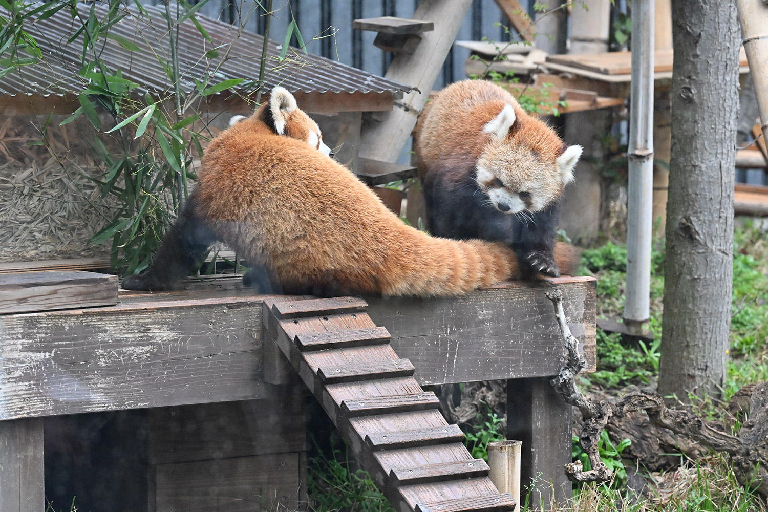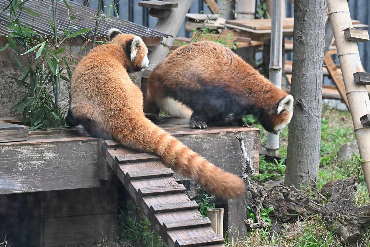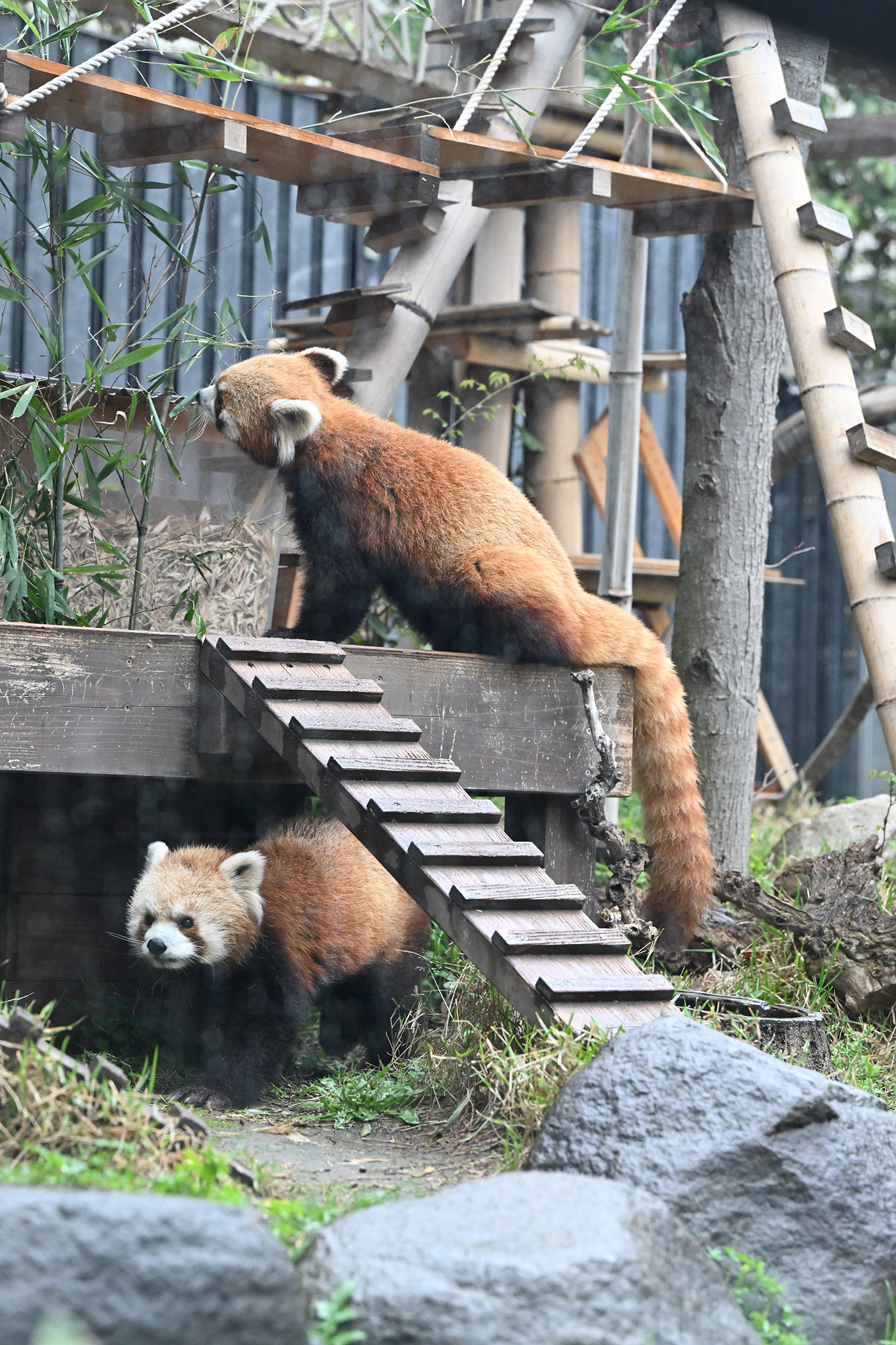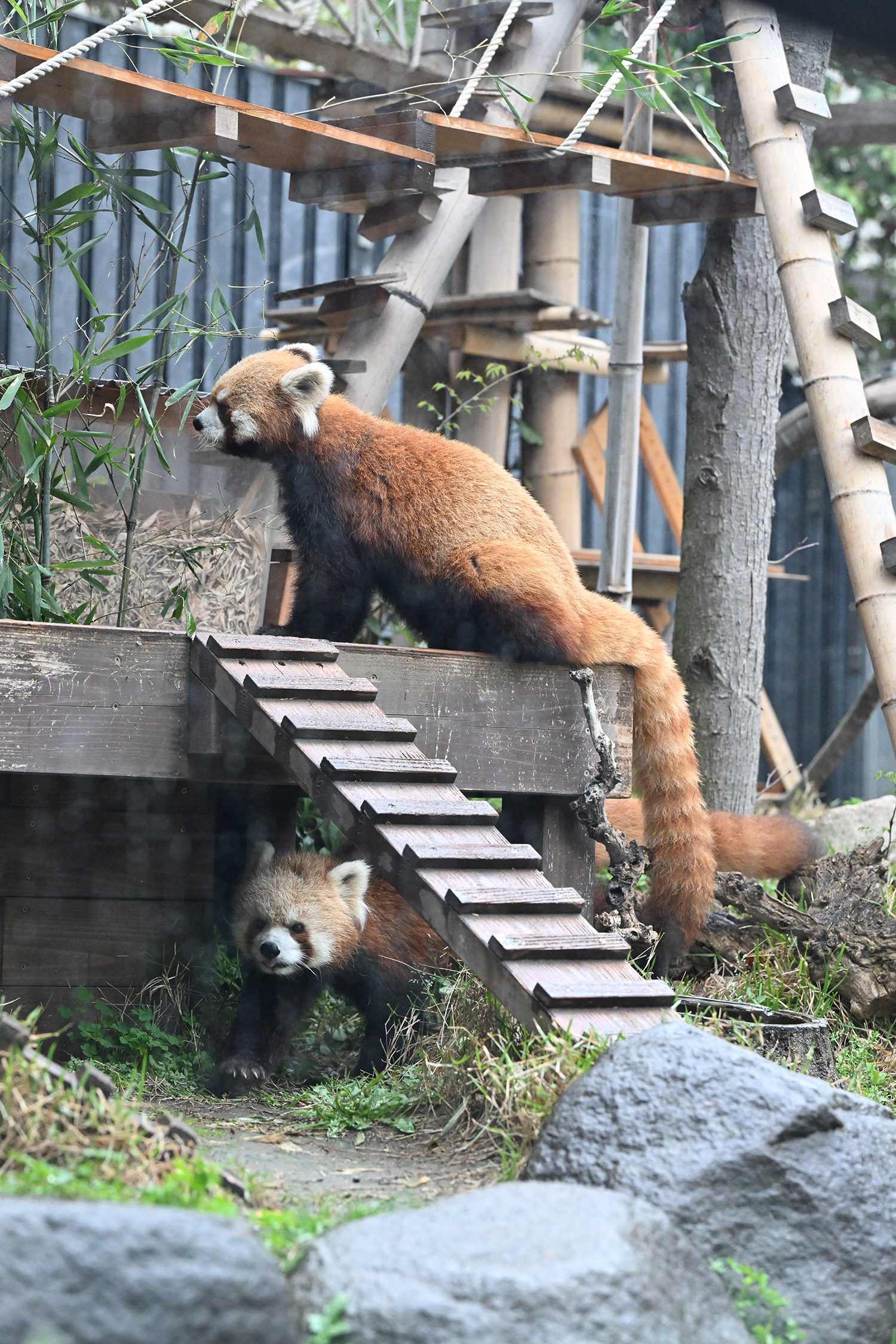 うじ様!小雨降る中ありがとうございます!赤茶の毛並み しっぽのしましま お顔や体の絶妙な色分けもcharming💕「.立ち食い」に笑♪しっぽの表情もcute💓ぷりぷりの時パンダはしっぽup⤴︎レッサーはdown⤵︎定番かな?まだ知らないことばかり…これからもお写真から学ばせてください!今日も幸せを分けてくださり感謝です‼️