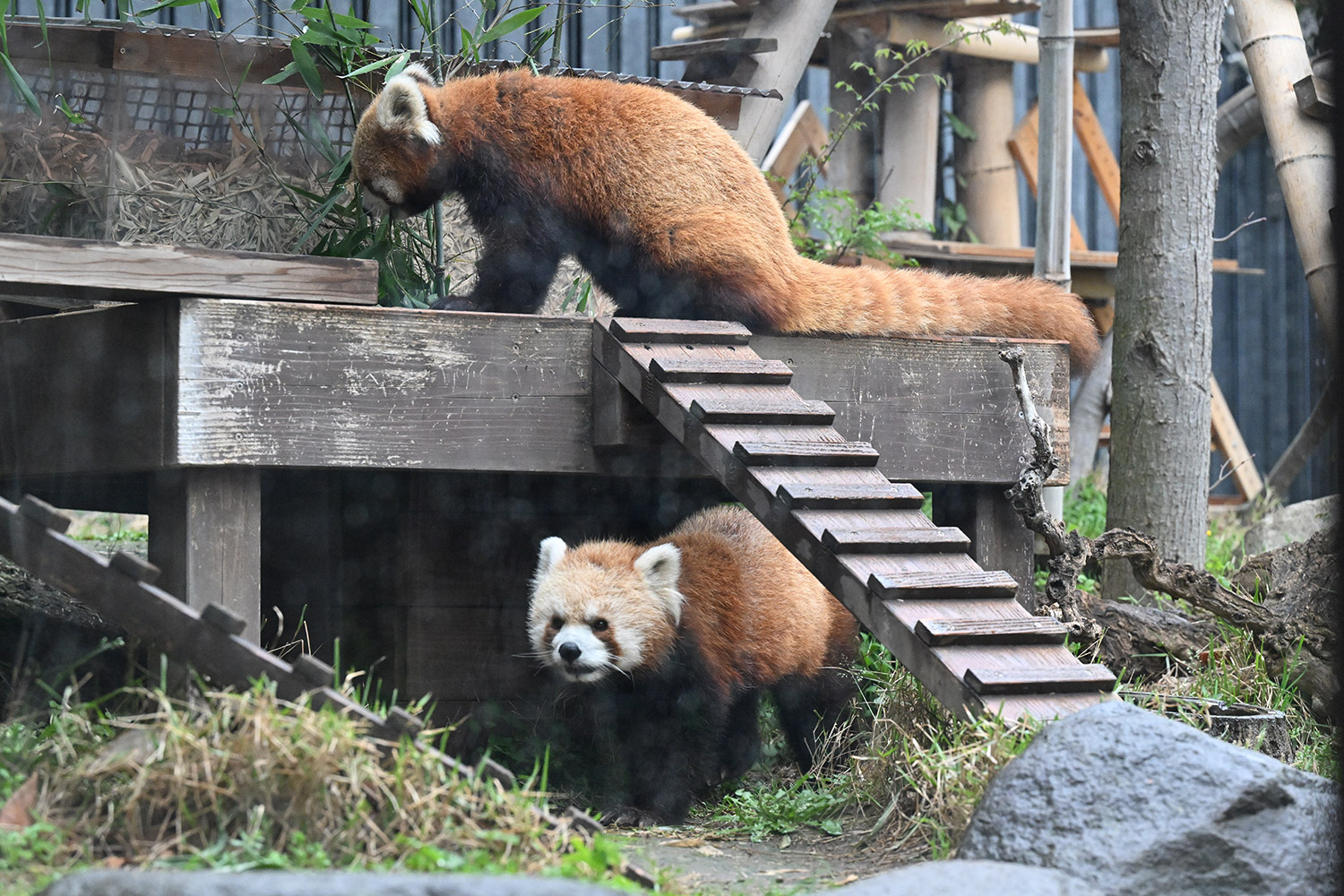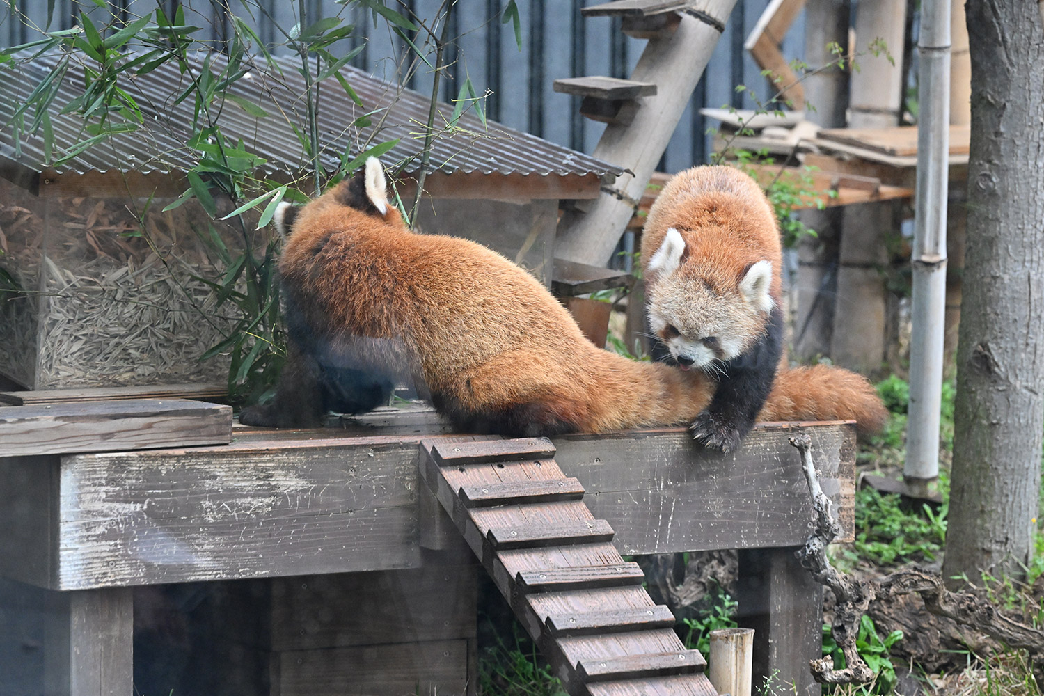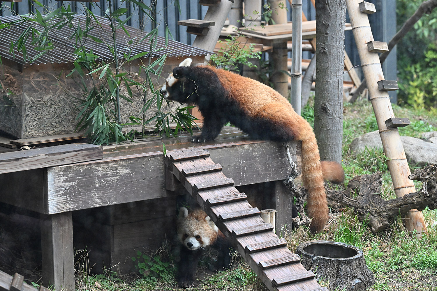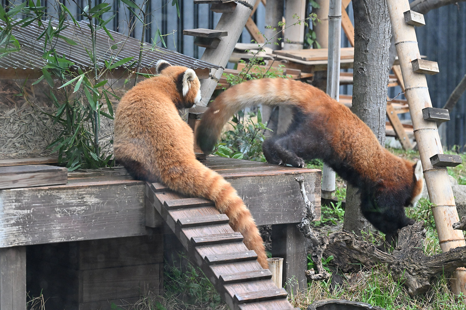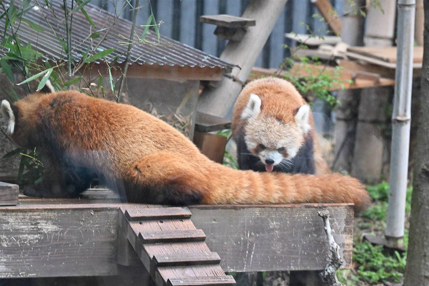 うじ様!小雨降る中ありがとうございます!赤茶の毛並み しっぽのしましま お顔や体の絶妙な色分けもcharming💕「.立ち食い」に笑♪しっぽの表情もcute💓ぷりぷりの時パンダはしっぽup⤴︎レッサーはdown⤵︎定番かな?まだ知らないことばかり…これからもお写真から学ばせてください!今日も幸せを分けてくださり感謝です‼️