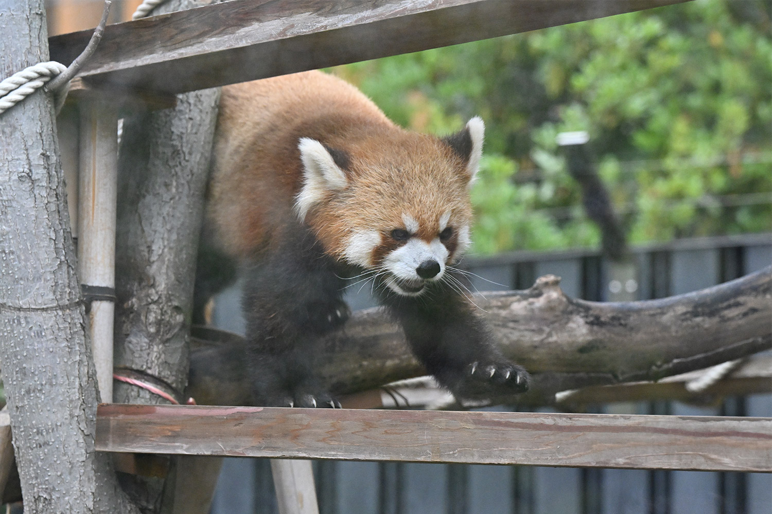パンダ氏🐼様 皆様こんばんは うわぁ~ カリンちゃんの板から90度😍 左手で細い枝を持っている感じ そして 画面右に見切れる感じのカリンちゃん🤣 素敵ですね~✨まるで レサパンのスローモーションの世界にいるみたいです 今日は私も園に行き 午前中は 観覧している人が私しかいない時もあり 雨予報☔の動物園は 足元も濡れるけれど いいな♬と思いました そして何より嬉しかったのが 午後 ルカリンズの所へ再度行った時 氏様をお見かけできた事今年 初めて園でお会いでき とても嬉しかったです✨🍀 氏様=上野ファミリーに会えた気持ちでもあり とても元気になりました 素敵なお写真を本当にありがとうございます