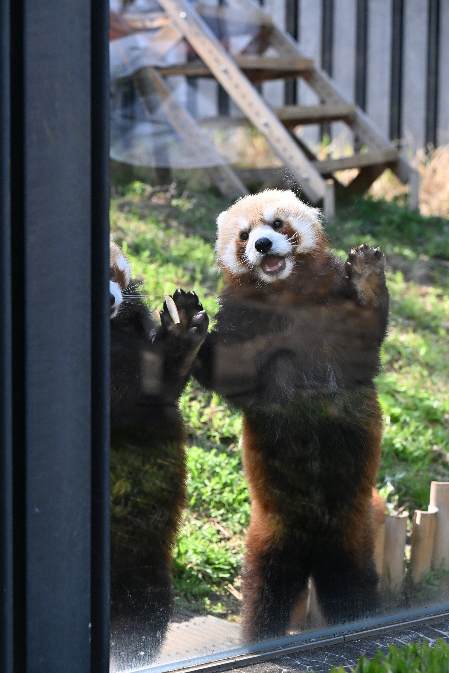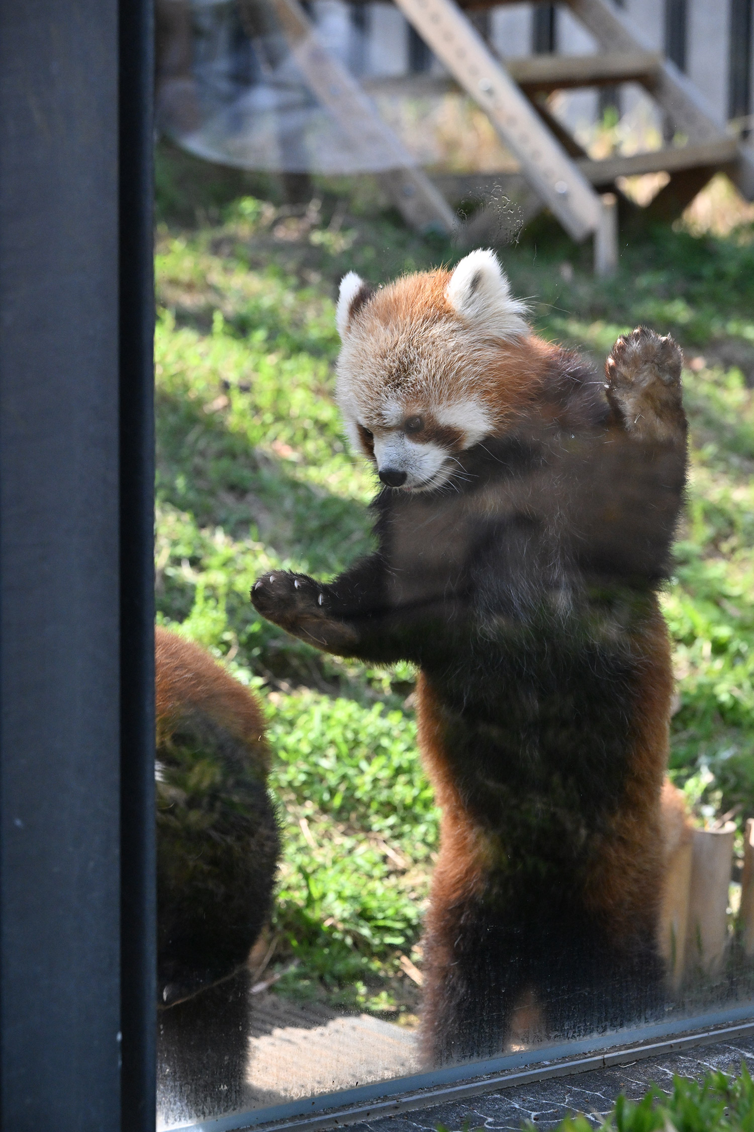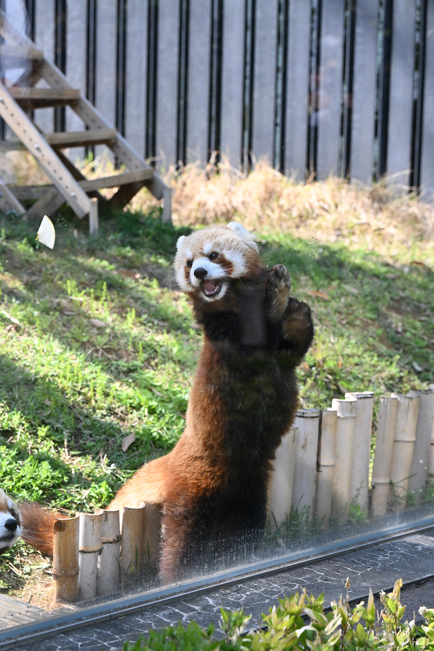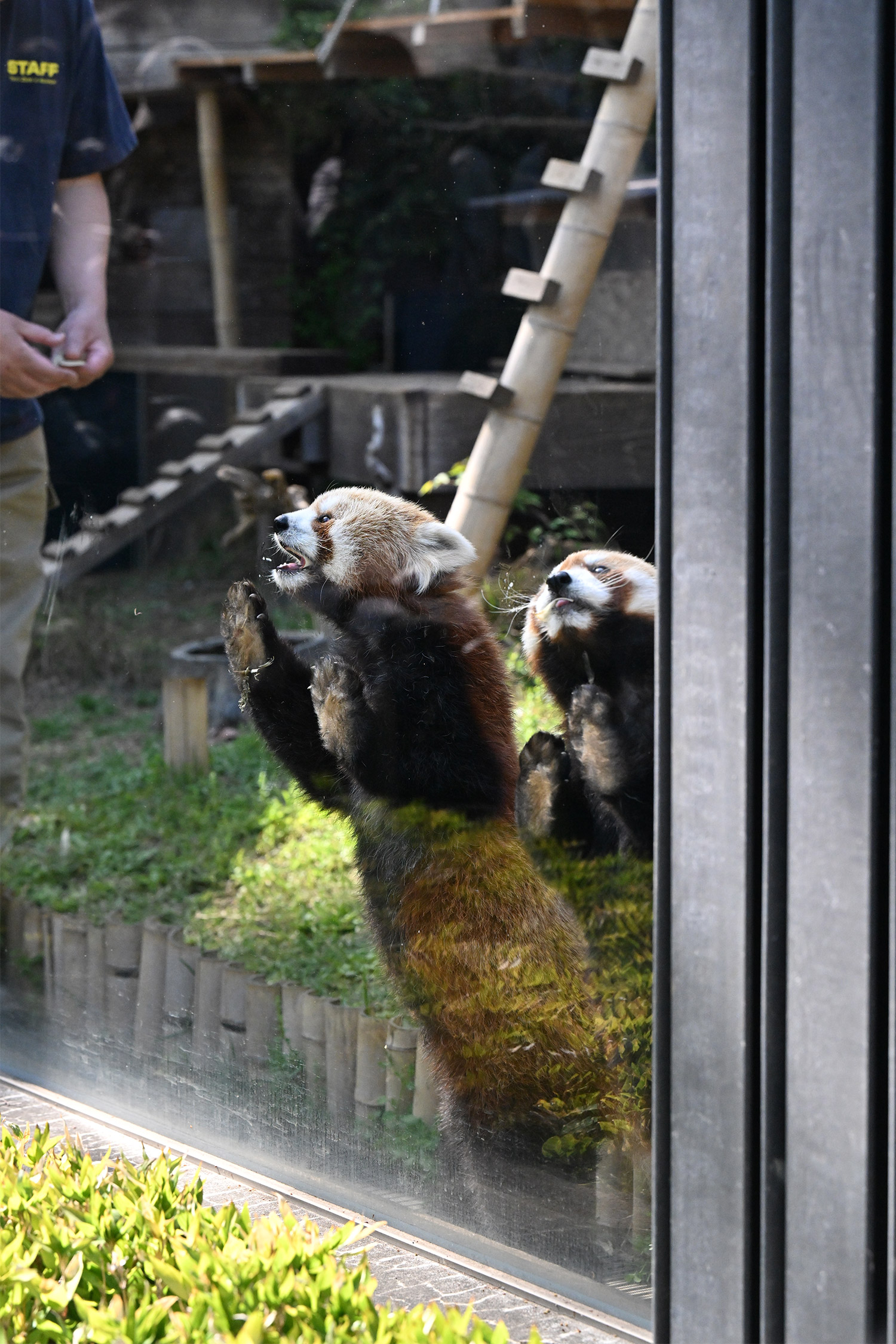 名前の投票でイロハに入れたので、嬉しさ倍増です😆 女の子のイロハちゃんはコブシ君よりおっとりしているように見えて、とっても可愛いかったです💕 レッサーパンダのところに行きましたが、おやつタイムが終わっていました😣 うじさまがいらしてましたが、お声かけをためらってしまいました😔 🐼舎の大庭が覗けるところがあったので、ちょっと覗いてみましたが、新しい吊り橋のような物が設置されていて驚きでした。何で〜?と心の中で絶叫! レッサーパンダを移す計画なのでしょうか? 気になって仕方がありません。