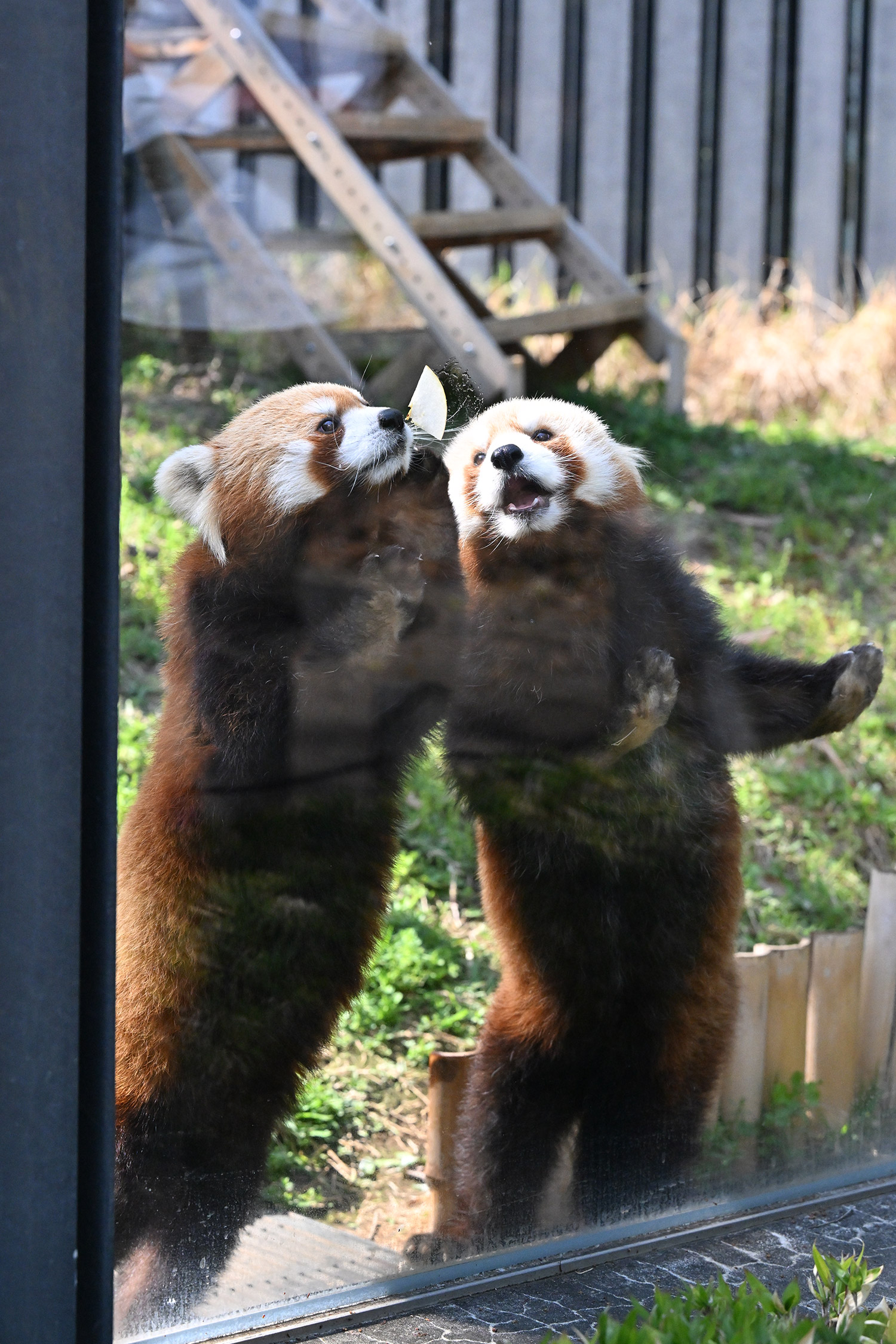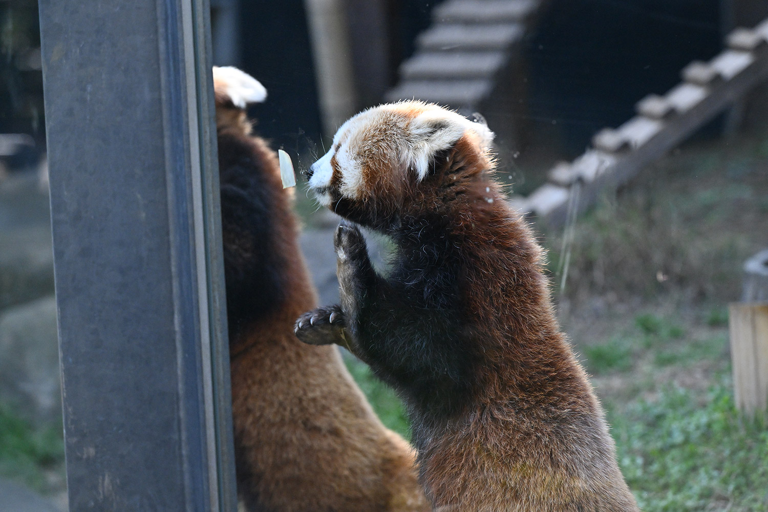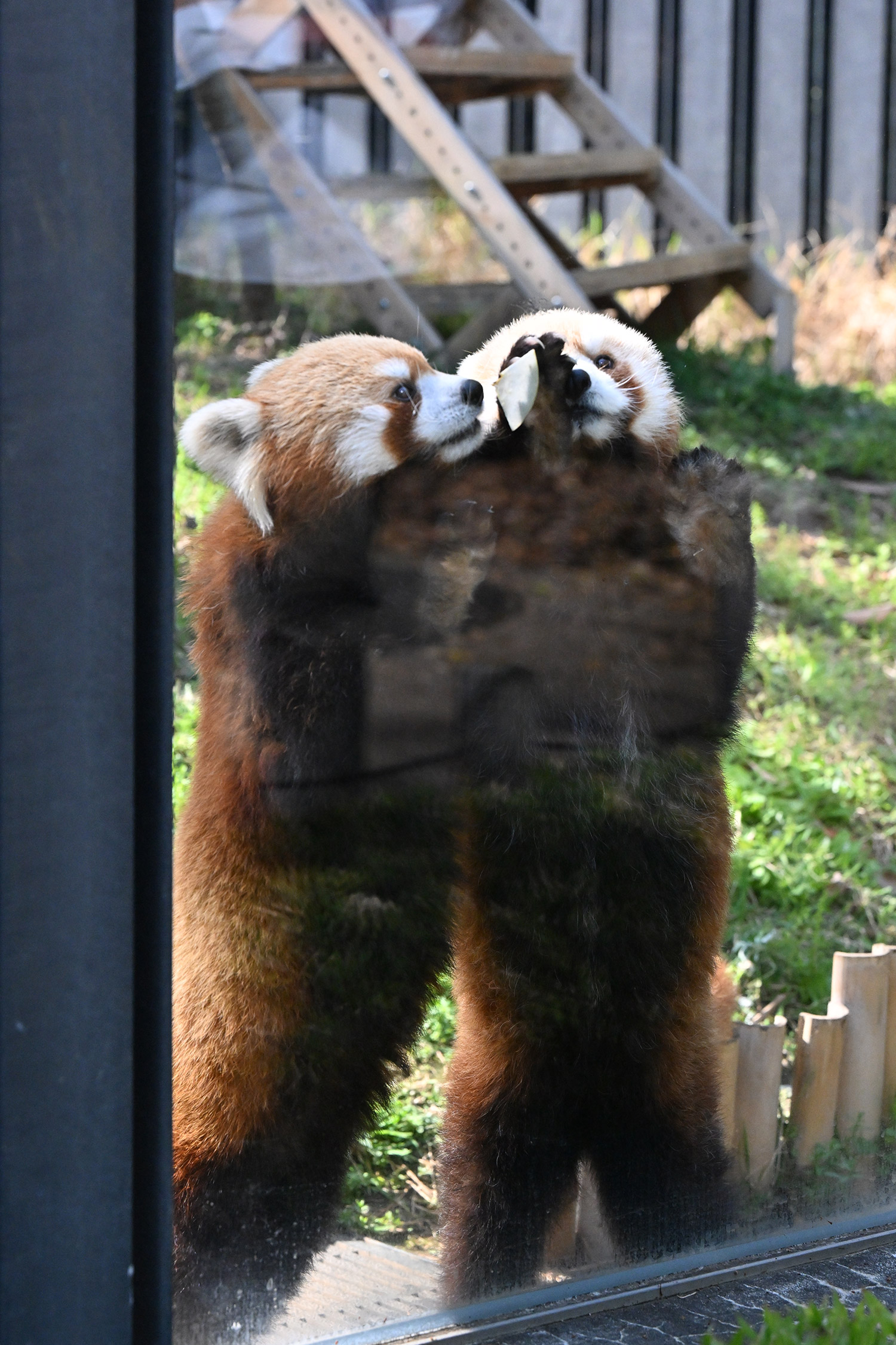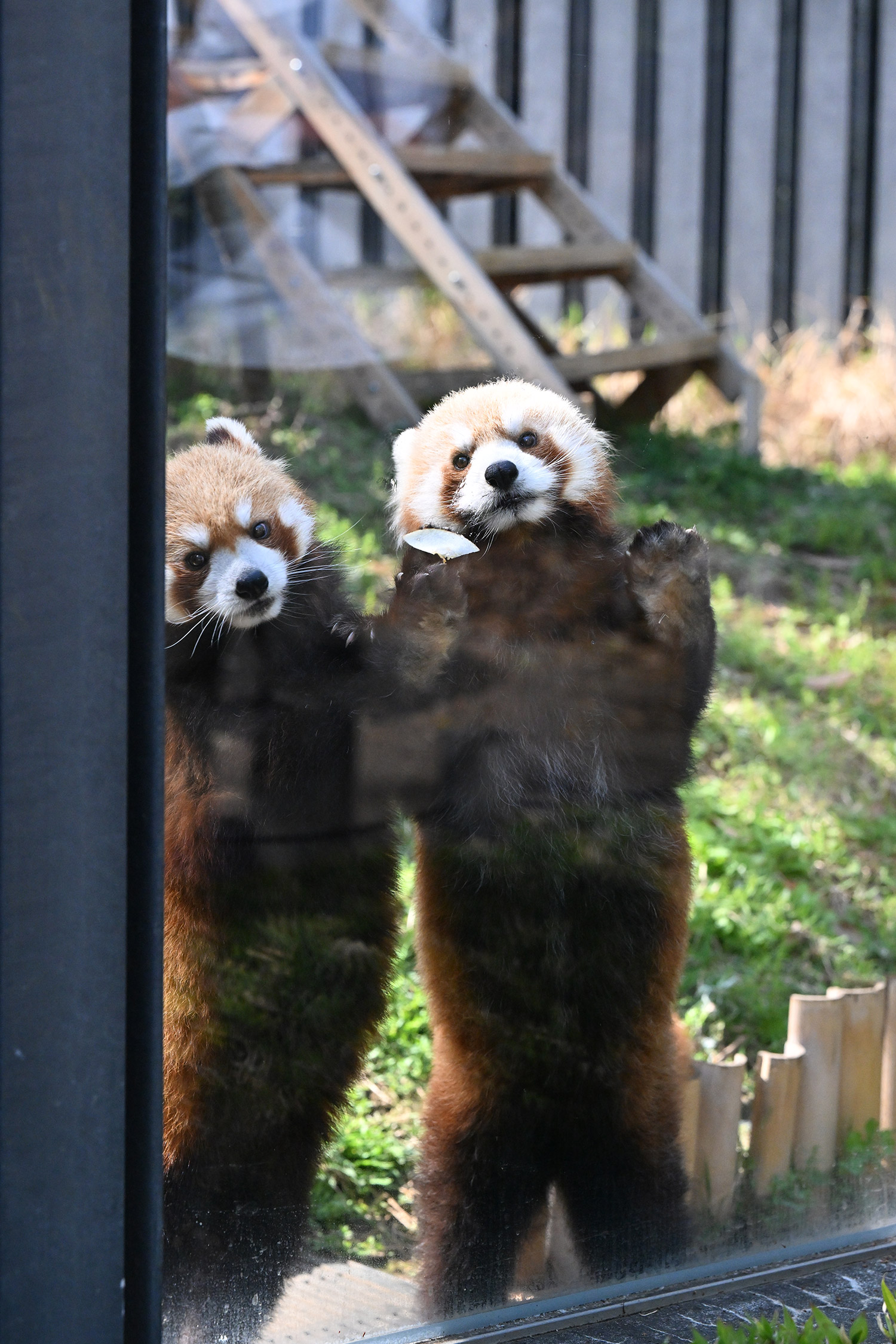 名前の投票でイロハに入れたので、嬉しさ倍増です😆 女の子のイロハちゃんはコブシ君よりおっとりしているように見えて、とっても可愛いかったです💕 レッサーパンダのところに行きましたが、おやつタイムが終わっていました😣 うじさまがいらしてましたが、お声かけをためらってしまいました😔 🐼舎の大庭が覗けるところがあったので、ちょっと覗いてみましたが、新しい吊り橋のような物が設置されていて驚きでした。何で〜?と心の中で絶叫! レッサーパンダを移す計画なのでしょうか? 気になって仕方がありません。
