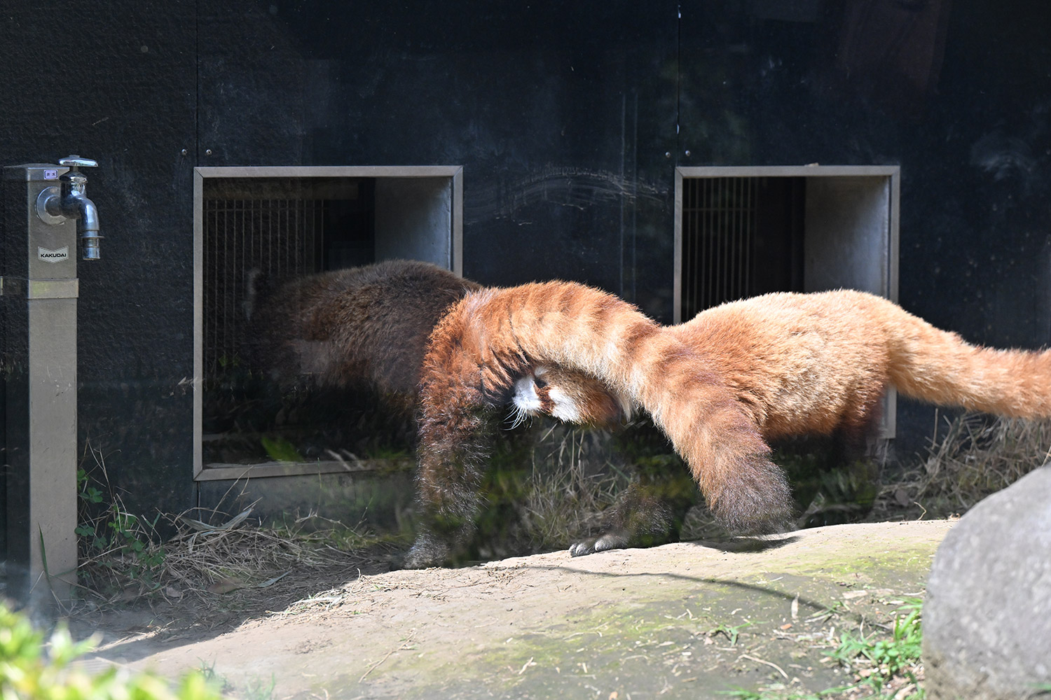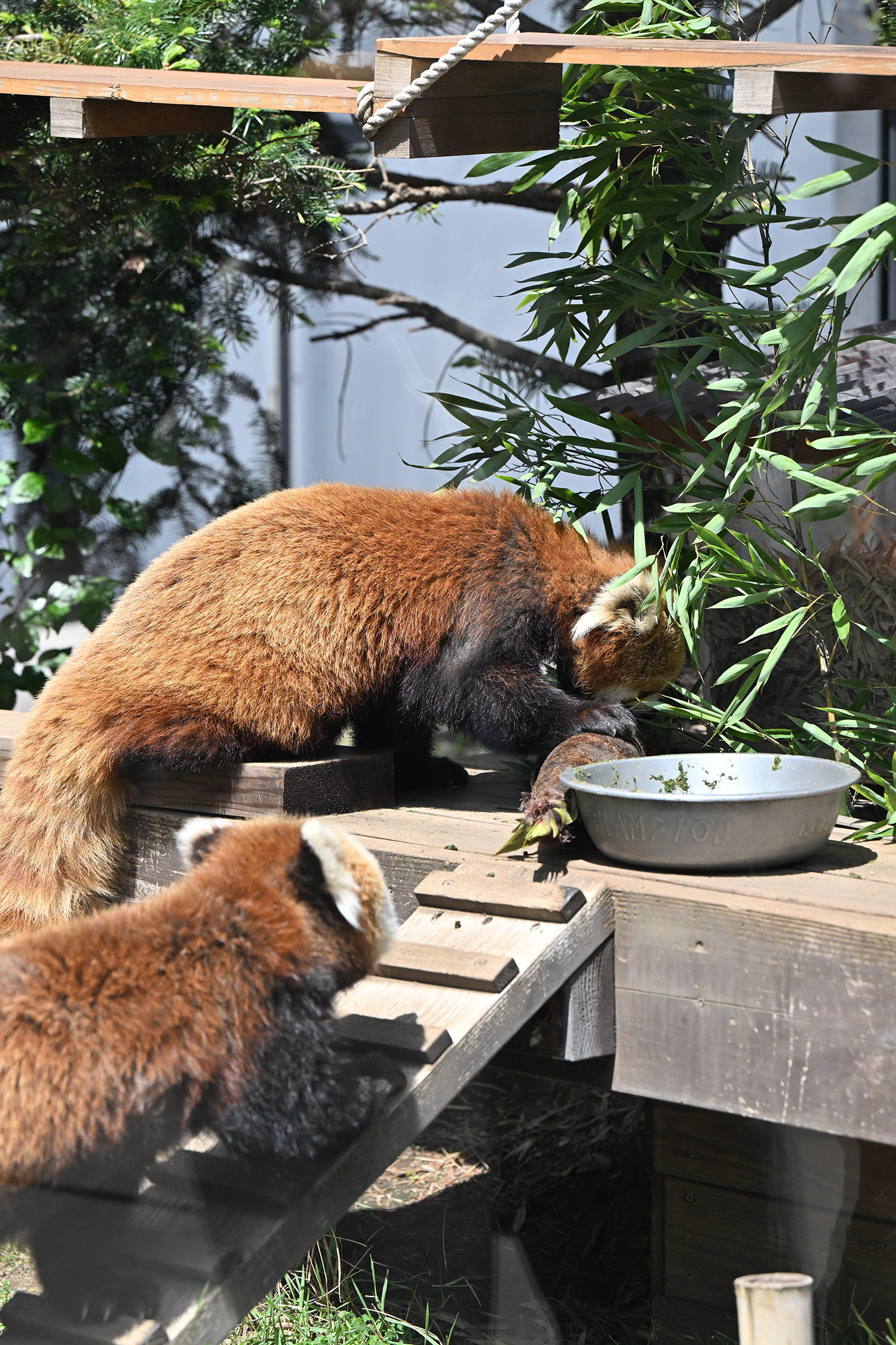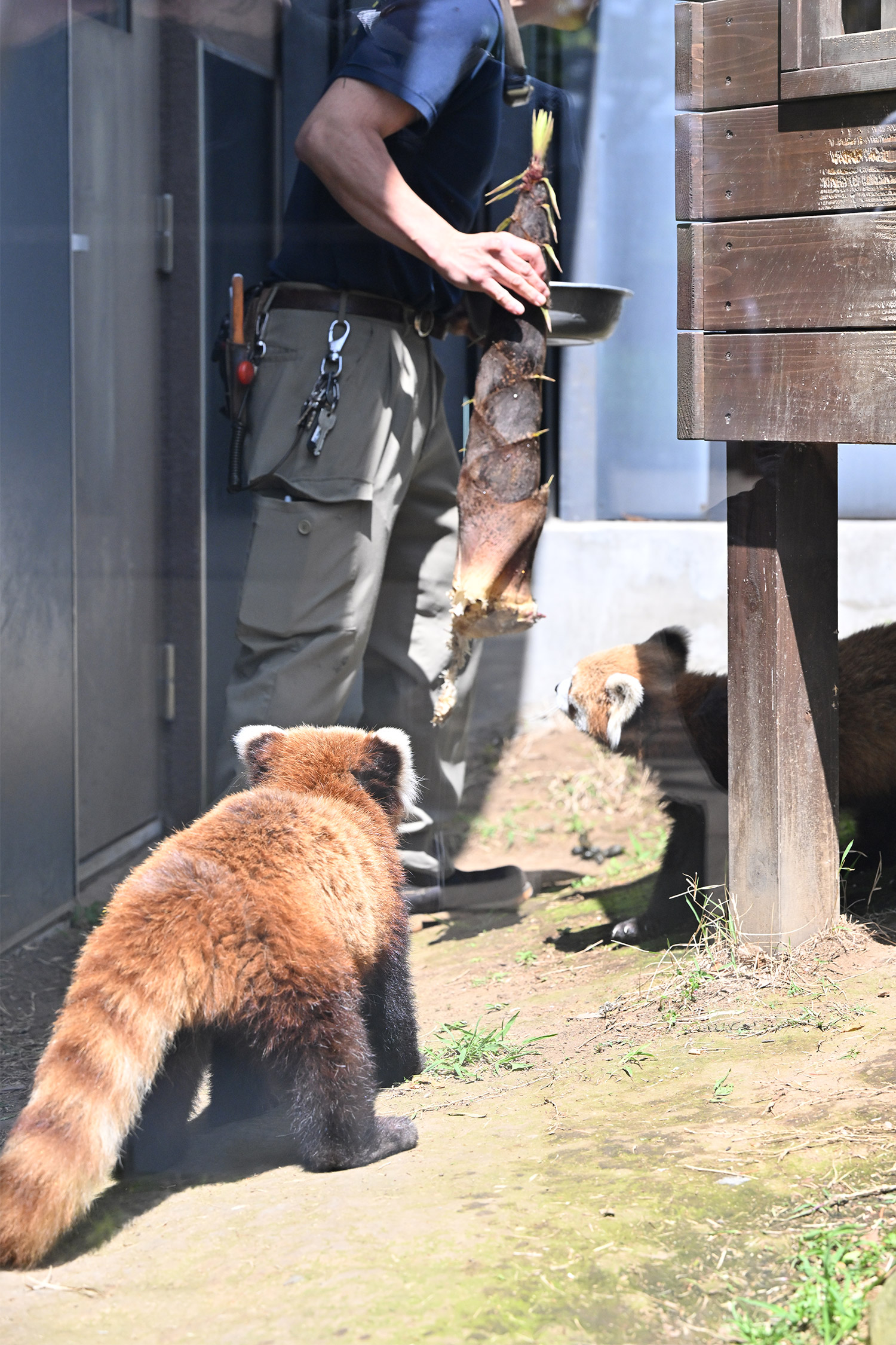 母のルルは、双子を同時に育てたと聞いているので、良浜方式で、ある程度成長してからの同時授乳だったのかと想像。賢い個体!