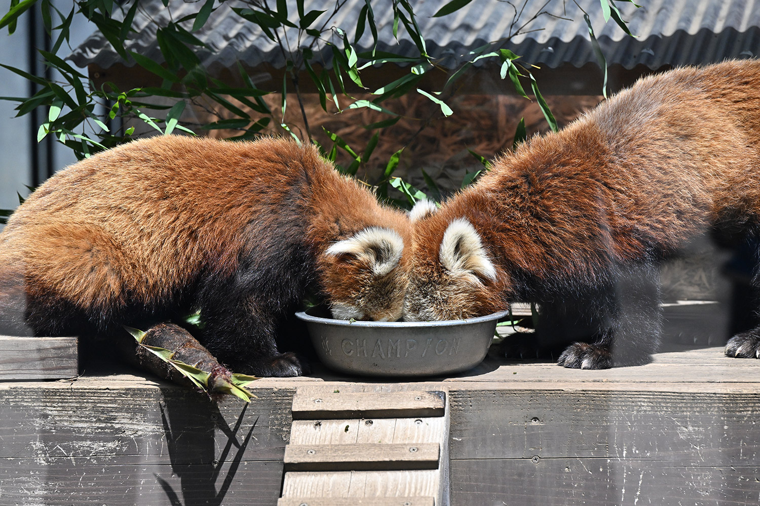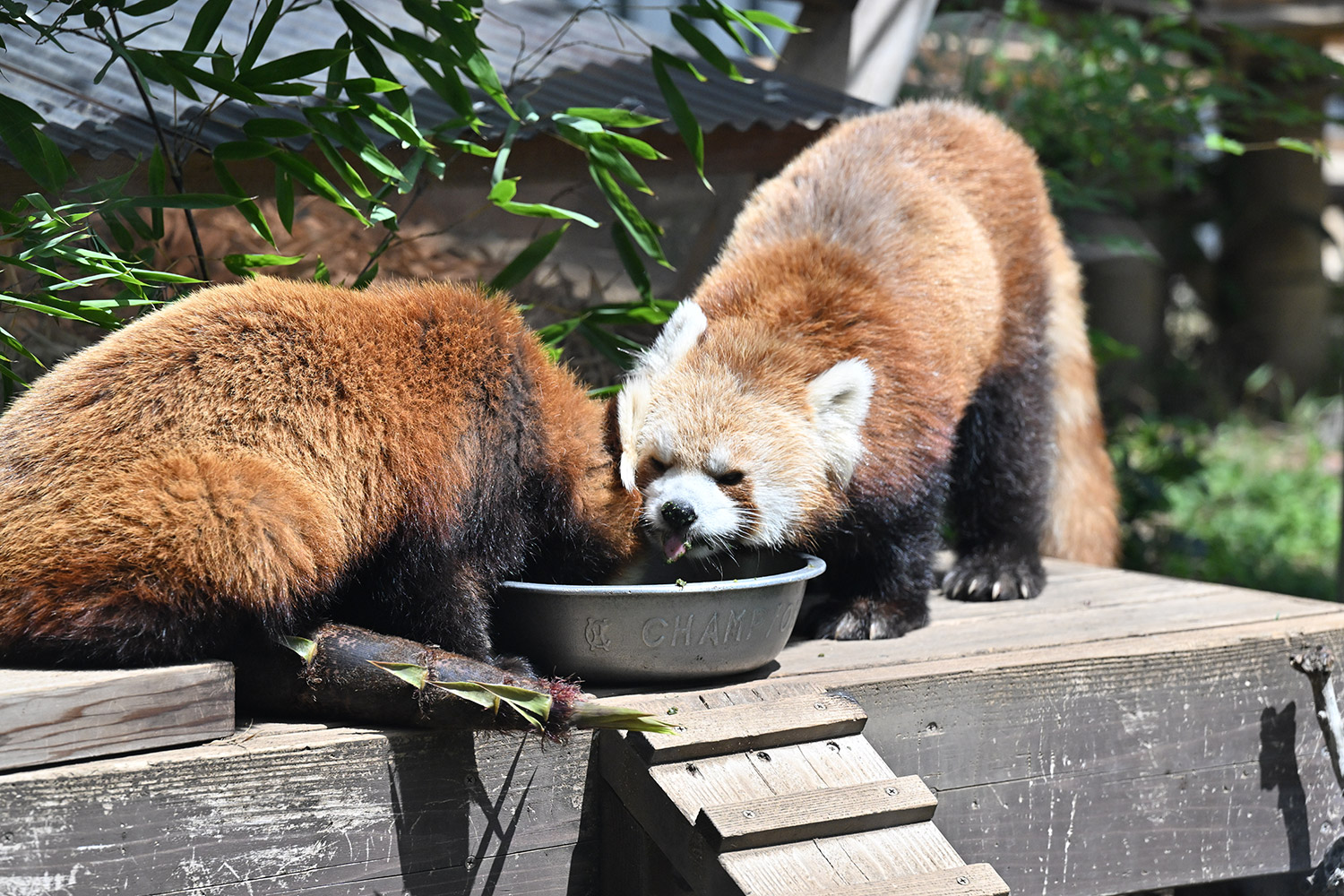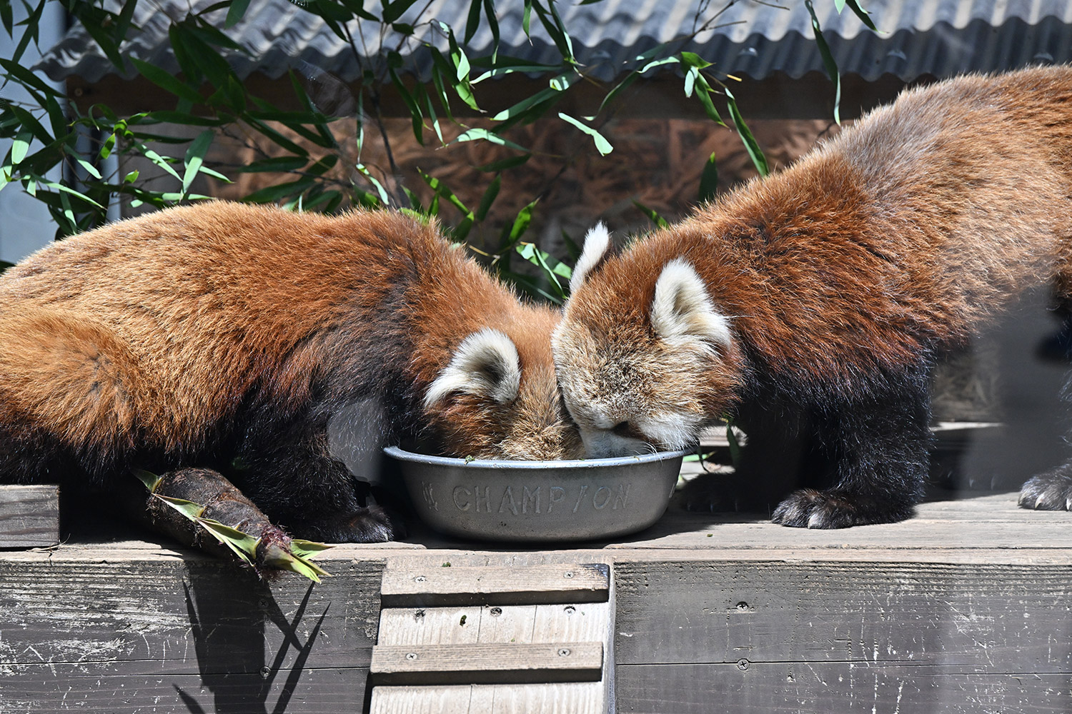 母のルルは、双子を同時に育てたと聞いているので、良浜方式で、ある程度成長してからの同時授乳だったのかと想像。賢い個体!