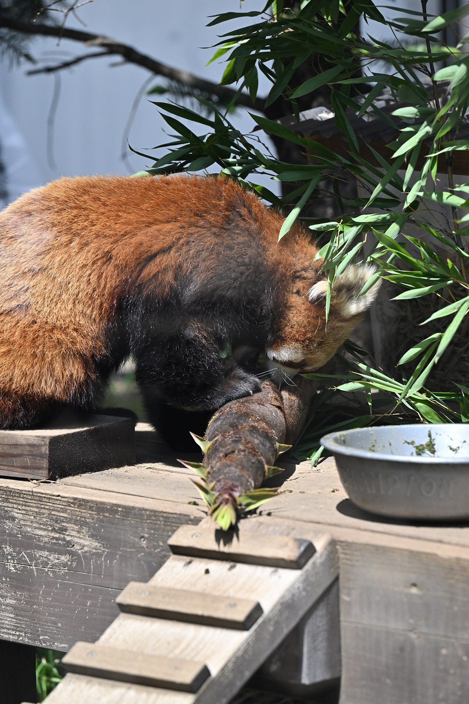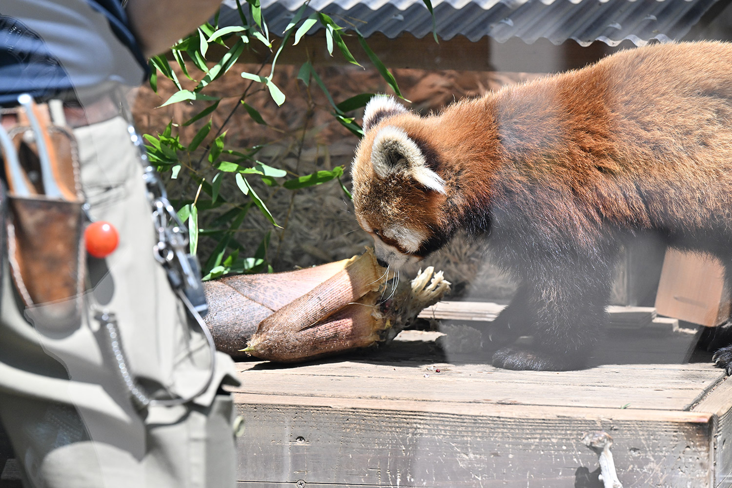 今日のパンダは10:30からです。今日もやや暑さを感じる一日。大きなたけのこが出てきました。