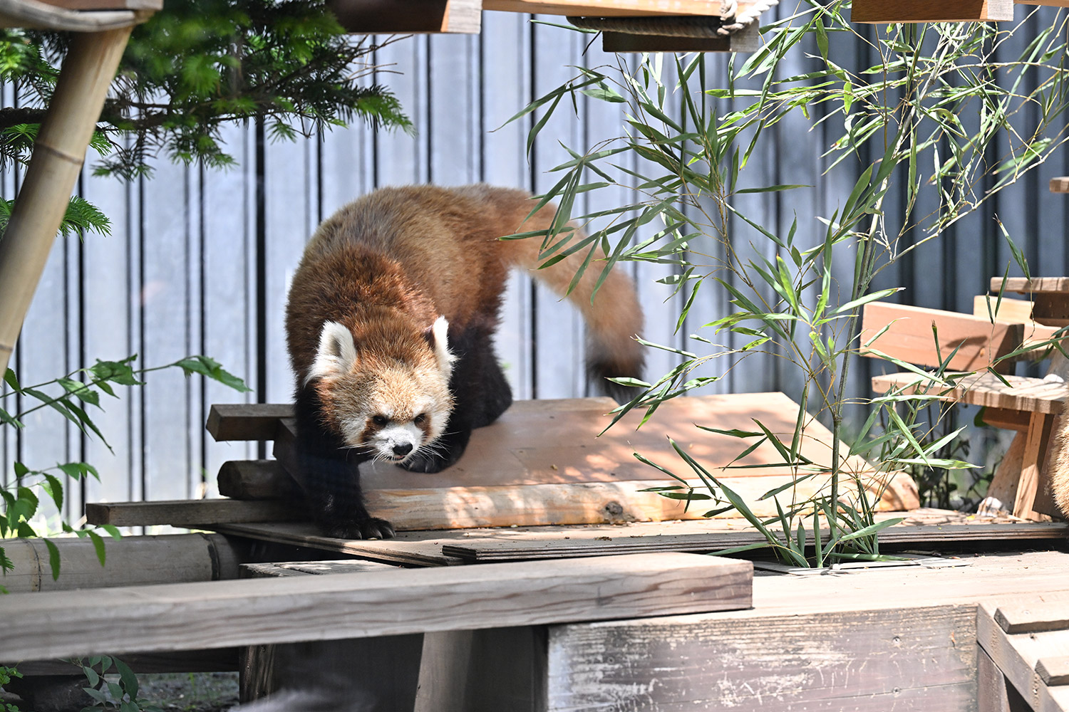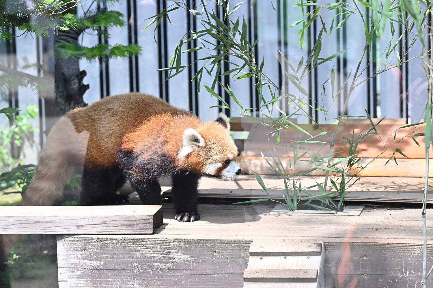 レッサーパンダ舎の中を黙々と歩いてますね~。