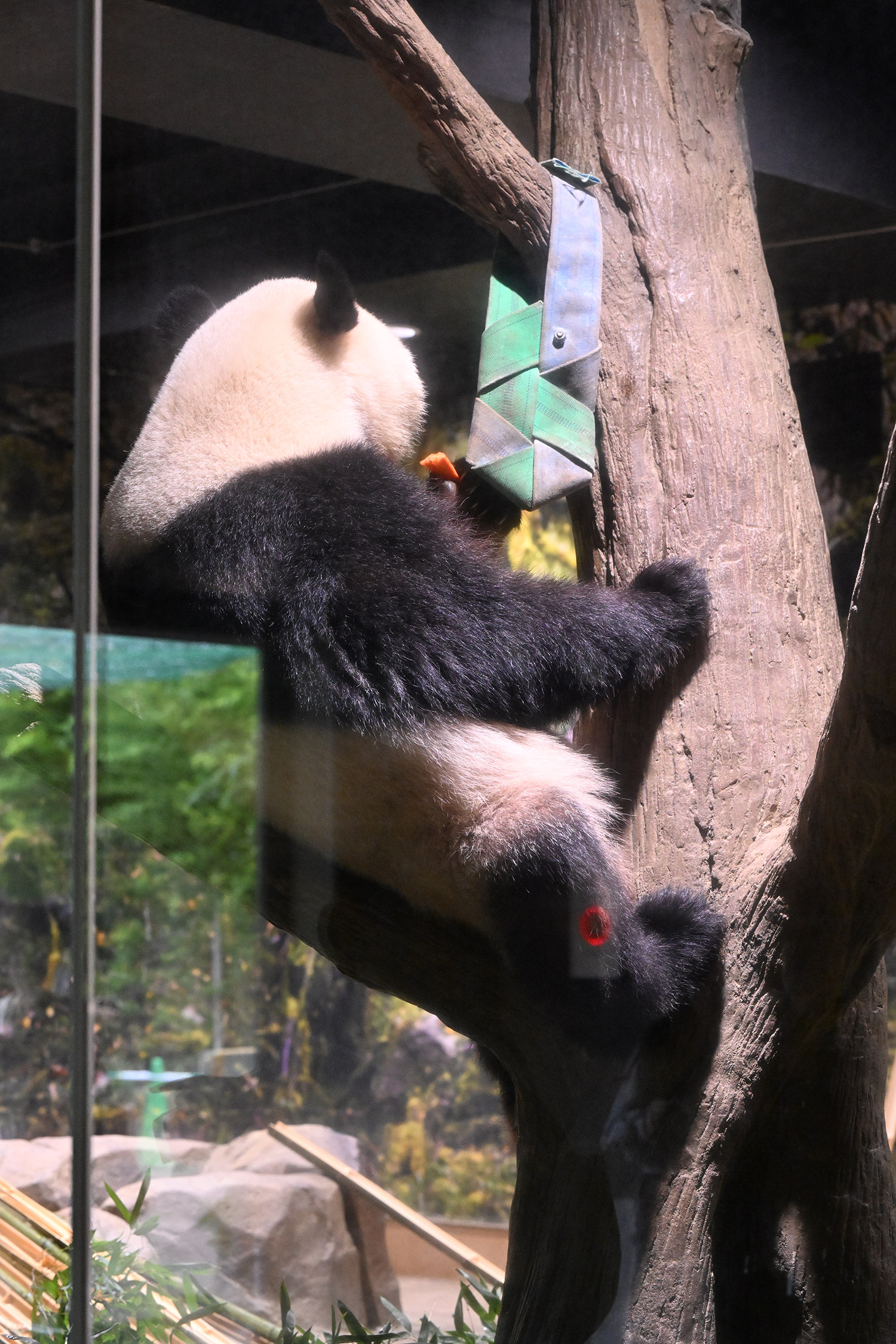 今日のパンダは10:00からです。今日も日差しはやや強めでしたが気温は控えめだったので2頭ともお外でした。