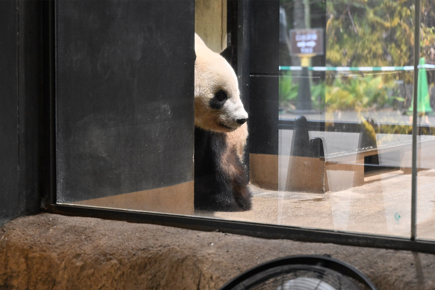 今日のパンダは10:00からです。雨だったので2頭とも室内展示でした。