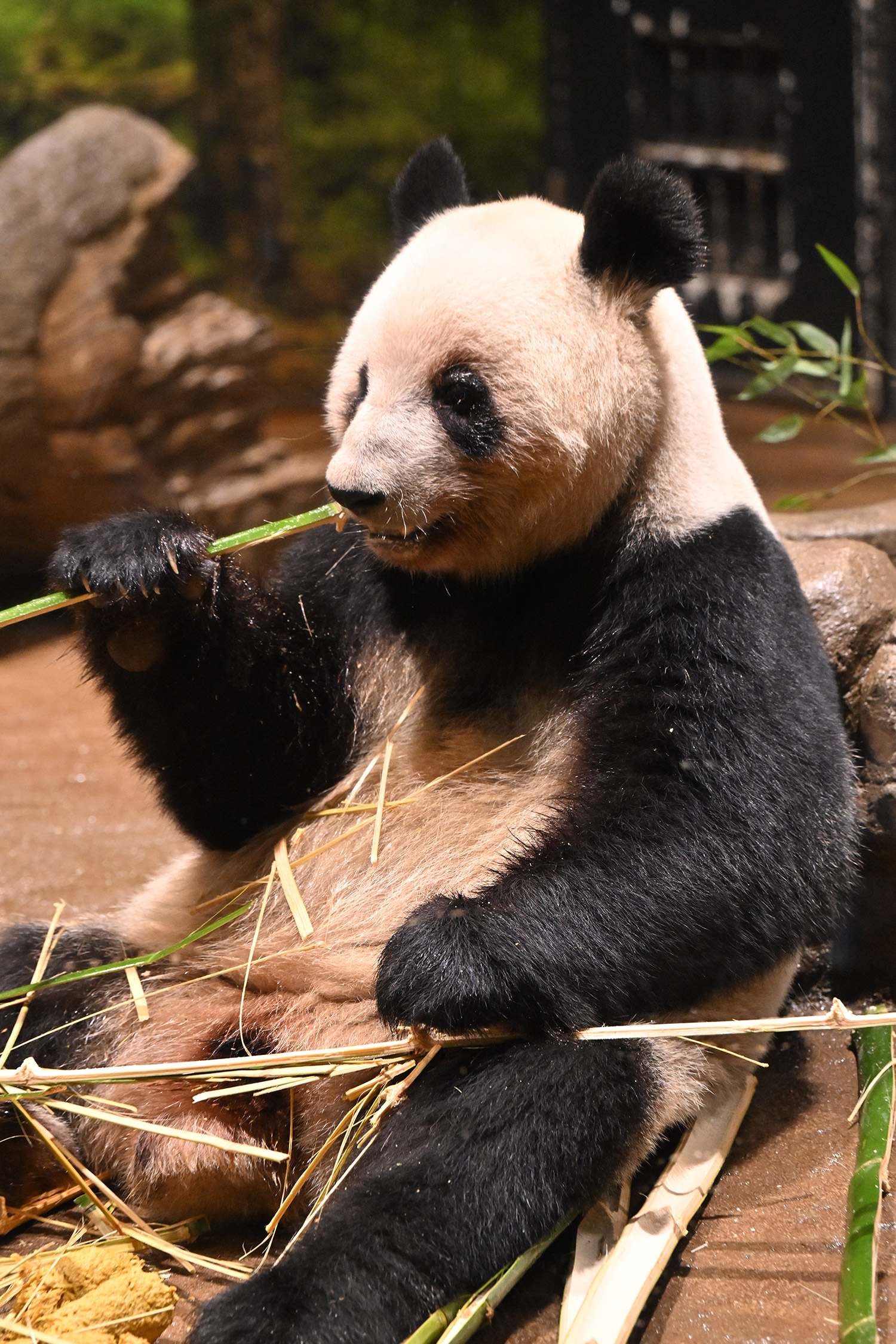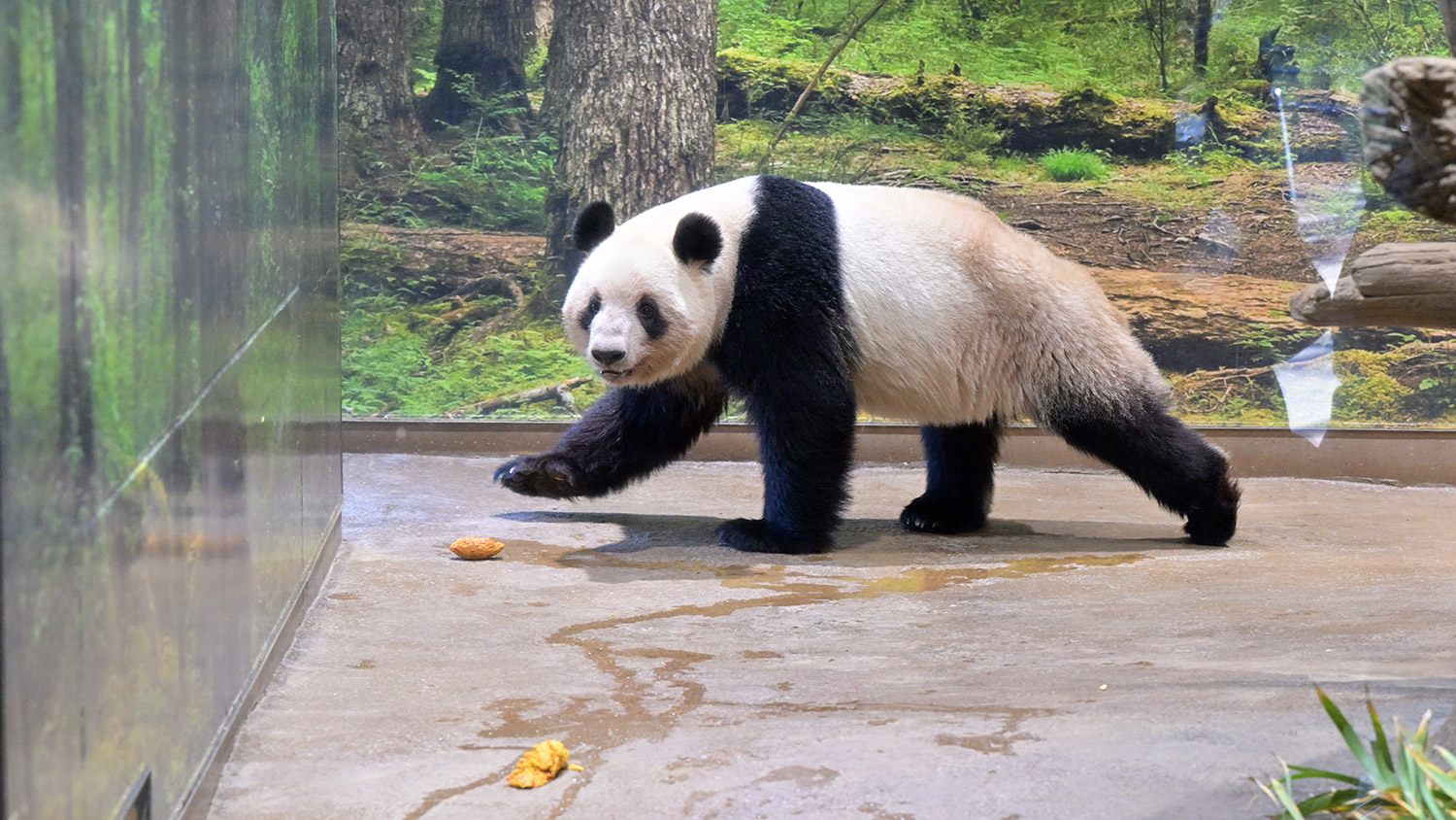 今日のパンダは13:30からです。明日から検疫に入るため、お庭で見られるのは今日がラストとなりました。
