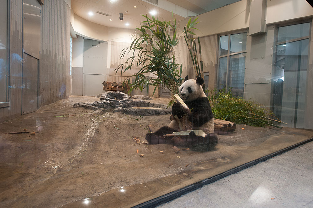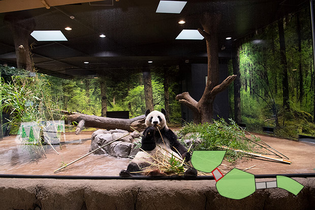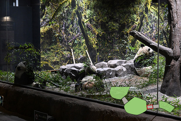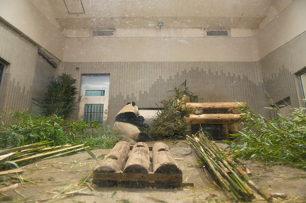 パンダは昼間は屋外の運動場、夕方からは室内にいることが多いです。気温・健康状態・混雑具合によっては終日室内展示のときもあります。
