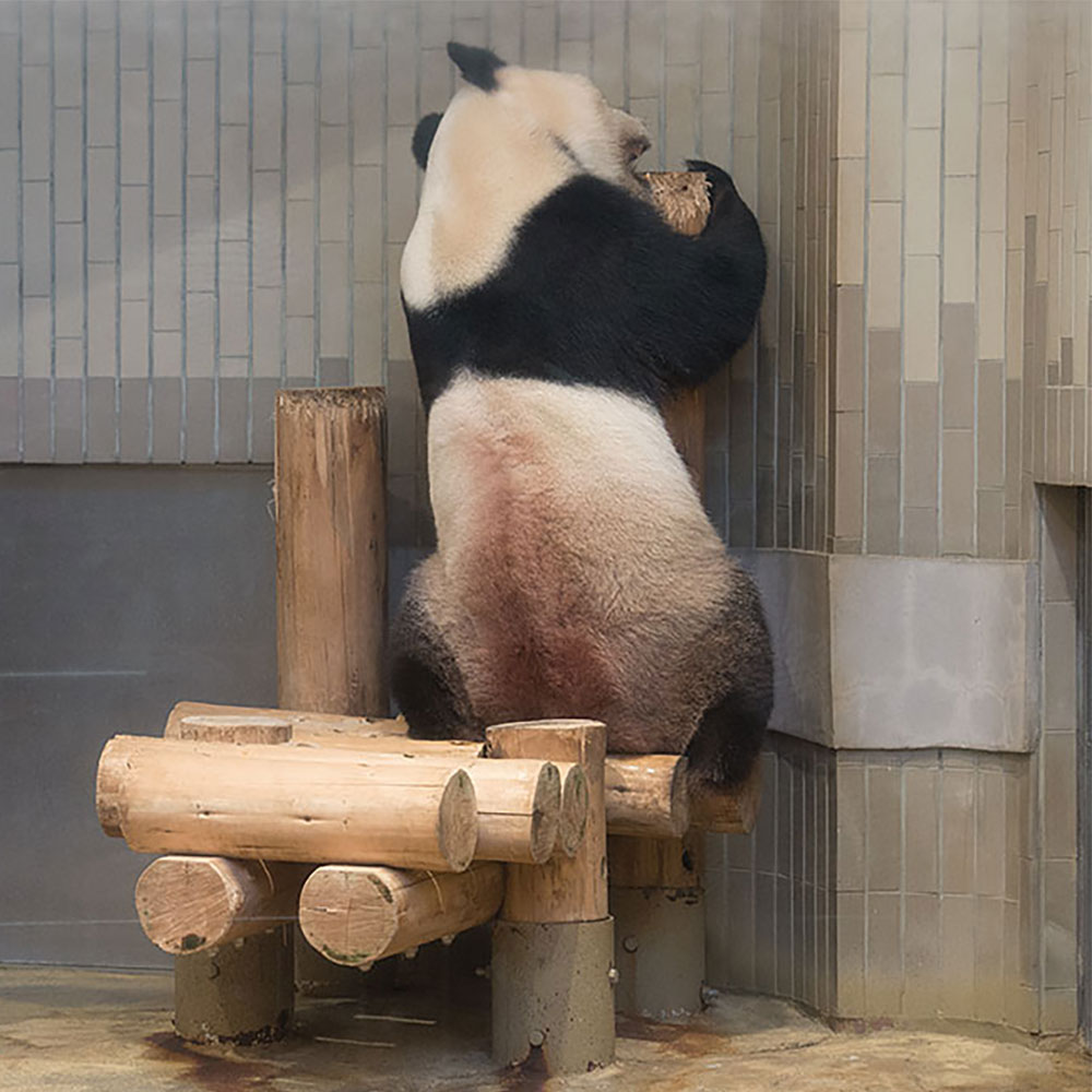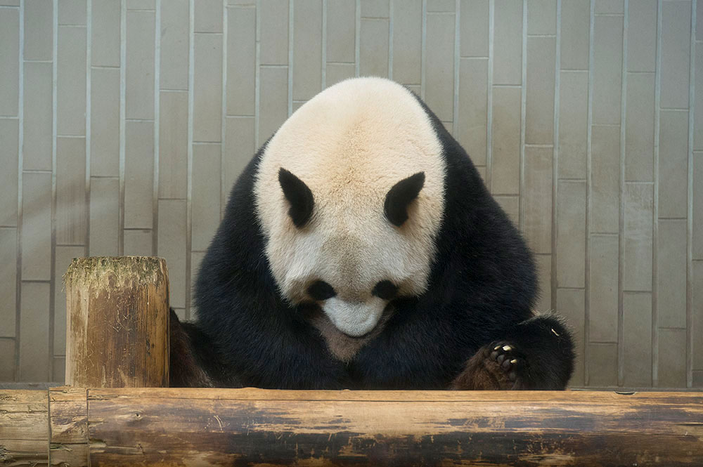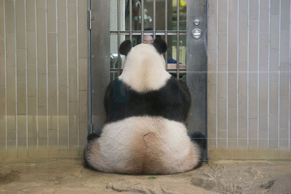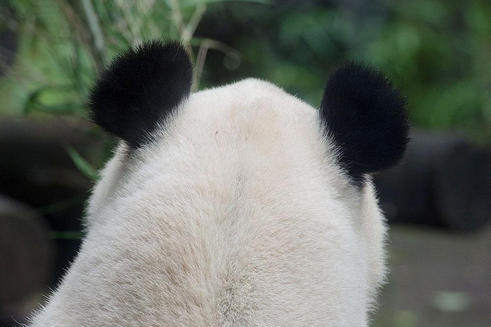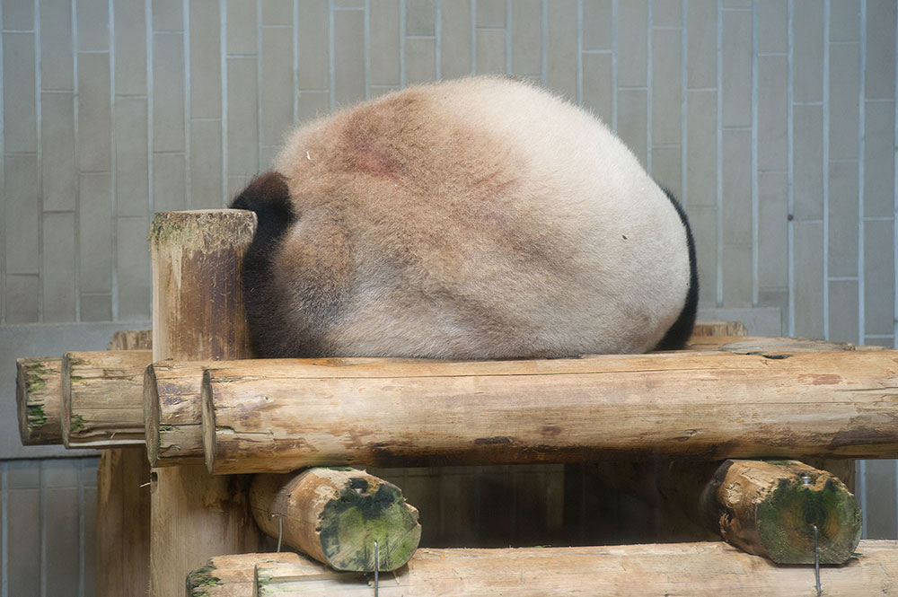 パンダがもっちりした状態。後ろ姿が鏡餅そのもの。
