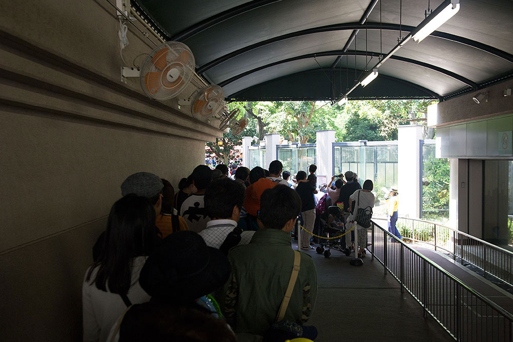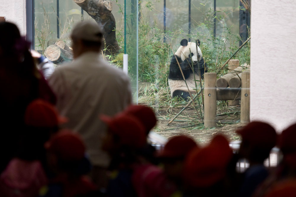 春と秋は遠足シーズン。午前中を中心に、幼稚園や小学生の団体さんがパンダめがけて行列を作ります。