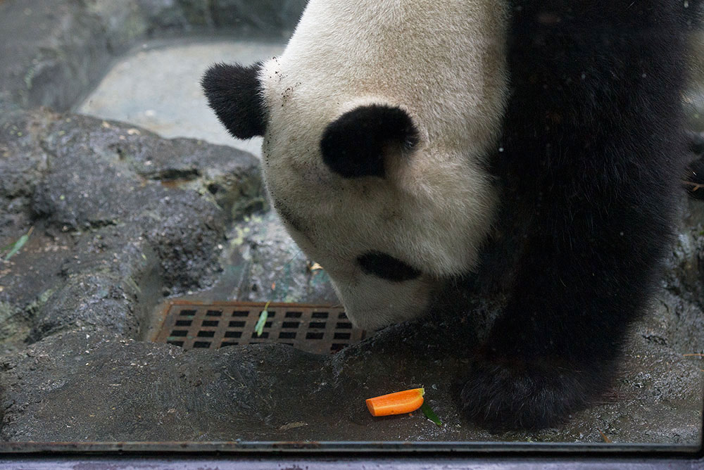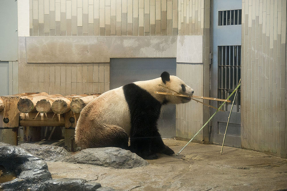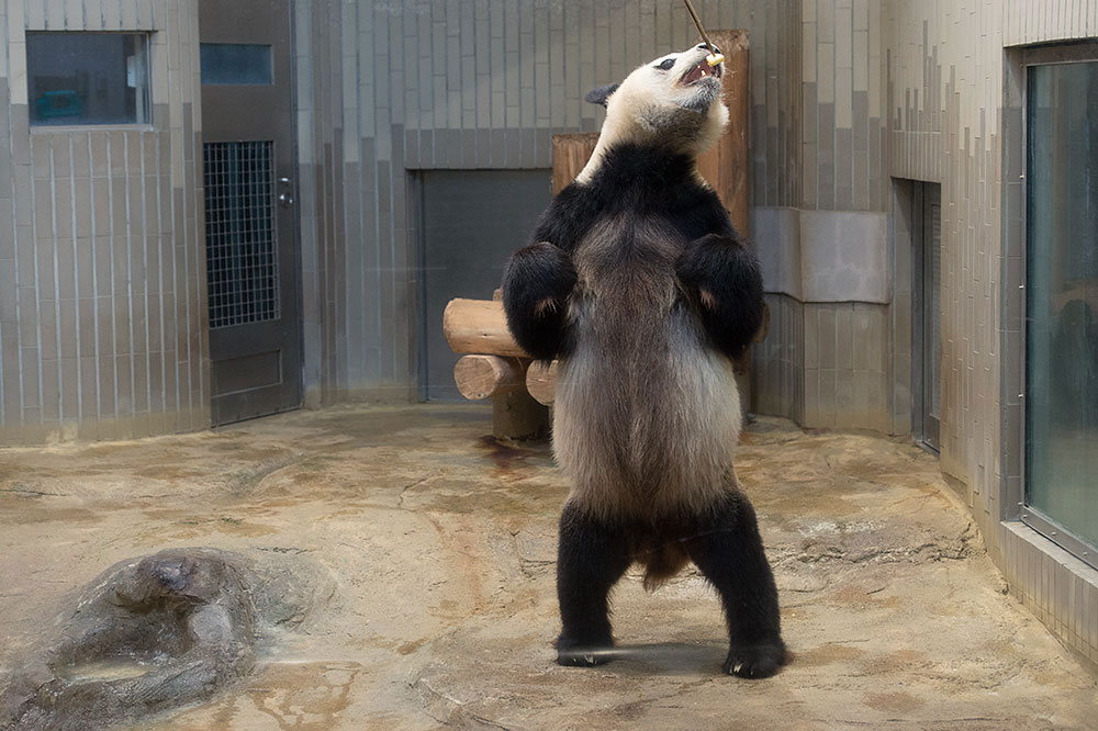 - シンシンは激しい催促の後、新鮮な竹をゲットするも、気に入らないようで食べない。