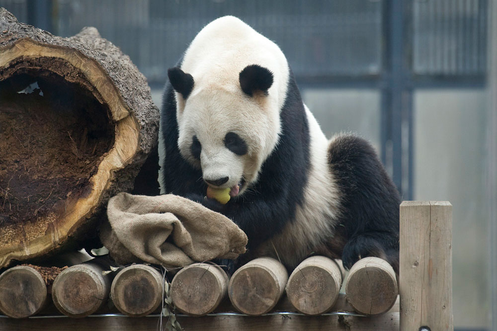 - 分厚い毛皮に覆われたパンダは冬の寒さなんてへっちゃら。むしろ気持ちいいくらい。
