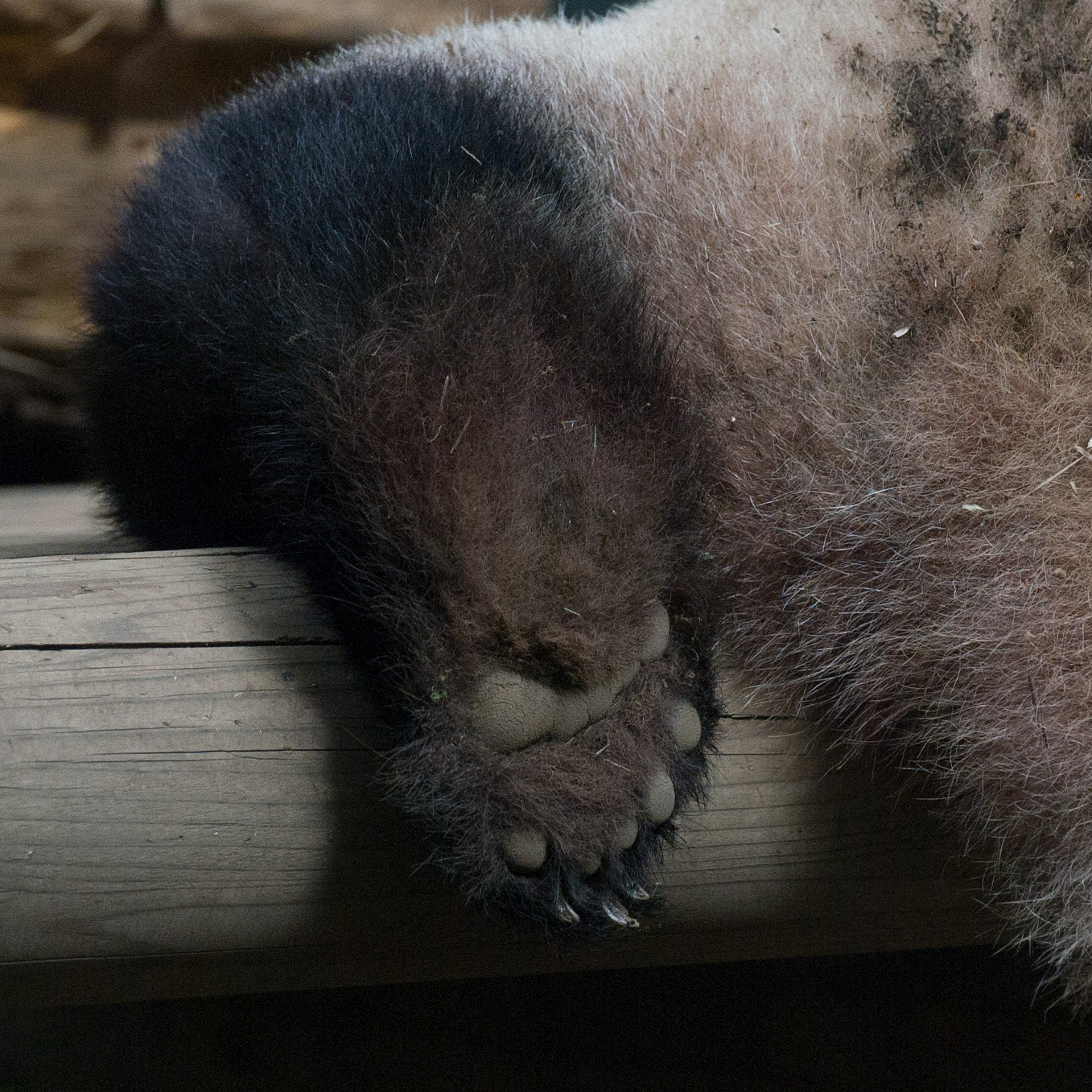 前足と同じく、鋭い爪を持っています。竹を食べる際に、足で持ち上げたり、器用に掴むこともあります。冬でも寒くないようにふさふさな毛で覆われています。