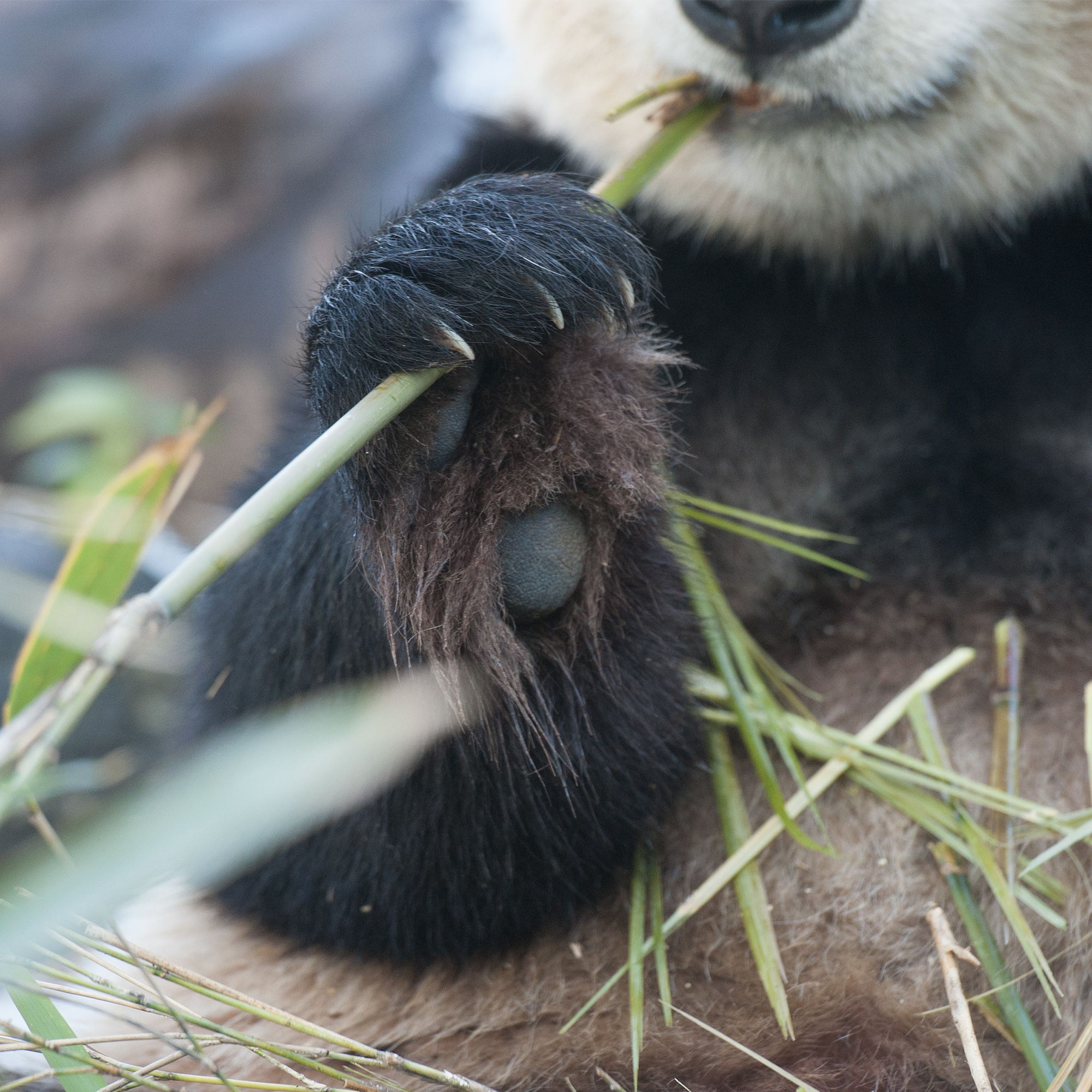 5本の指と、「第六の指」と呼ばれる突起で竹をつかみやすいようにできています。
