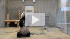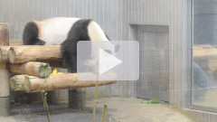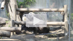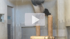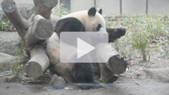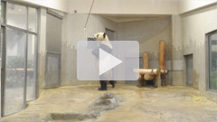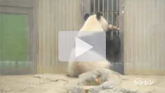 上野動物園のジャイアントパンダ リーリーがトレーニングの時間に小暴れする様子。トレーニングもいつもより荒い。