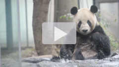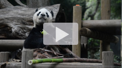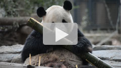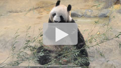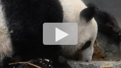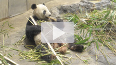 シンシンが竹にこだわる様子。これじゃない、これもちがうの繰り返し。座りがいいポジションを探ってなども座りなおすところ、しっぽを上げて竹をおさえるところもユニーク。2014年2月27日撮影