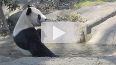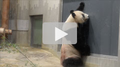 シンシンが体をかきかきする様子。シンシンは毎年春になると体がかゆくて仕方なくなる。