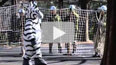 西園のシマウマが脱走し捕獲をする訓練の様子。